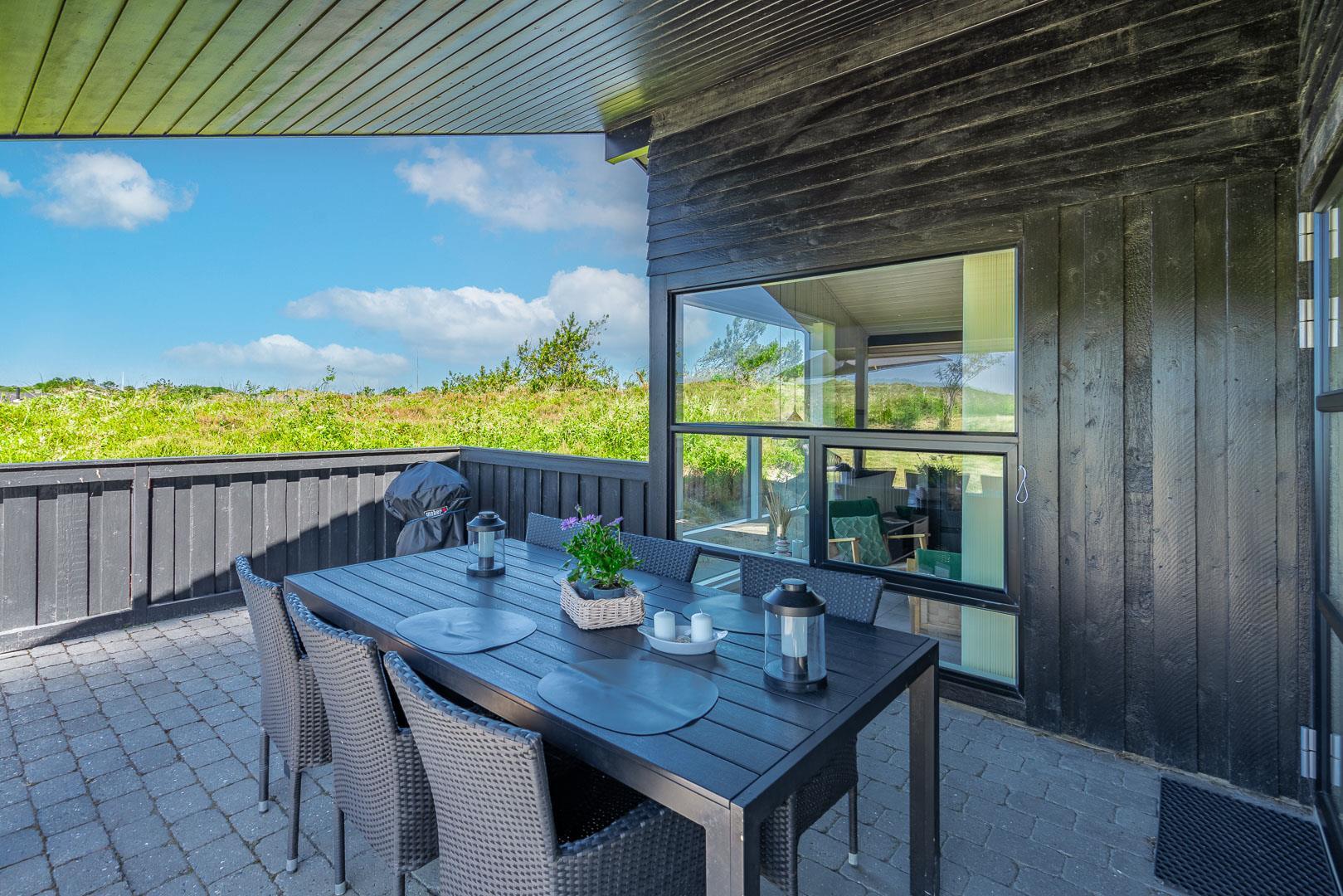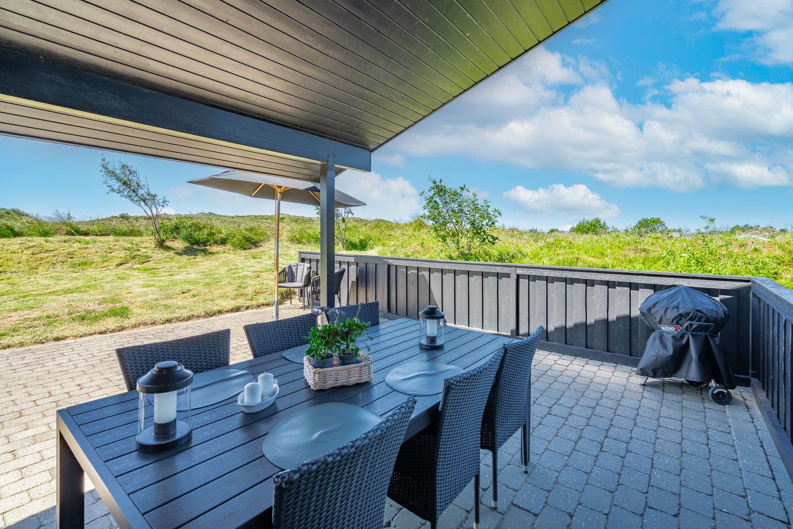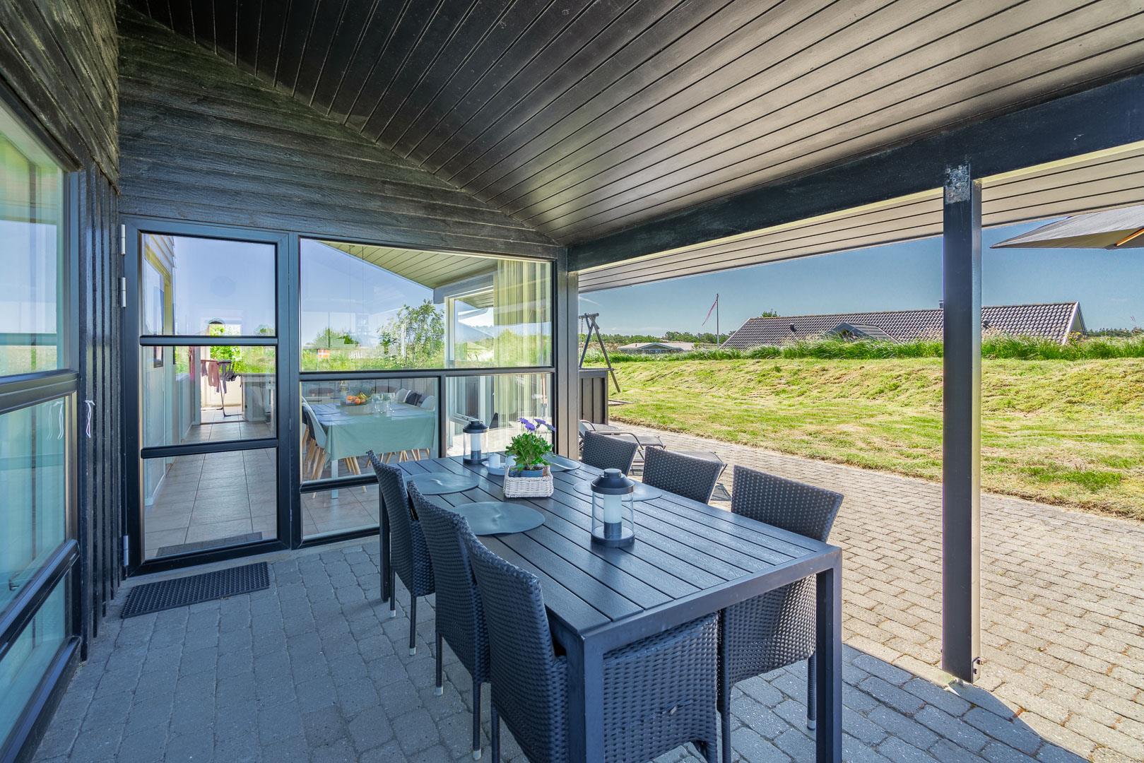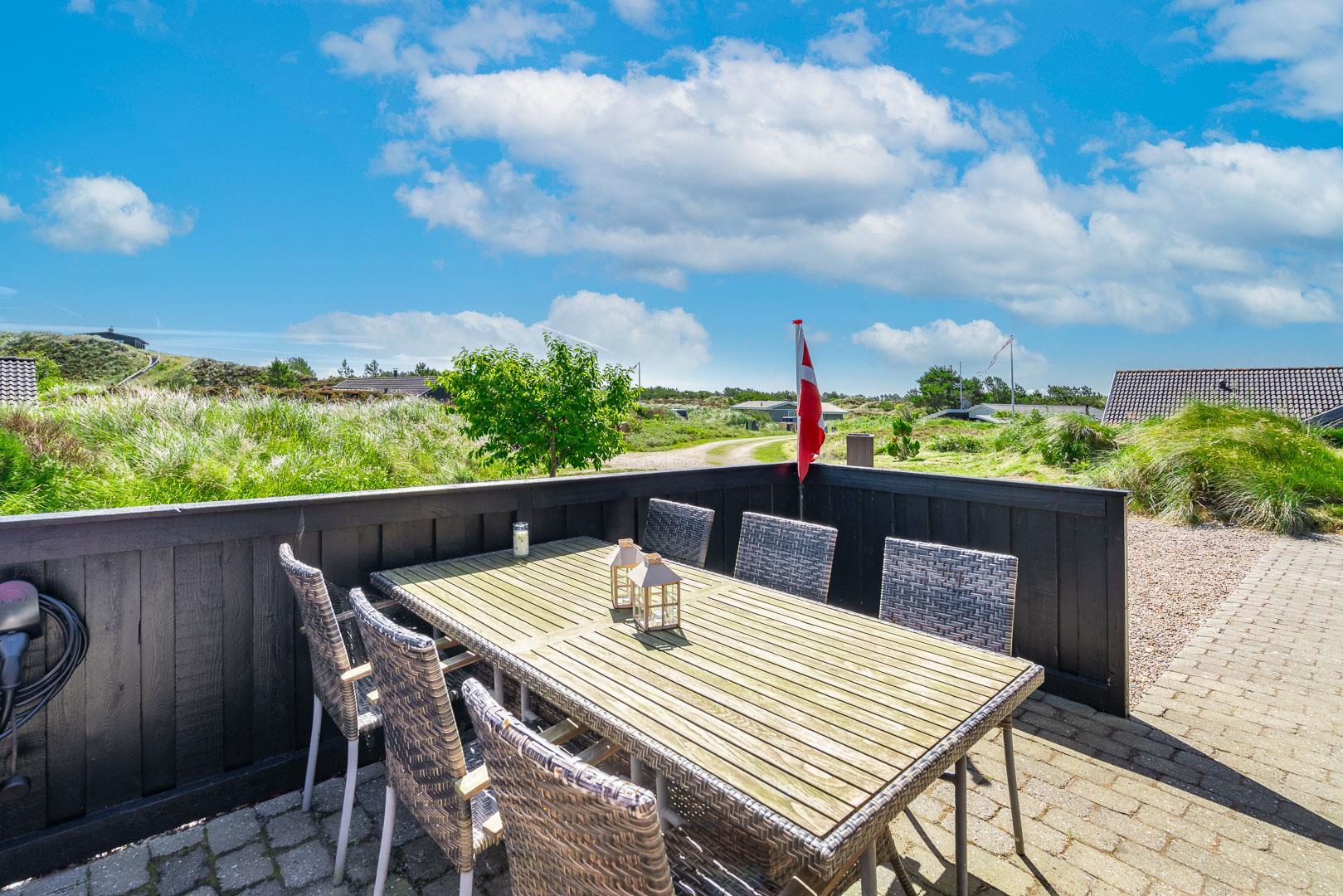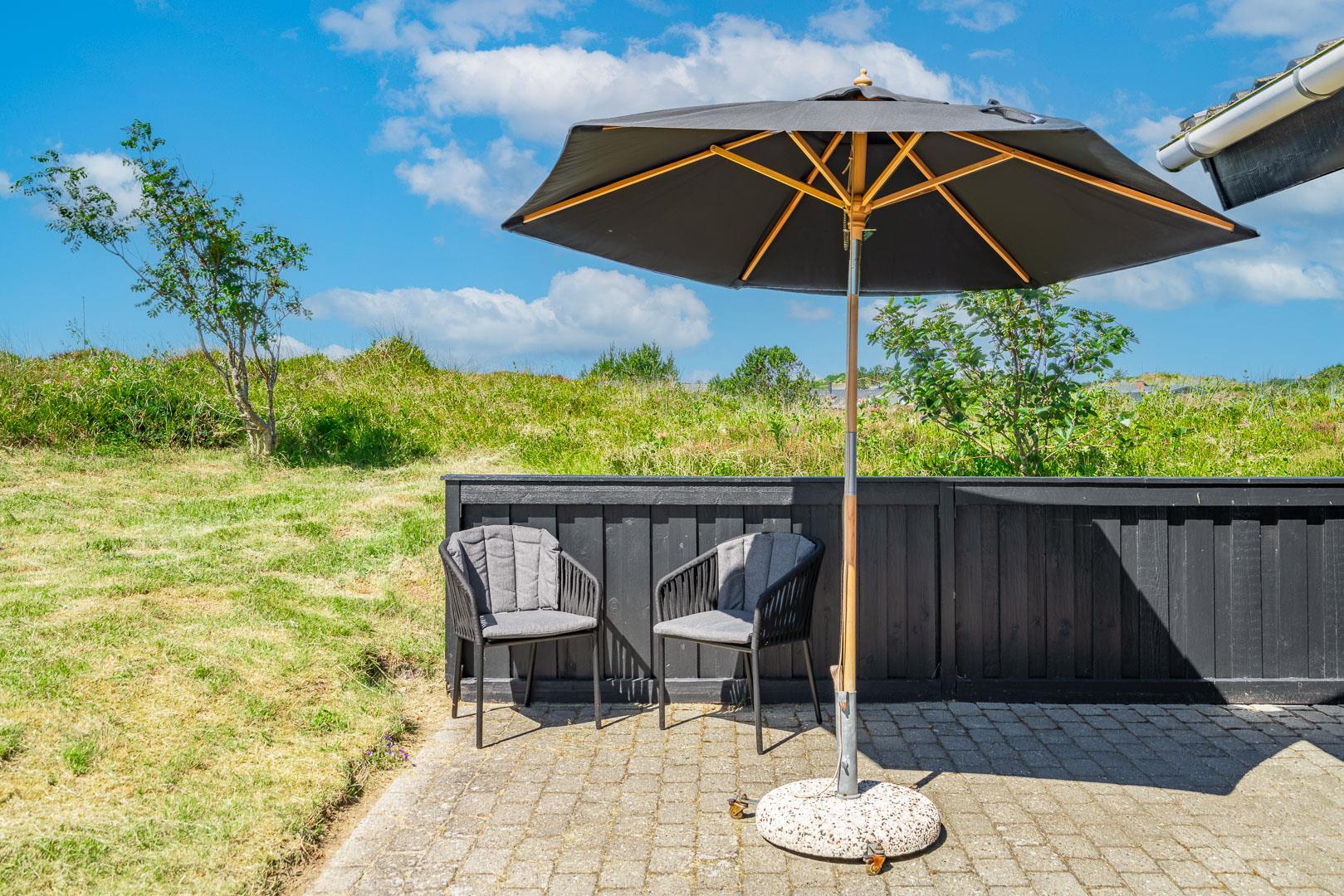 Udenfor venter endnu flere fornøjelser, med dejlige terrasser, havemøbler og liggestole til afslapning under åben himmel. Til de små feriegæster er der en sandkasse og et gyngestativ, der vil holde dem underholdt et godt stykke tid.