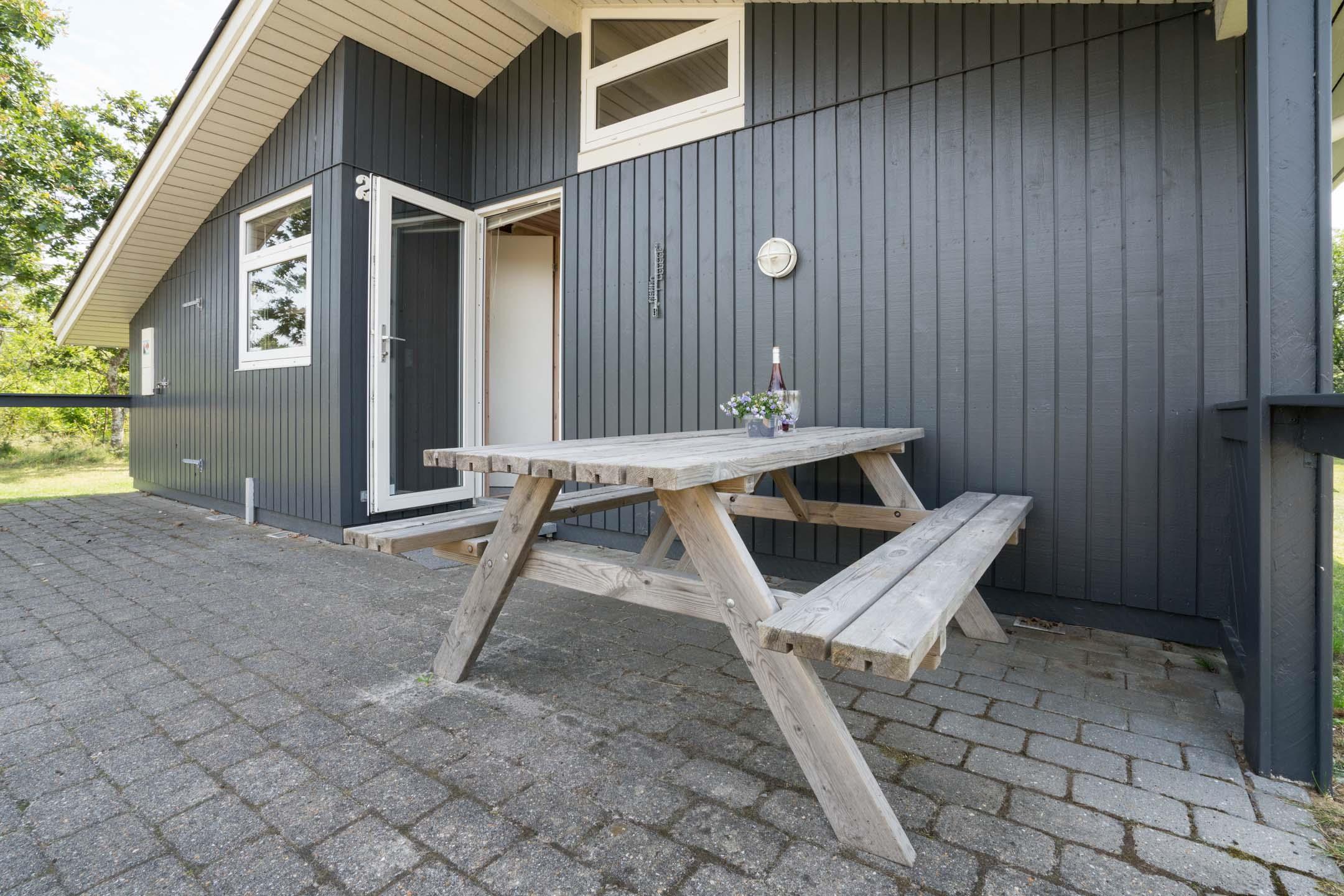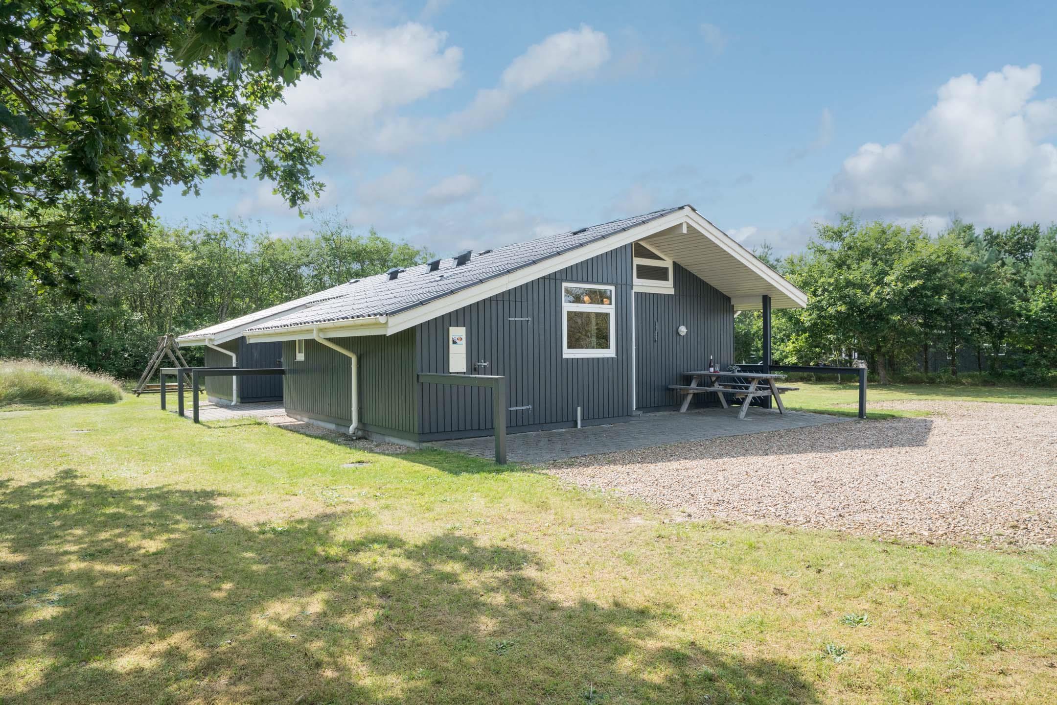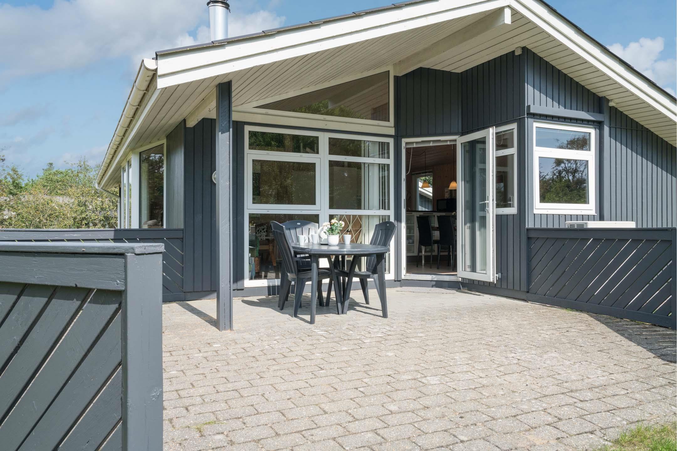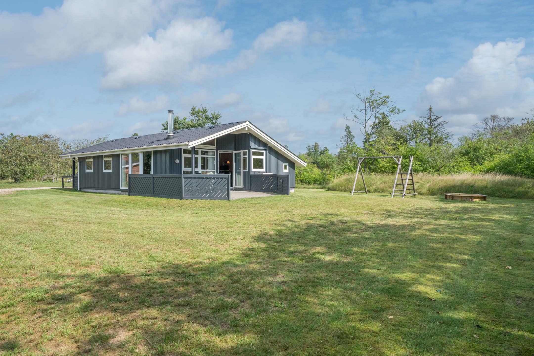 Huset er velegnet til familier med små børn – her findes både babybadekar og puslefaciliteter. Udendørs venter en overdækket terrasse, perfekt til morgenkaffen, grillmiddage og afslapning. Gyngen og sandkassen sikrer timevis af leg for de mindste.