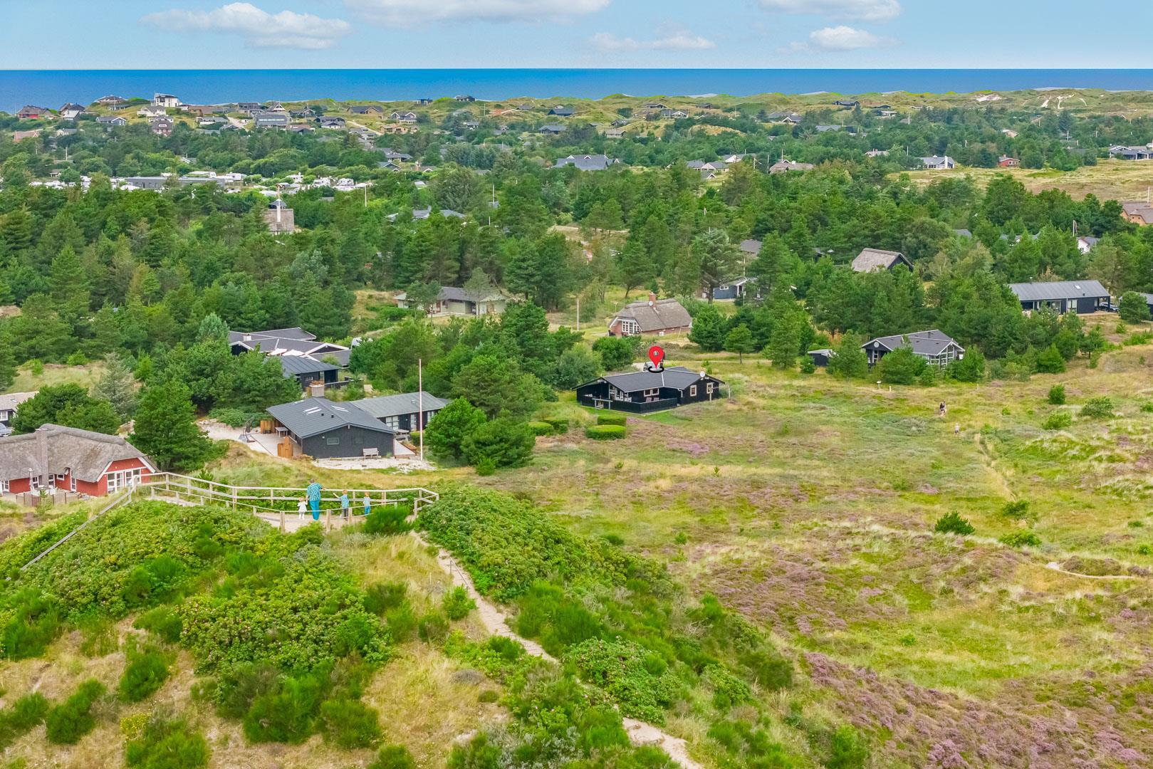 Hyggeligt og privat feriehus ved fredet naturområde nær Henne Strand med sauna og terrasse.