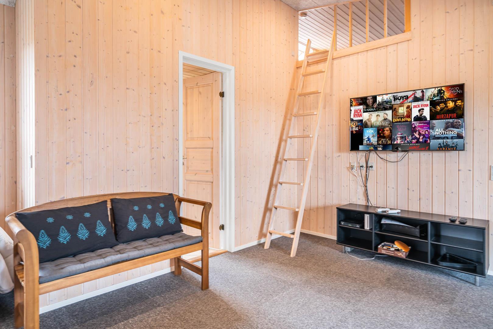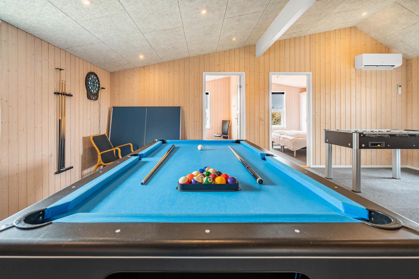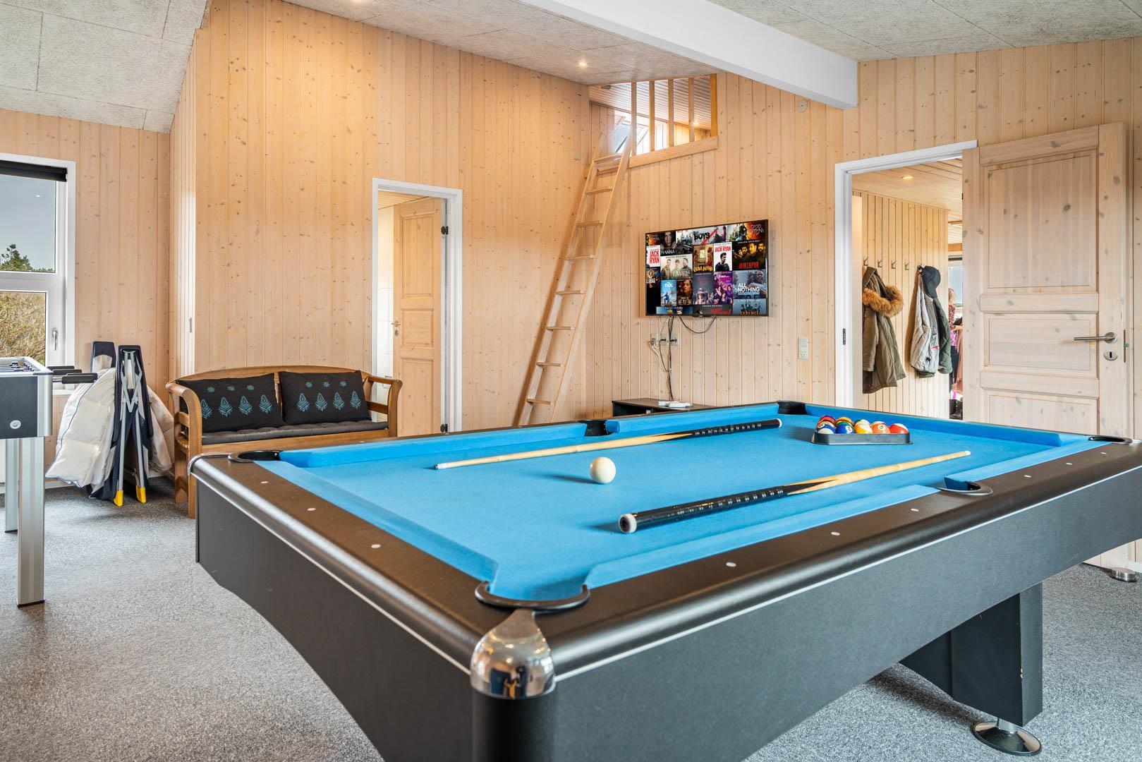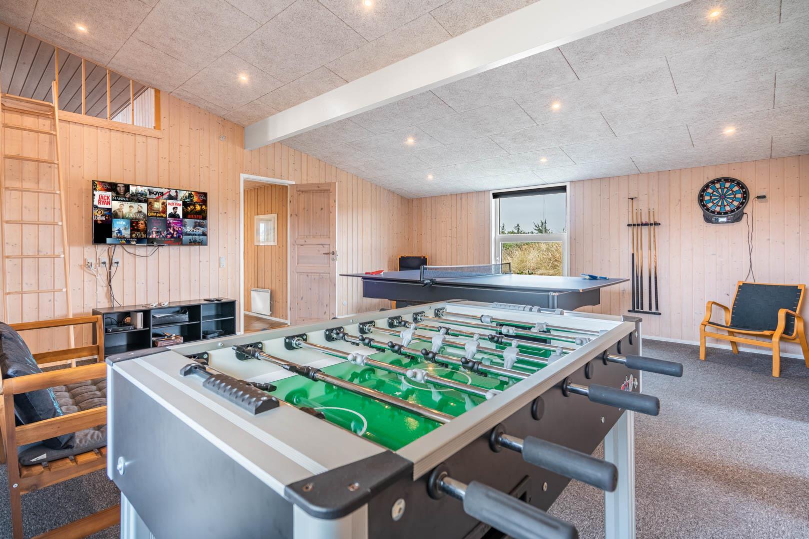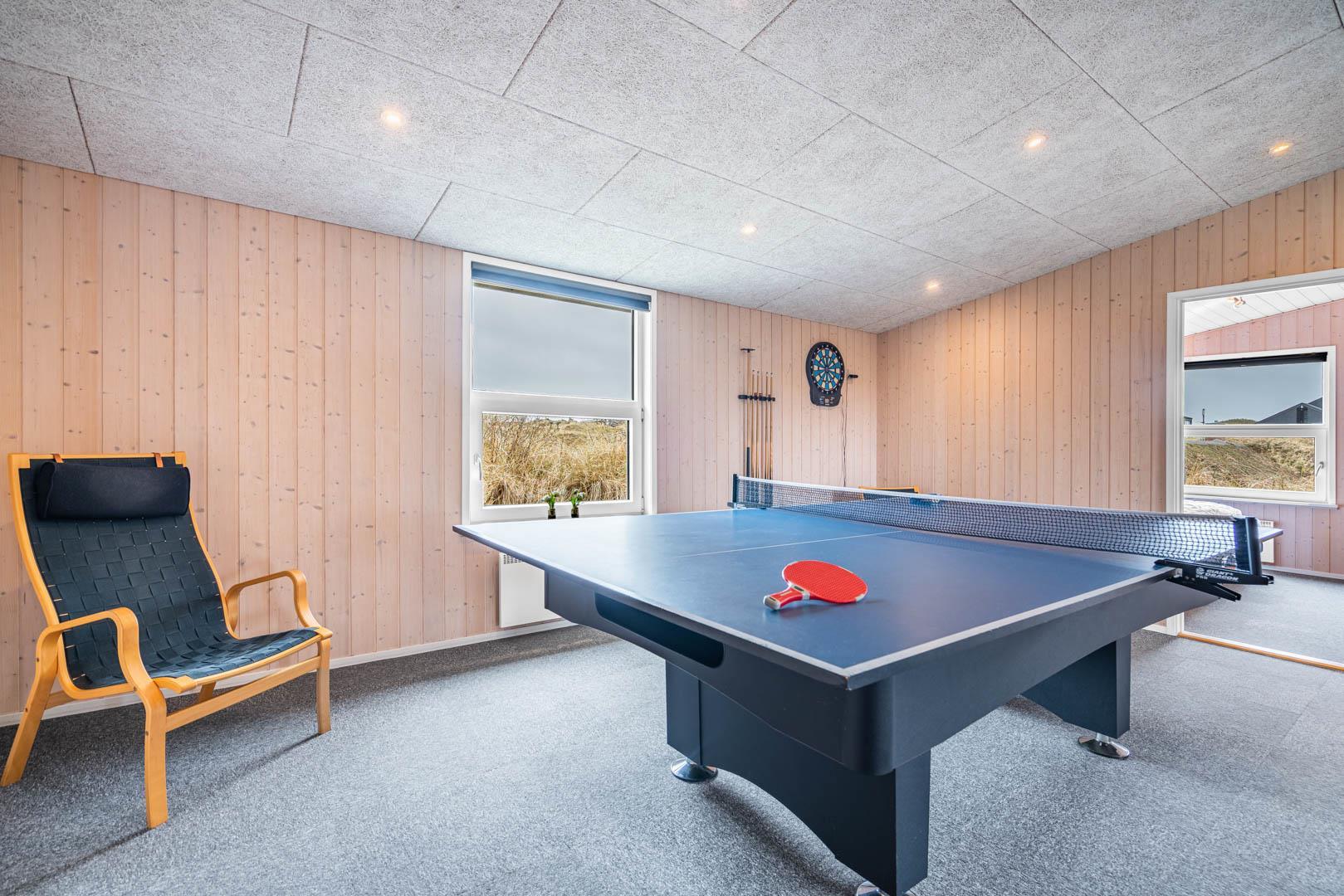 På en stor kuperet klitgrund med panoramaudsigt over områdets klitter samt sommerhusområde, ligger dette meget velholdte og yderst praktisk indrettede sommerhus med større aktivitetsrum samt vildmarksbad. Huset har i alt to komplette badeværelser - det ene med spabad samt adgang til sauna. Rummeligt køkken/alrum, stor stue med brændeovn samt varmepumpe. 5 gode soverum alle med dobbeltsenge. Fra aktivitetsrummet er der adgang til sommerhusets 1 hems, hvor børnene har alle muligheder for at hygge sig. Fra stue samt køkken er der direkte udgang til flere af sommerhusets mange terrasser. Der er opsat trampolin på grunden. Gåafstand til den dejlige, hvide badestrand ved Vesterhavet samt til den hyggelige badeby Henne Strand by med bl.a. flere gode indkøbsmuligheder samt restauranter.