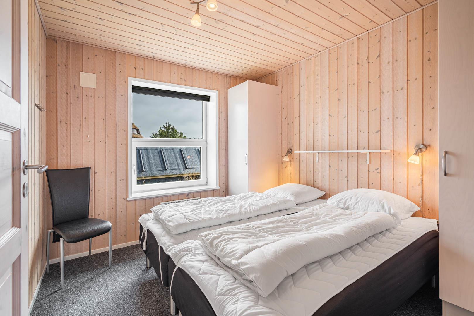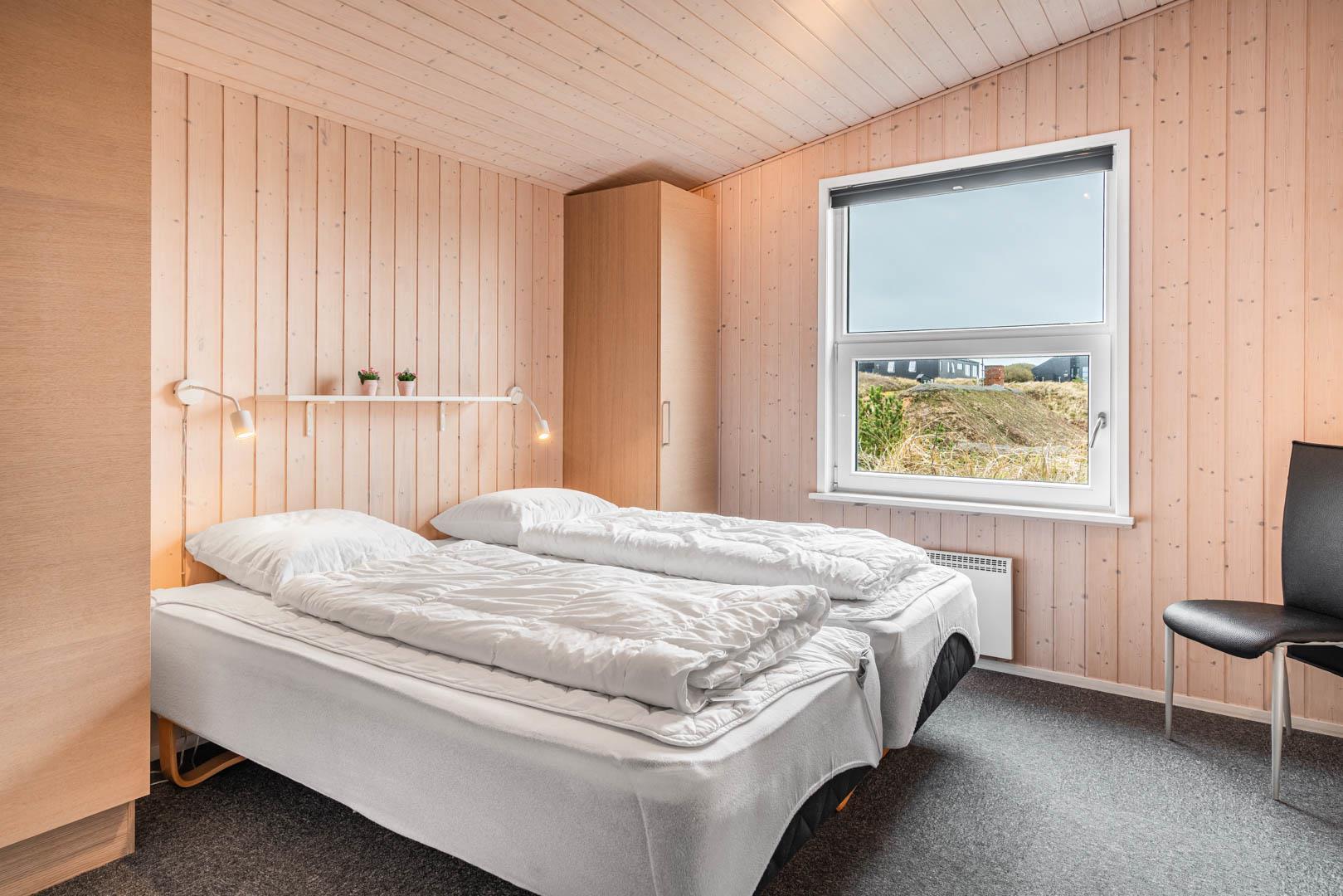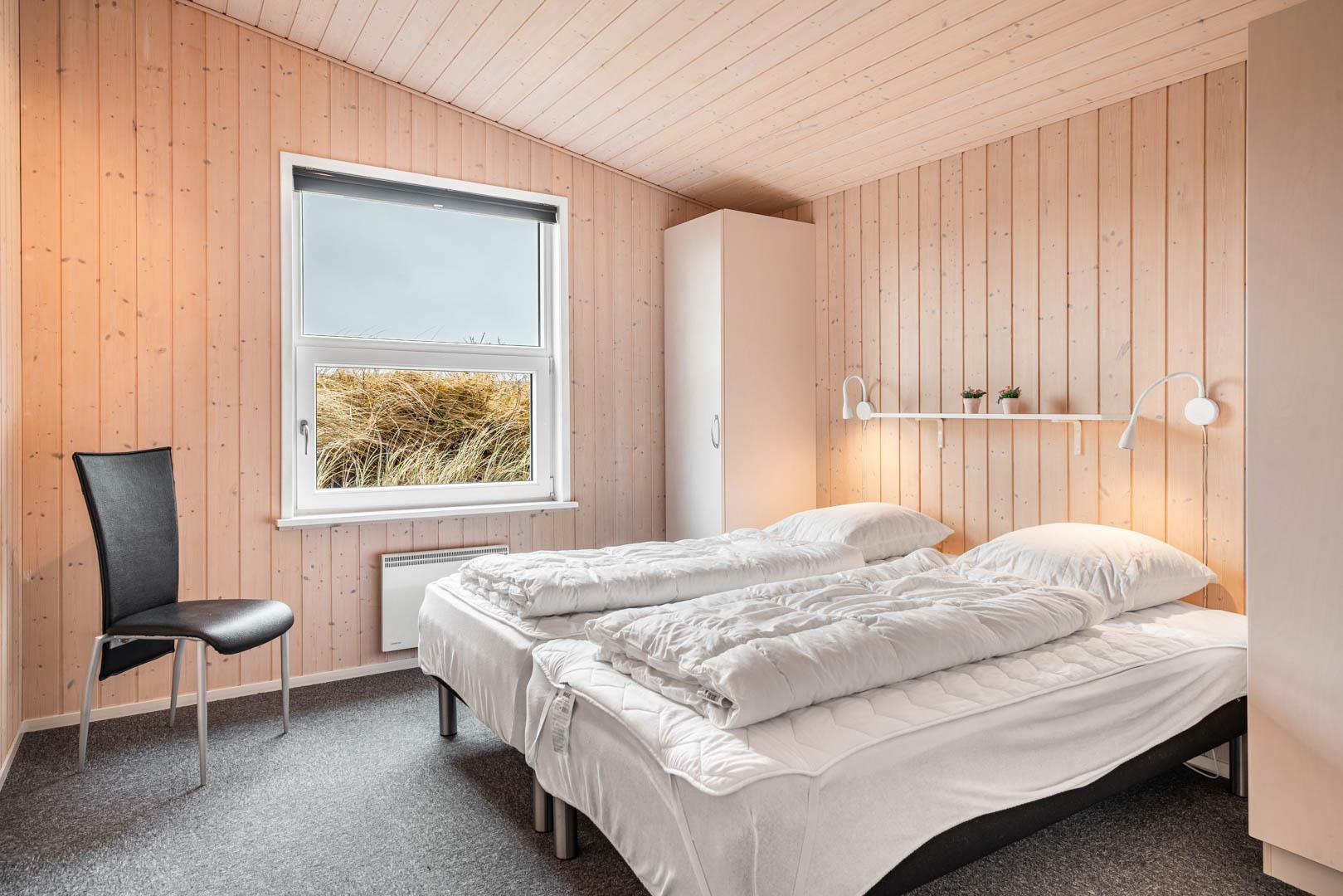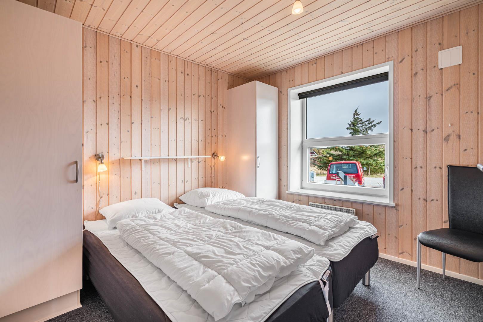 Sengestørrelse: 4 dobbeltsenge med 2 madrasser 90 x 200 cm + 1 dobbeltseng med 2 madrasser 70 x 200 cm.