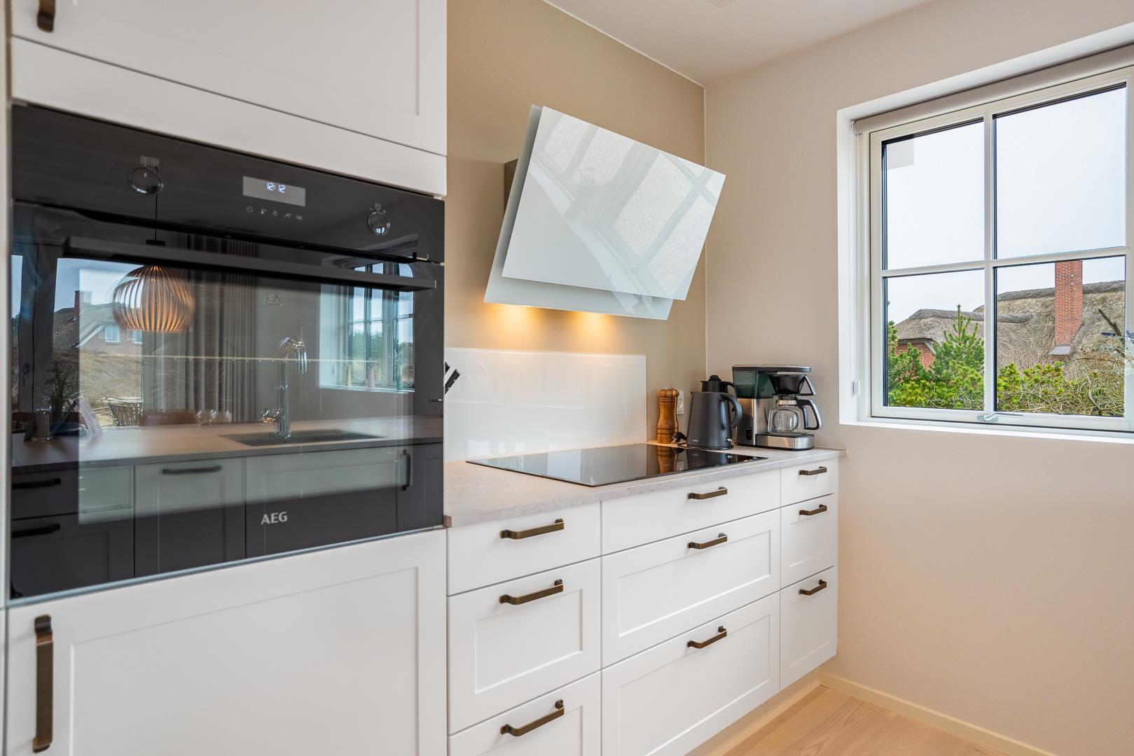 Køkkenet er moderne og veludstyret med bl.a. opvaskemaskine og god bordplads, så det er nemt at lave mad sammen. En energieffektiv varmepumpe sørger for et behageligt indeklima året rundt.