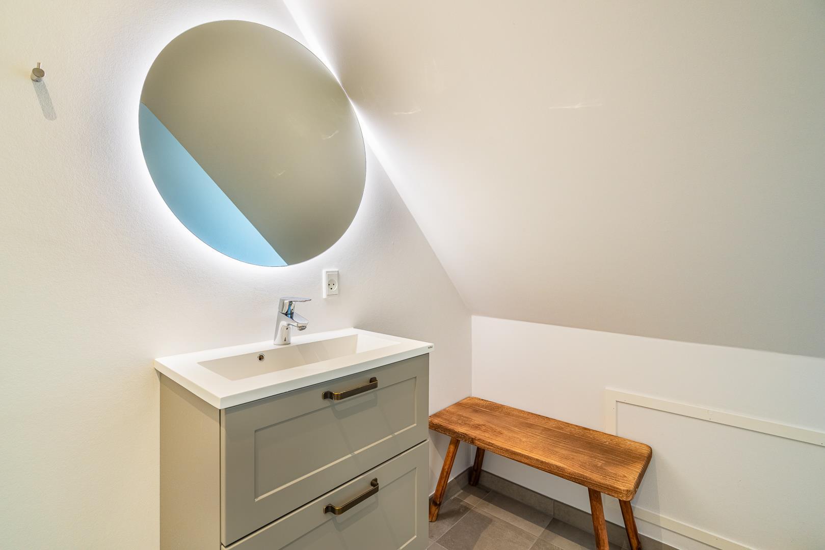 Begge badeværelser er moderne indrettet med bruseniche og gulvvarme, så du får en behagelig oplevelse – også når det er køligt udenfor. Der er både vaskemaskine og tørretumbler, hvilket især er praktisk til længere ophold.