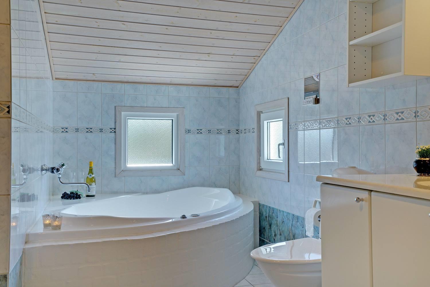 3 soveværelser giver behagelige rammer for afslappende nætter. Badeværelset er et særligt plus: Gulvvarme, sauna og spabad skaber små wellnessoplevelser – helt uafhængigt af vejret.