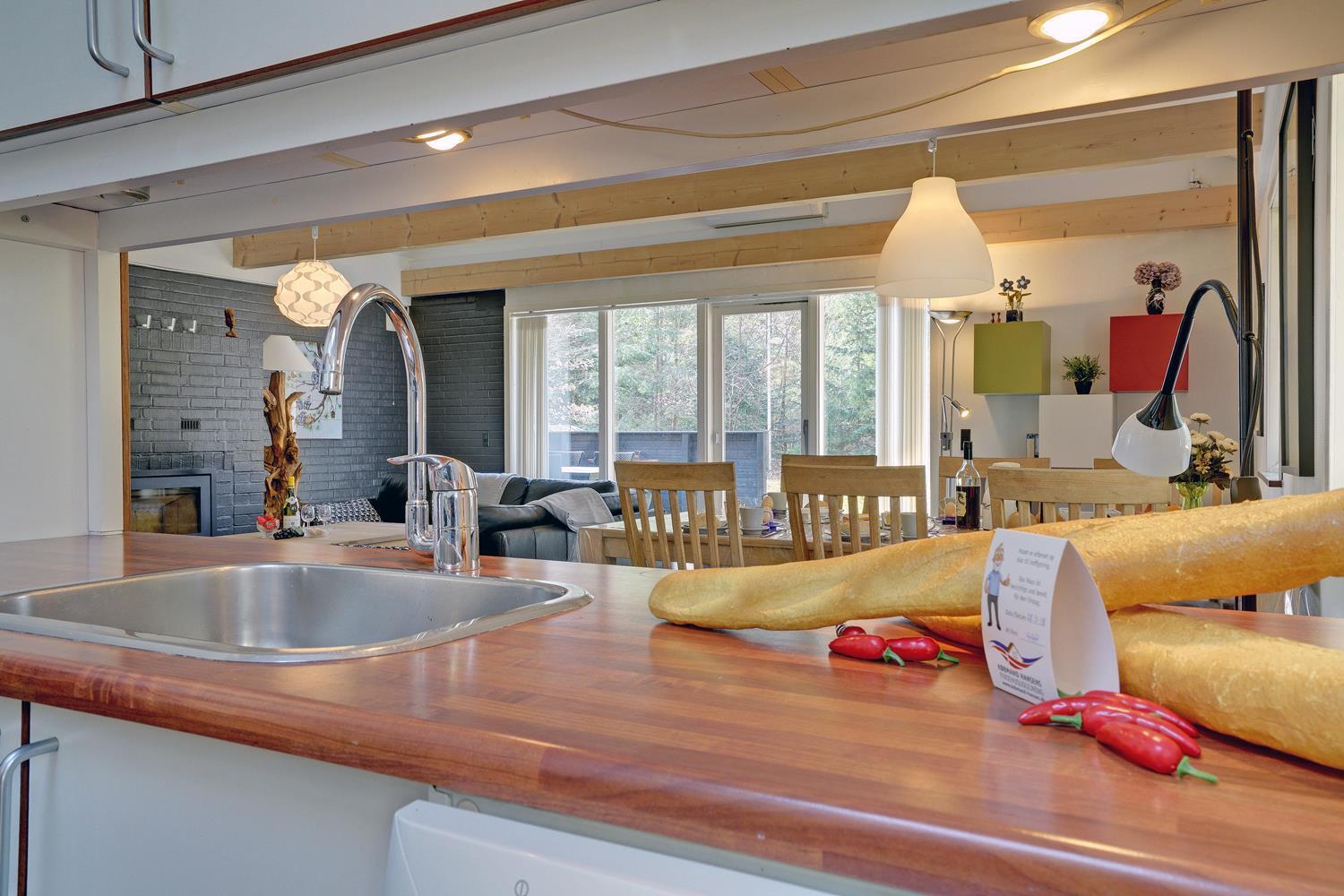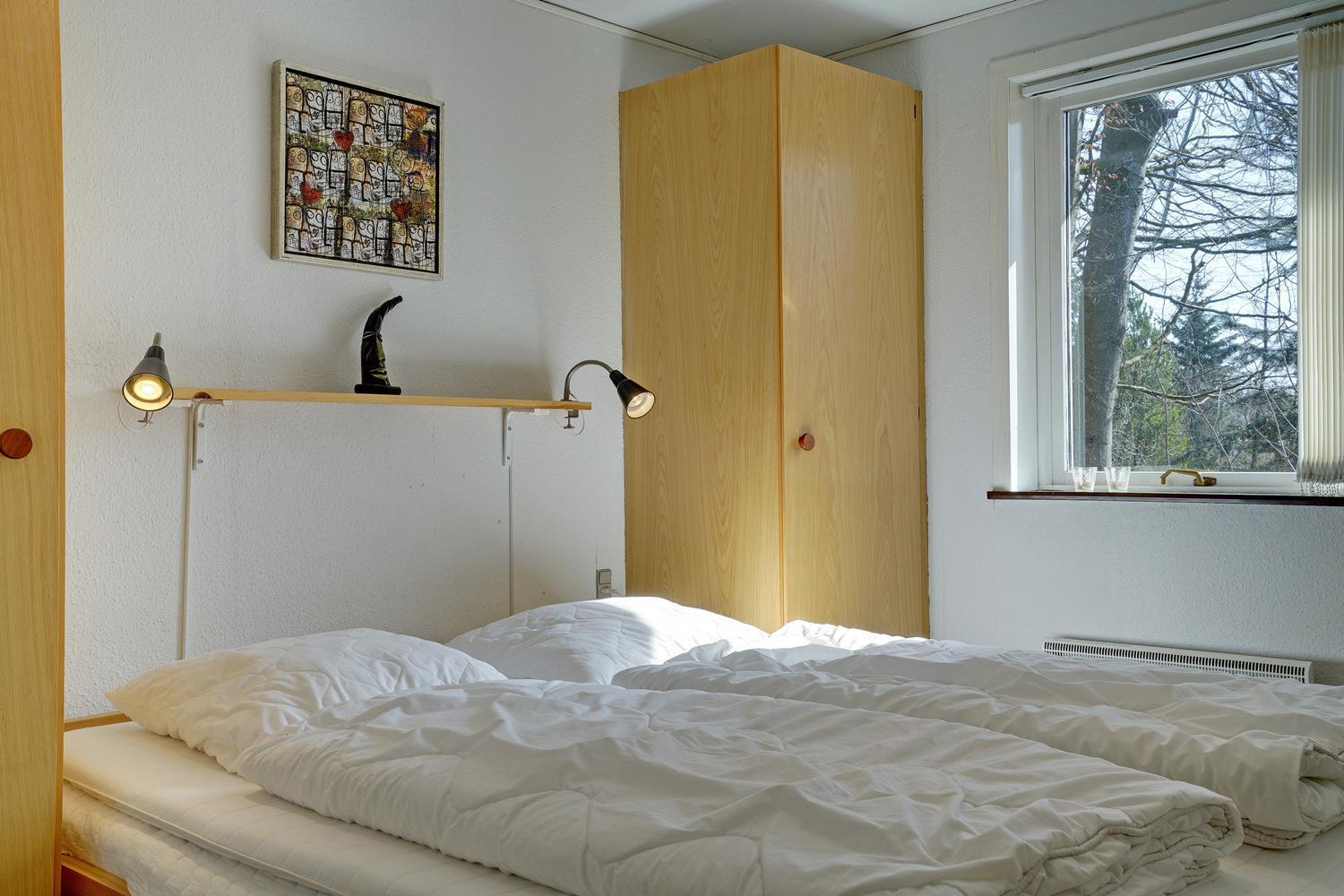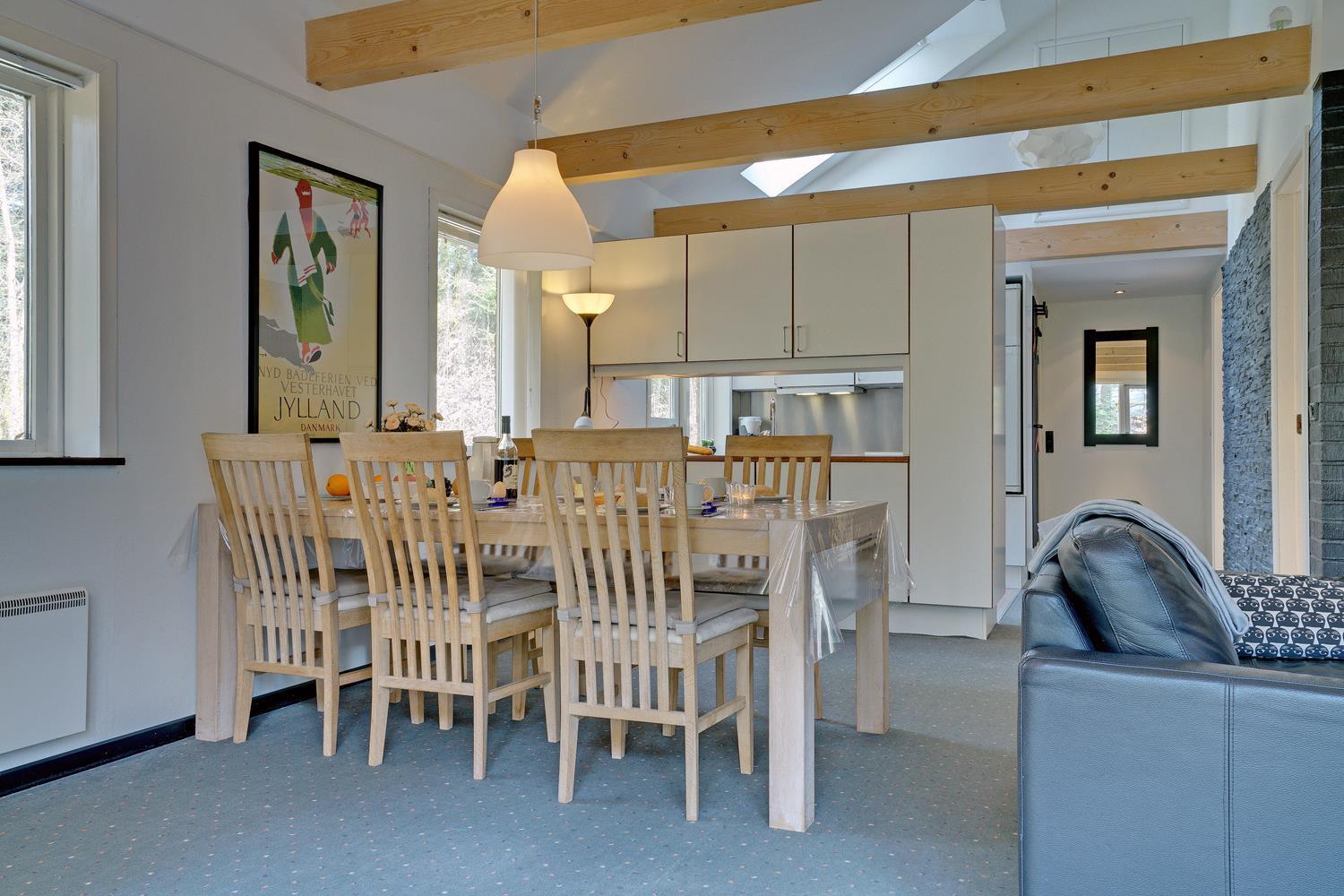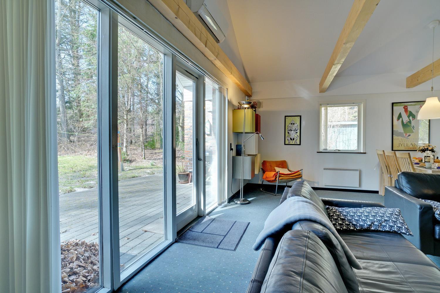 Blandt høje træer og buske ligger dette skønne feriehus. Stort lyst badeværelse med adgang til sauna. Flot og hyggelig indrettet stue med mange flotte detaljer. Der er hyggelig terrasse med grillplads. Gode soverum med dobbeltsenge. I dette hus kan man virkelig mærke naturen på tætteste hold og nyde freden.