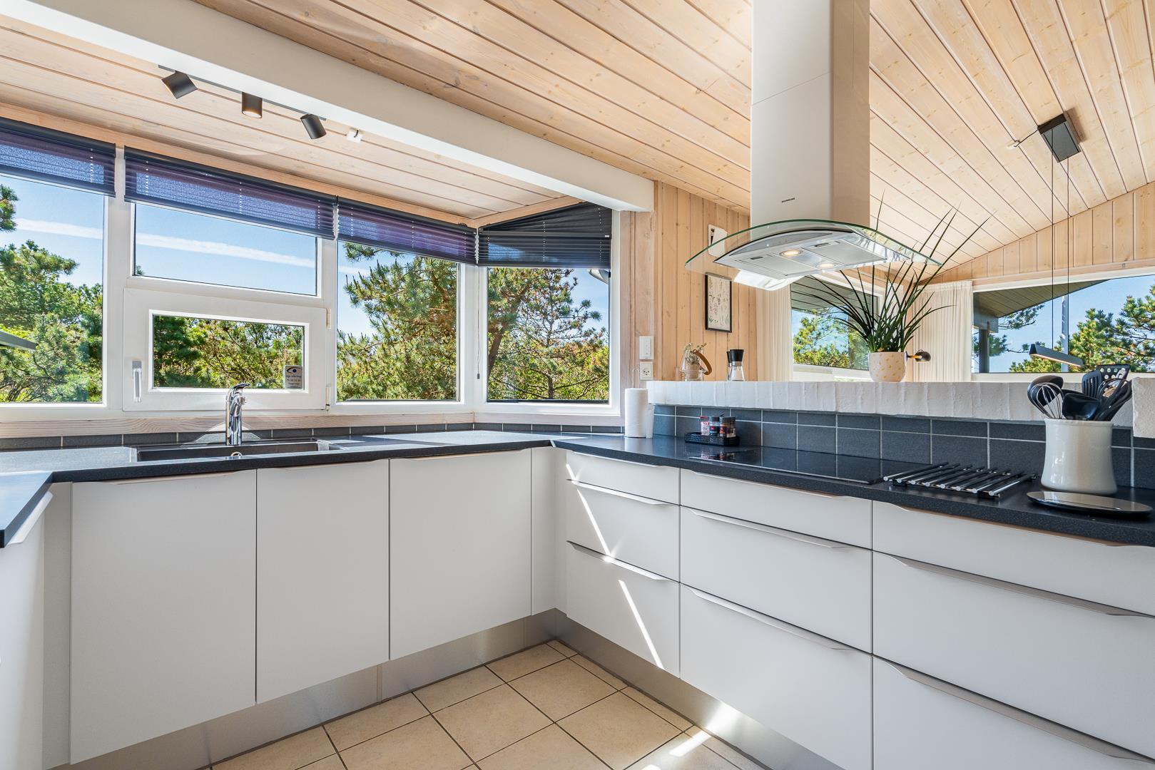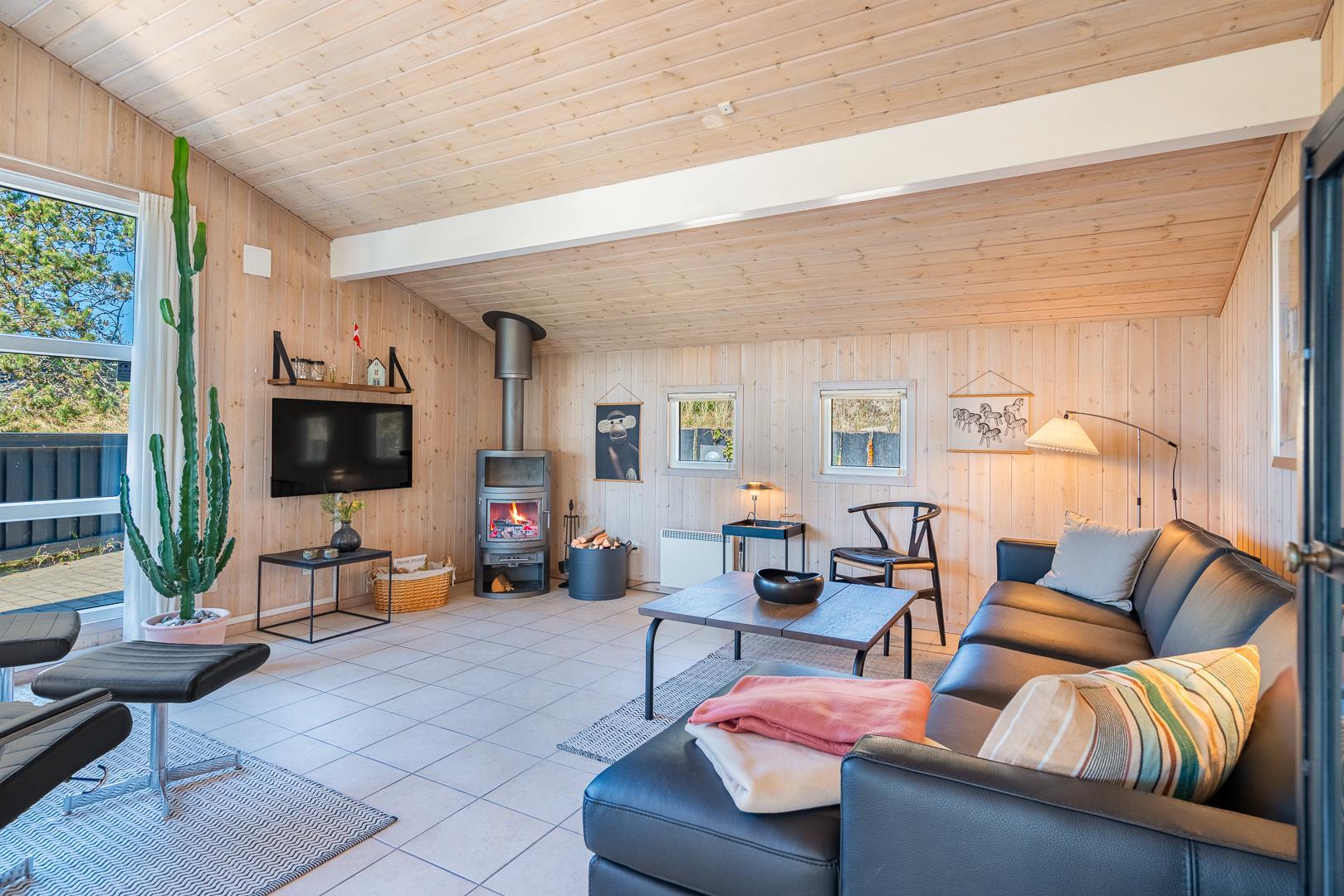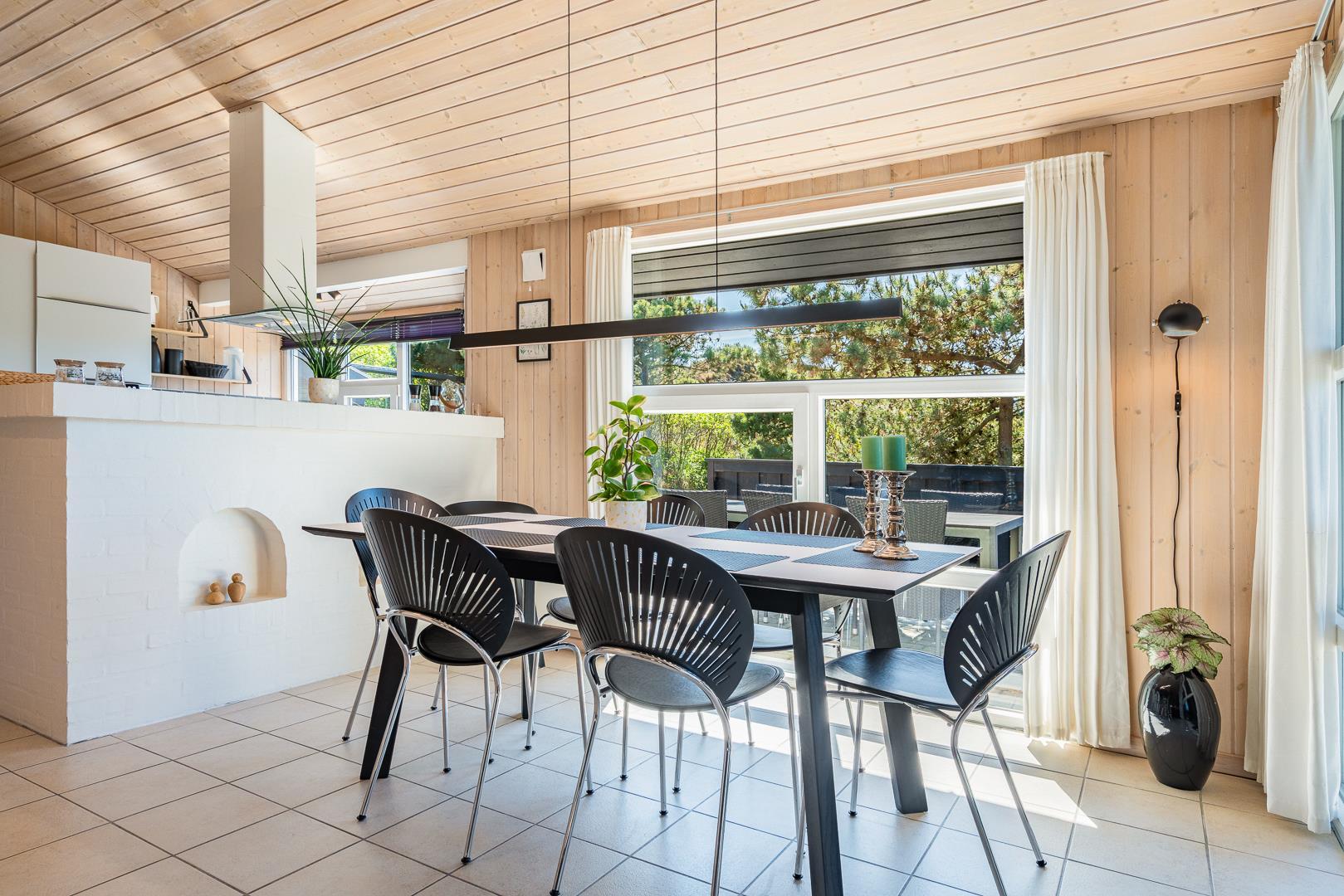 Lækkert feriehus beliggende på en pragtfuld og rolig klitgrund for enden af blind vej. Huset er meget smagfuldt indrettet med gode kvalitets møbler. Fra det lyse køkken/alrum er der direkte udgang til stor dejlig ugeneret terrasse, hvor der er altid er mulighed for at finde en god lækrog. Der er 3 gode soverum i to er der ligeledes TV. Der er stort vinduesparti som giver i godt lysindfald ind i huset. IKKE RYGERHUS