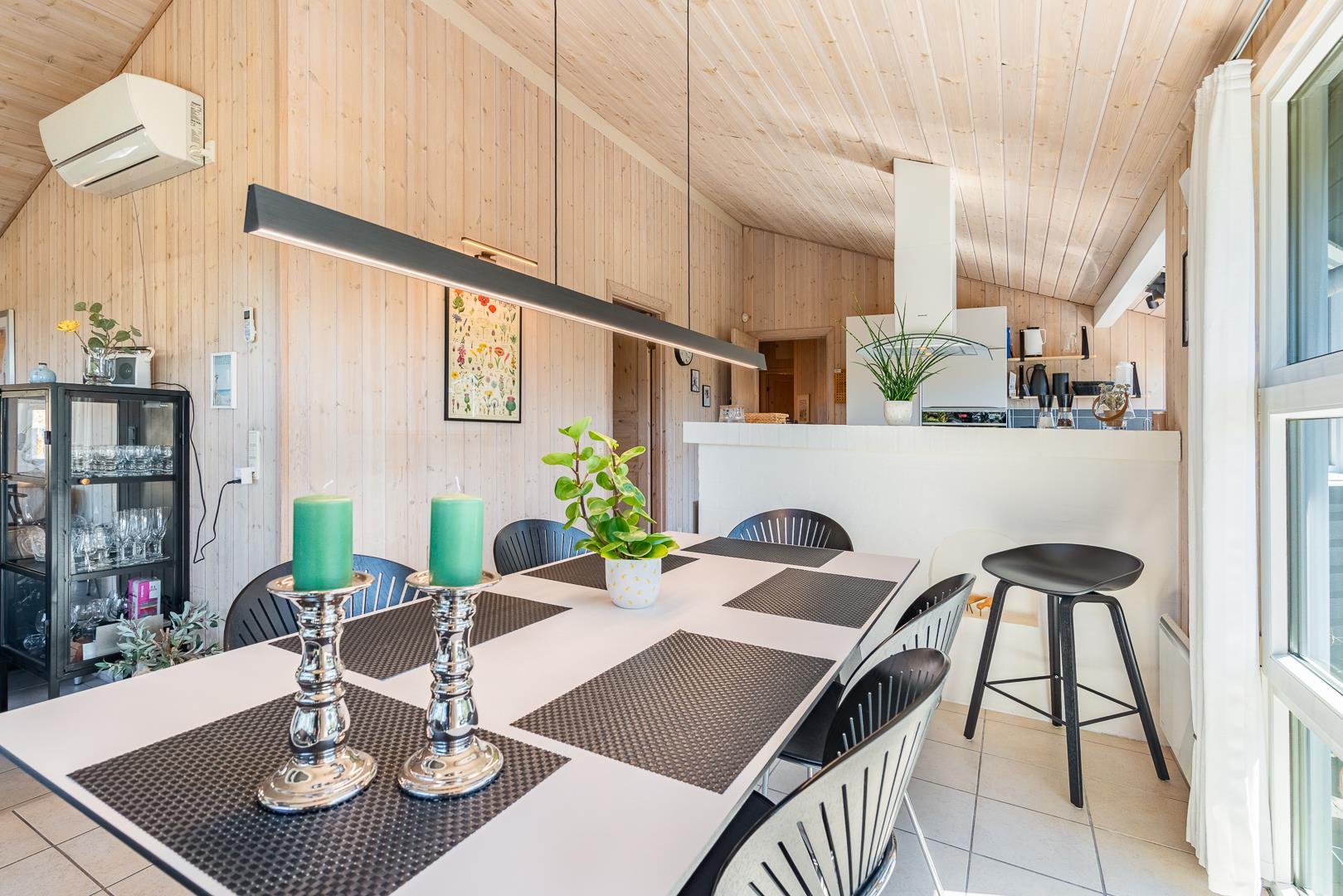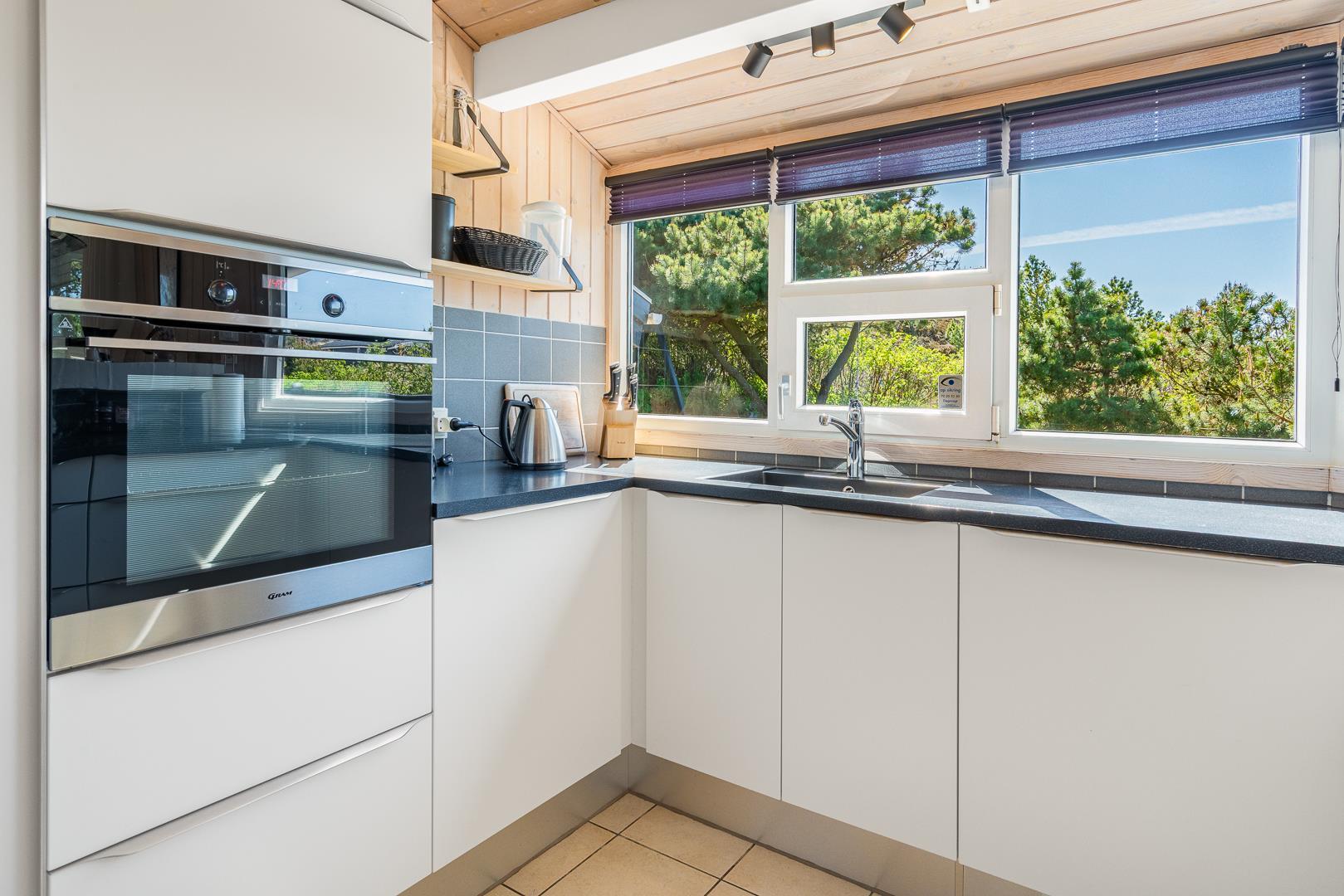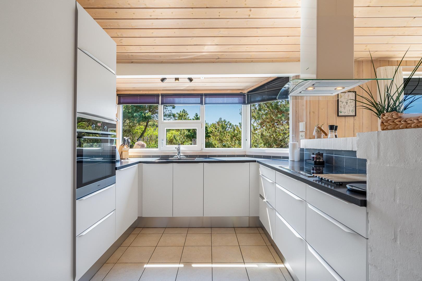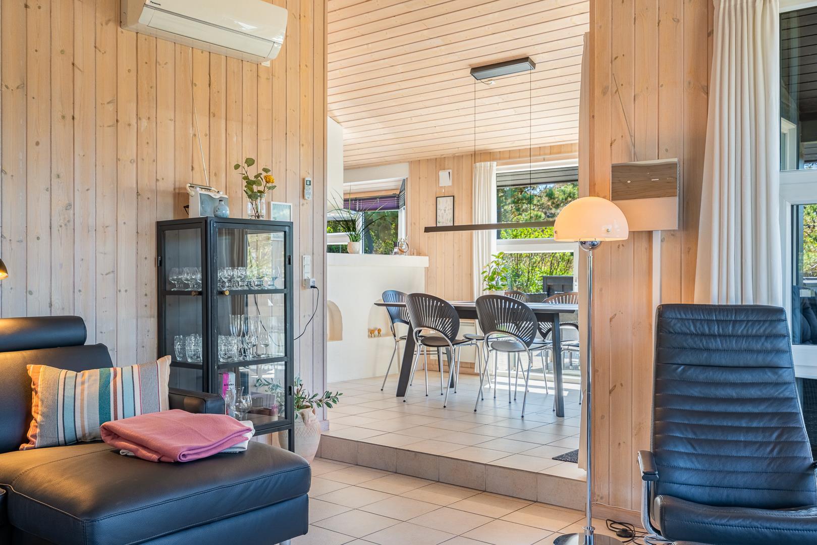 Lækkert feriehus beliggende på en pragtfuld og rolig klitgrund for enden af blind vej. Huset er meget smagfuldt indrettet med gode kvalitets møbler. Fra det lyse køkken/alrum er der direkte udgang til stor dejlig ugeneret terrasse, hvor der er altid er mulighed for at finde en god lækrog. Der er 3 gode soverum i to er der ligeledes TV. Der er stort vinduesparti som giver i godt lysindfald ind i huset. IKKE RYGERHUS