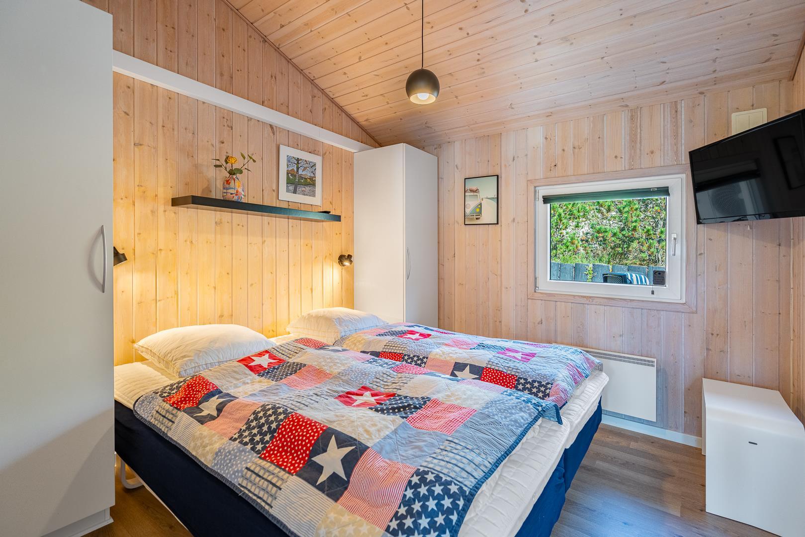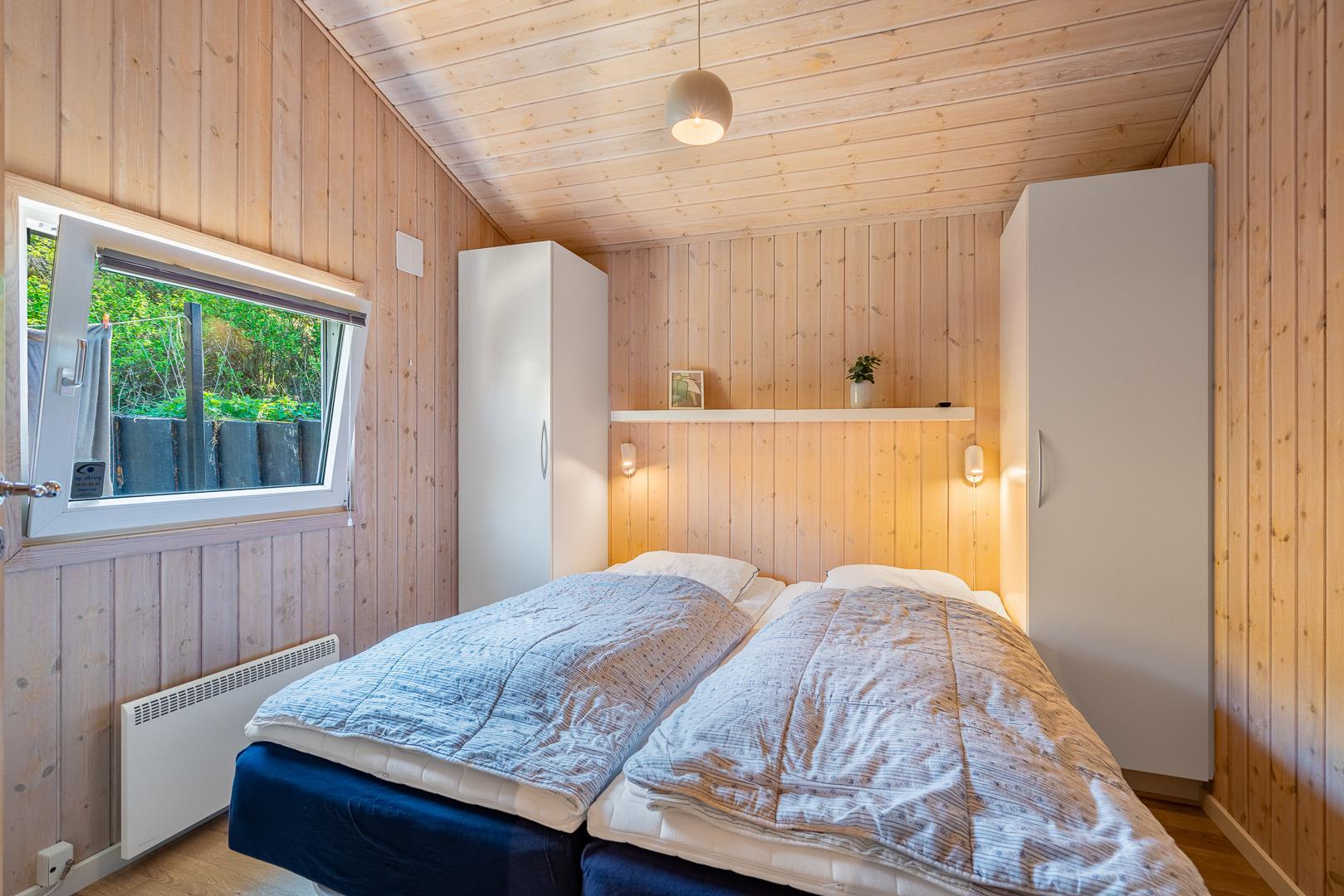Sengestørrelse: 2 dobbeltsenge med 2 madrasser 90 x 200 cm + 2 enkeltsenge 80 x 200 cm.