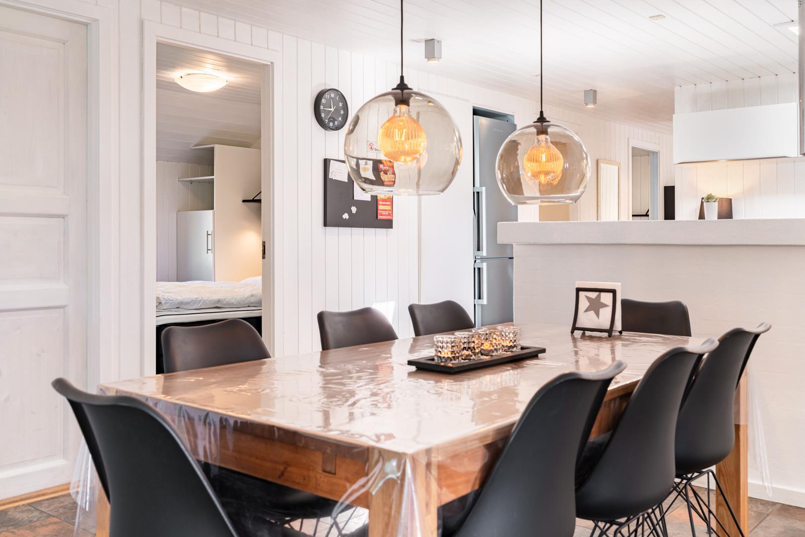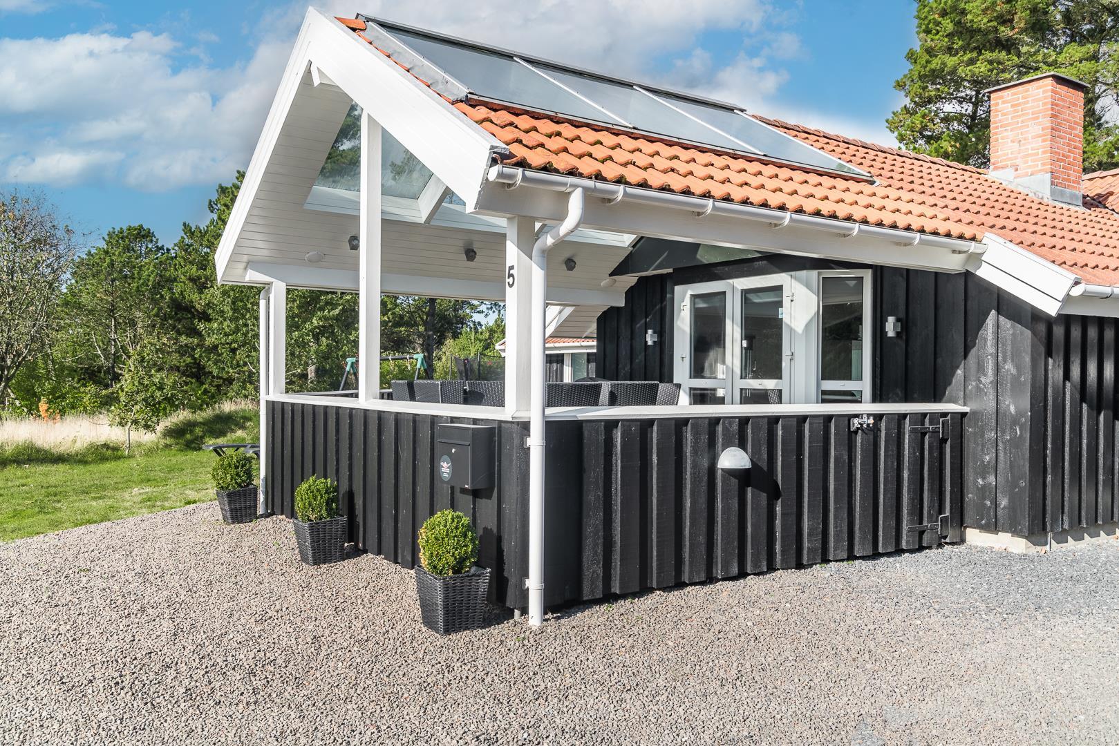 Lækkert og velpasset sommerhus beliggende få minutters gang fra Henne Strands hyggelige strandliv. Tjurvej 5 fremstår overalt lyst og venligt og med nyere køkken i åben forbindelse med køkken alrummet. Huset har med sine 4 soverum plads til 8 personer. Stuen er møbleret med gode komfortable møbler og stort TV, fra stuen er der udgang til skøn overdækket og lukket træterrasse.