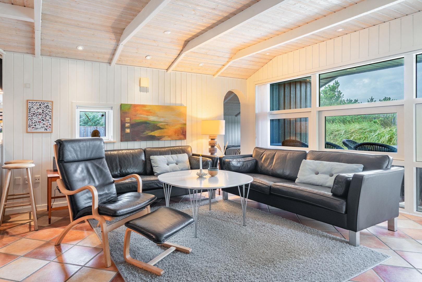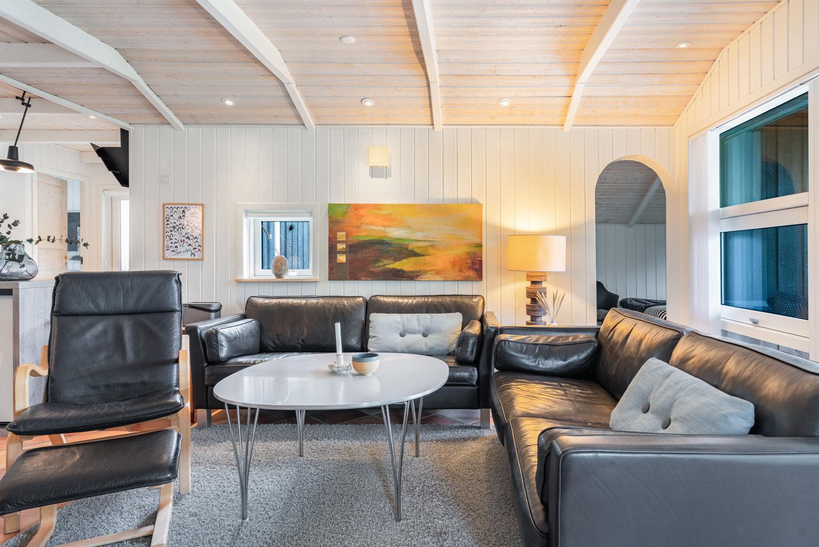 Indretningen er gennemtænkt og stilfuld, og der er god plads til både fællesskab og ro.