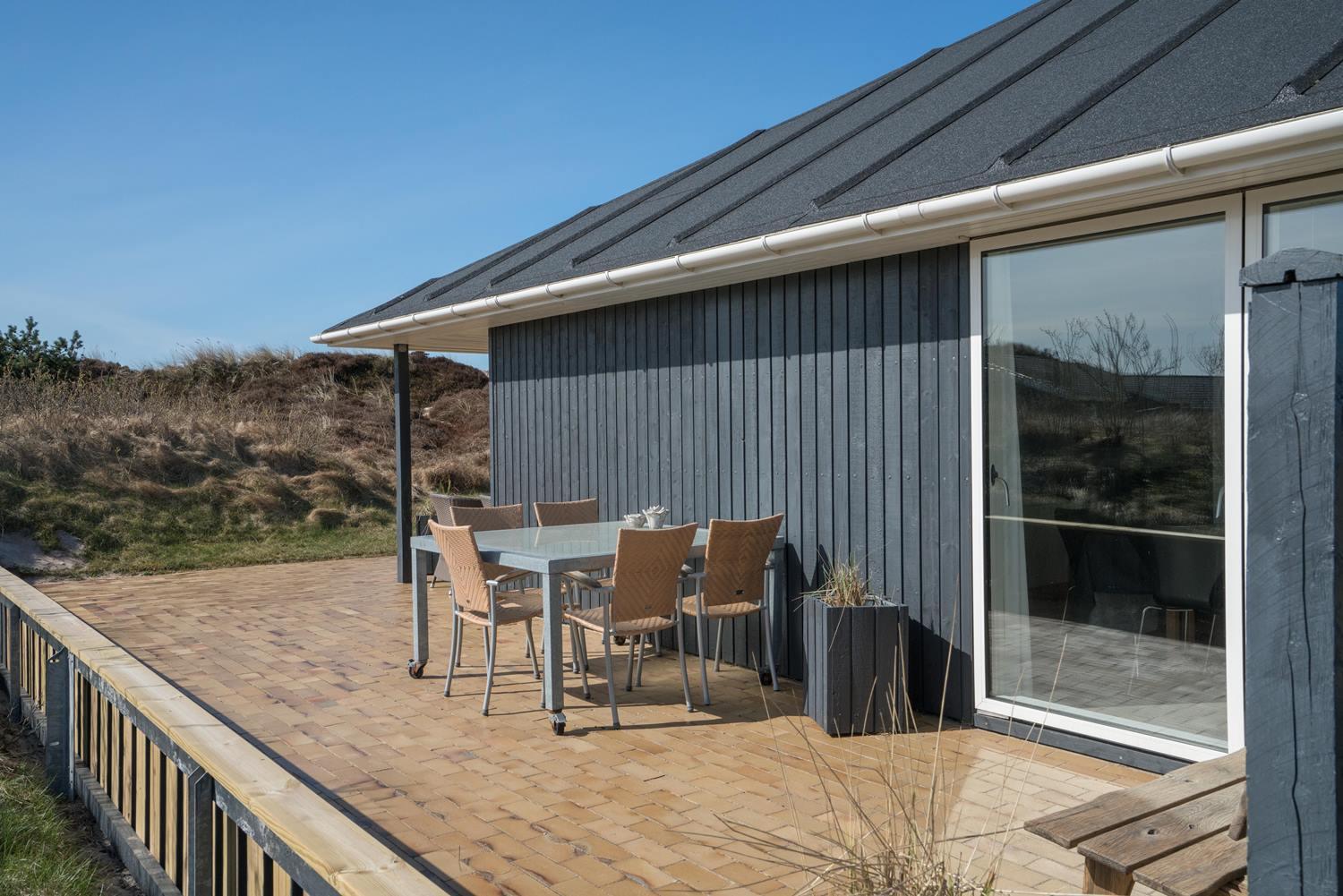 Udendørs venter en stor og meget ugeneret terrasse, hvor du kan nyde solen, grille og bare koble helt af i den friske vestjyske luft.