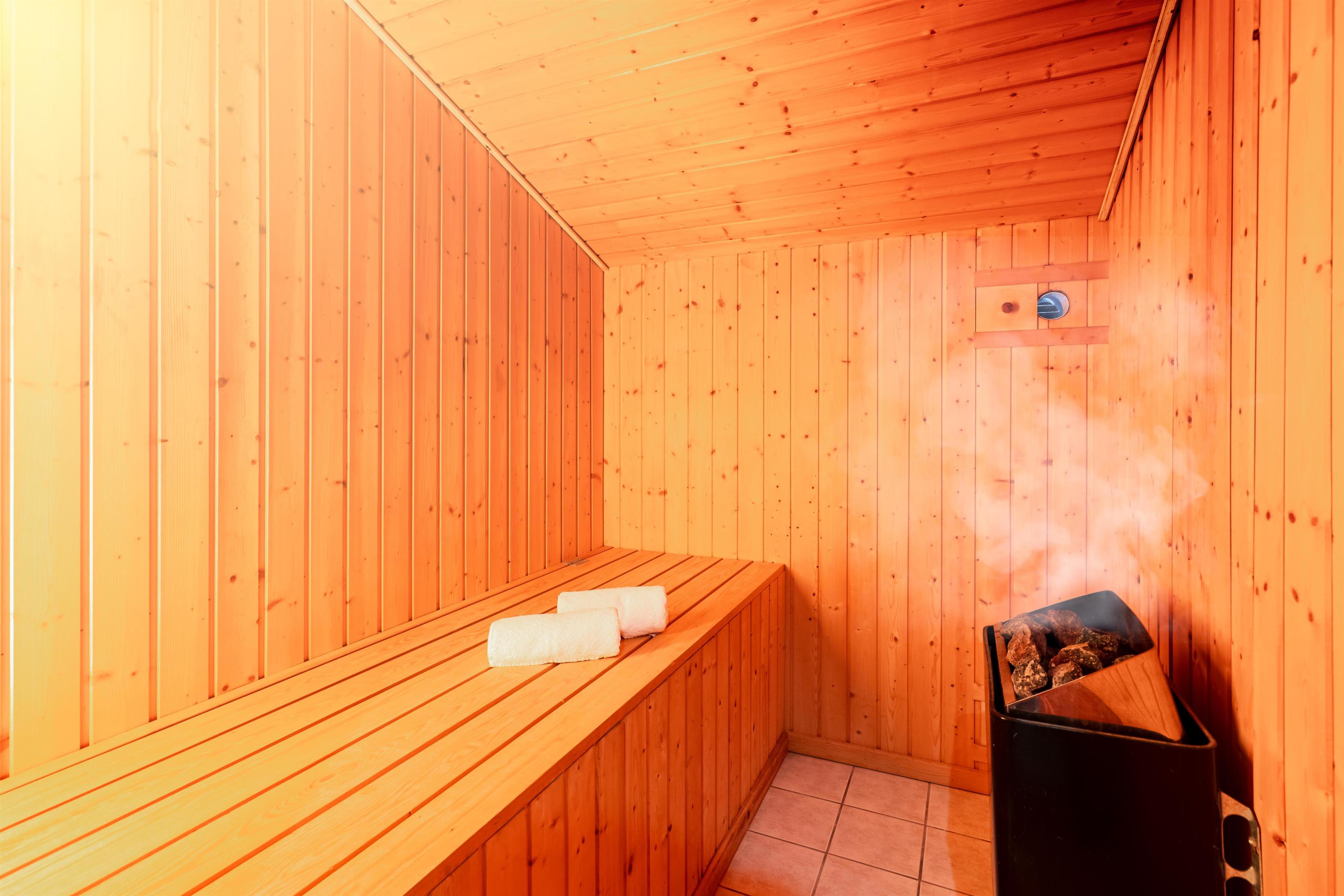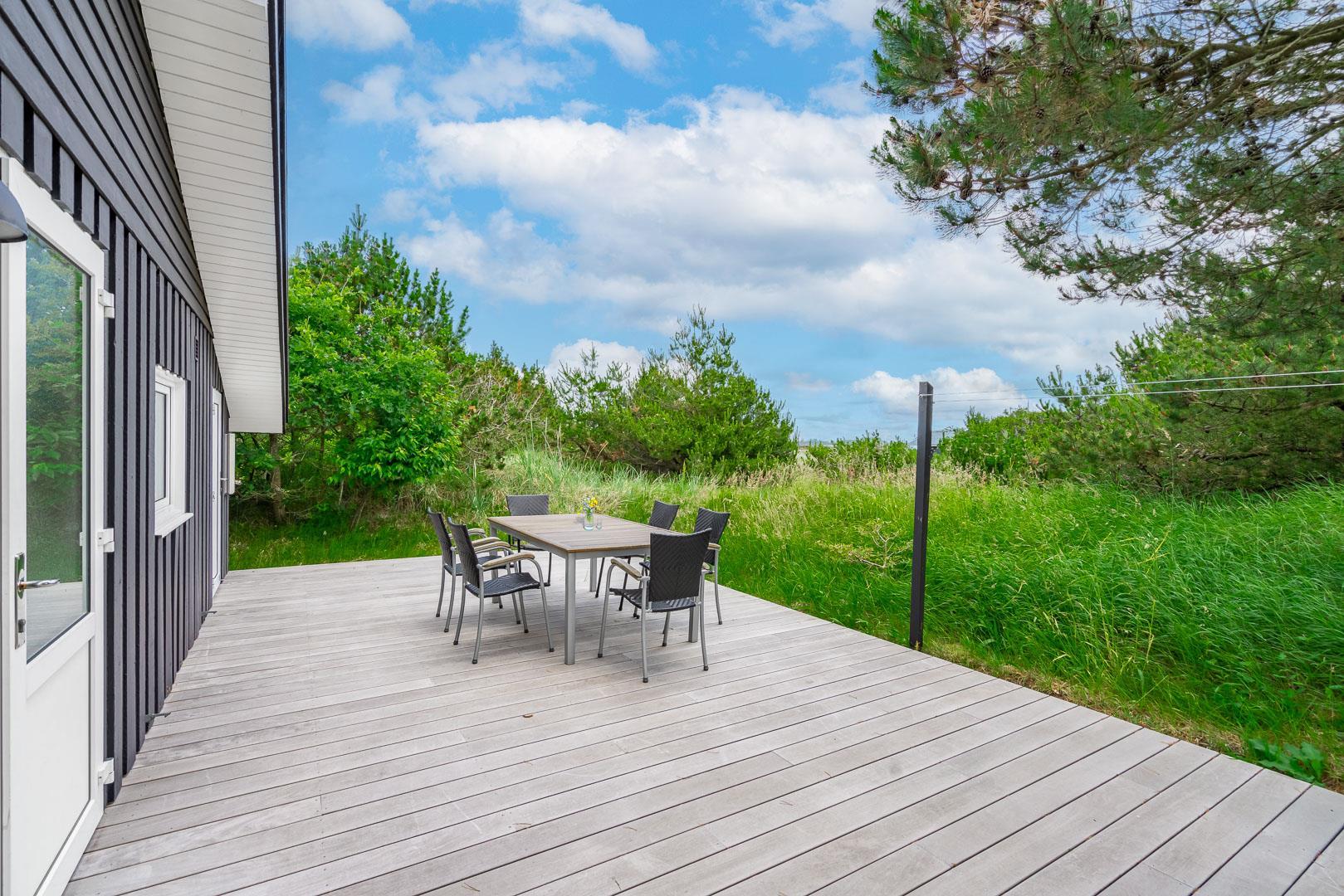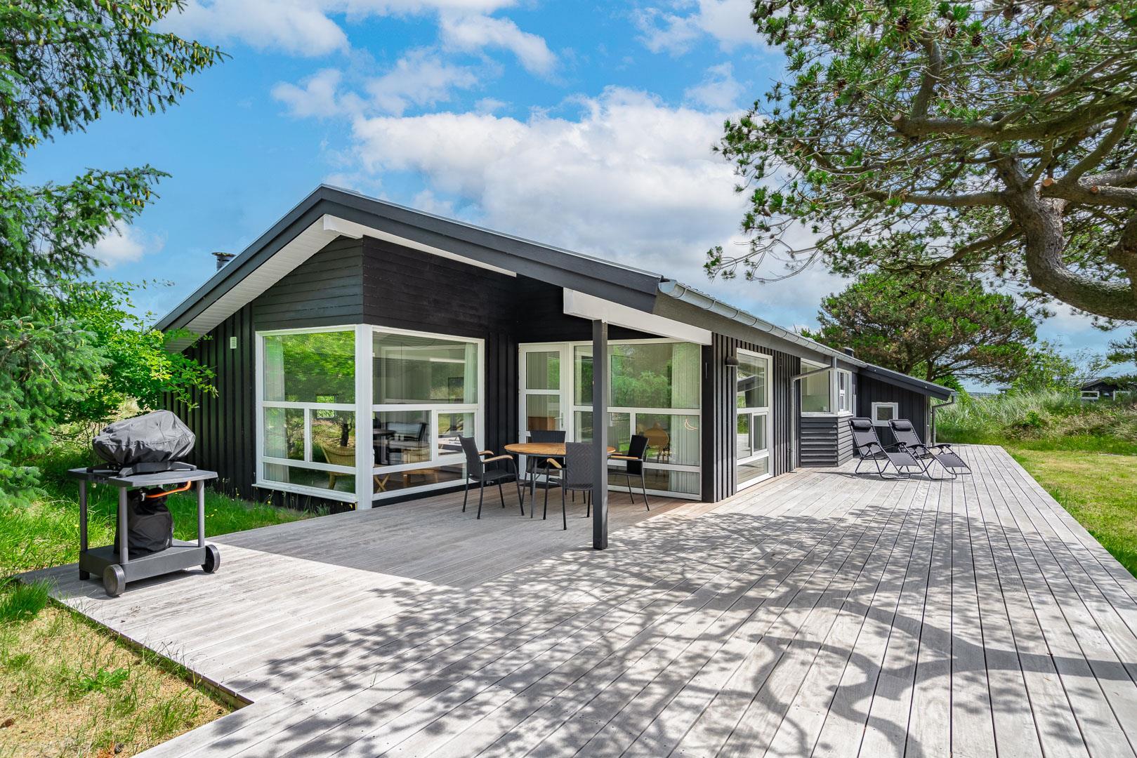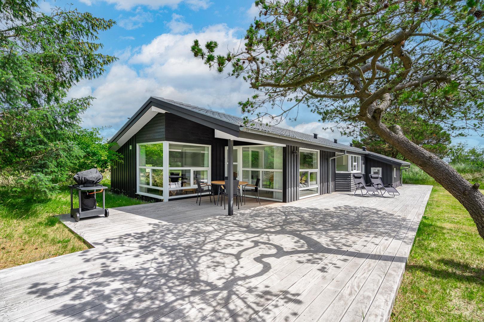 Lyst og velholdt feriehus ved fredet hedeområde med spabad, sauna og flere terrasser tæt på Henne Strand.