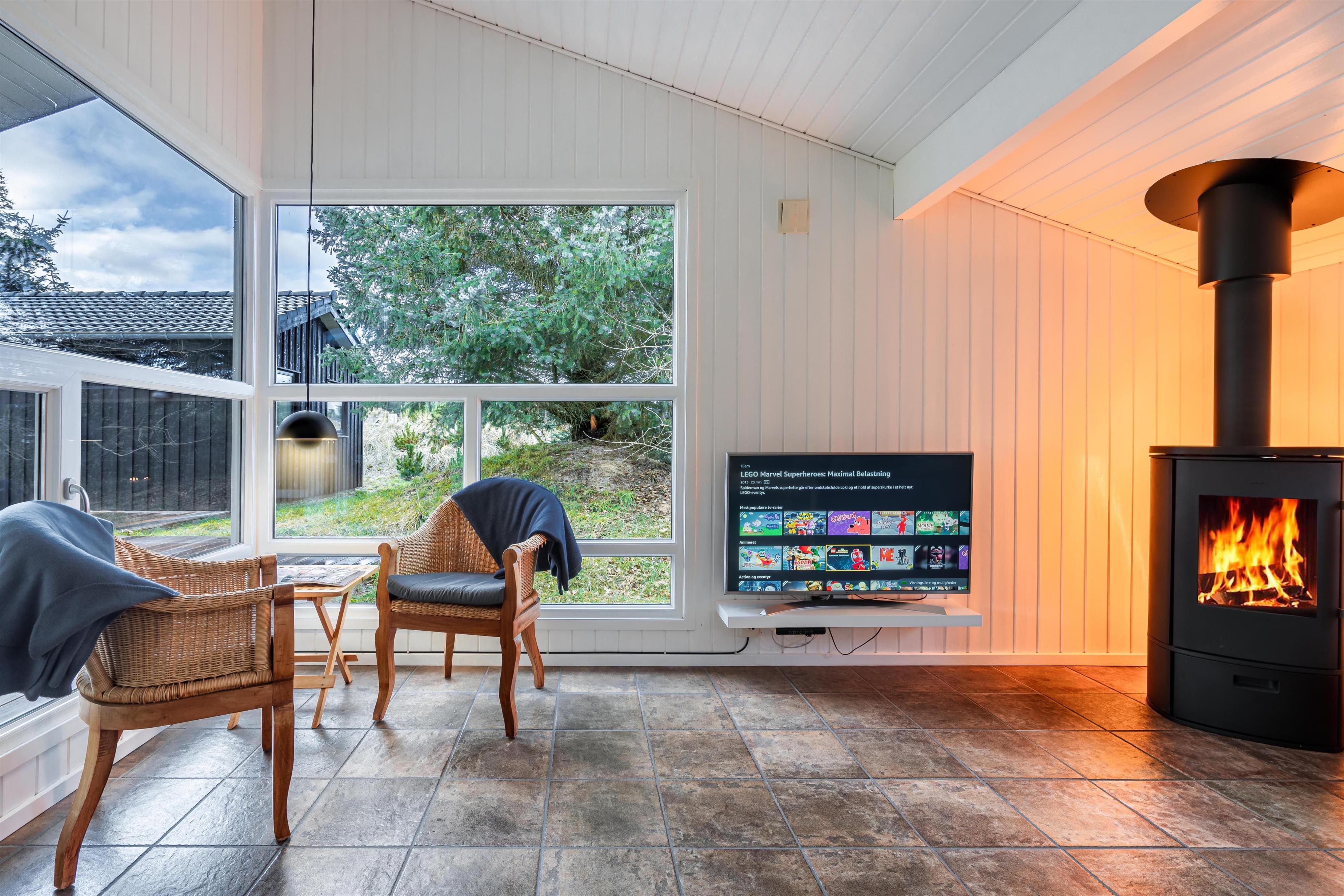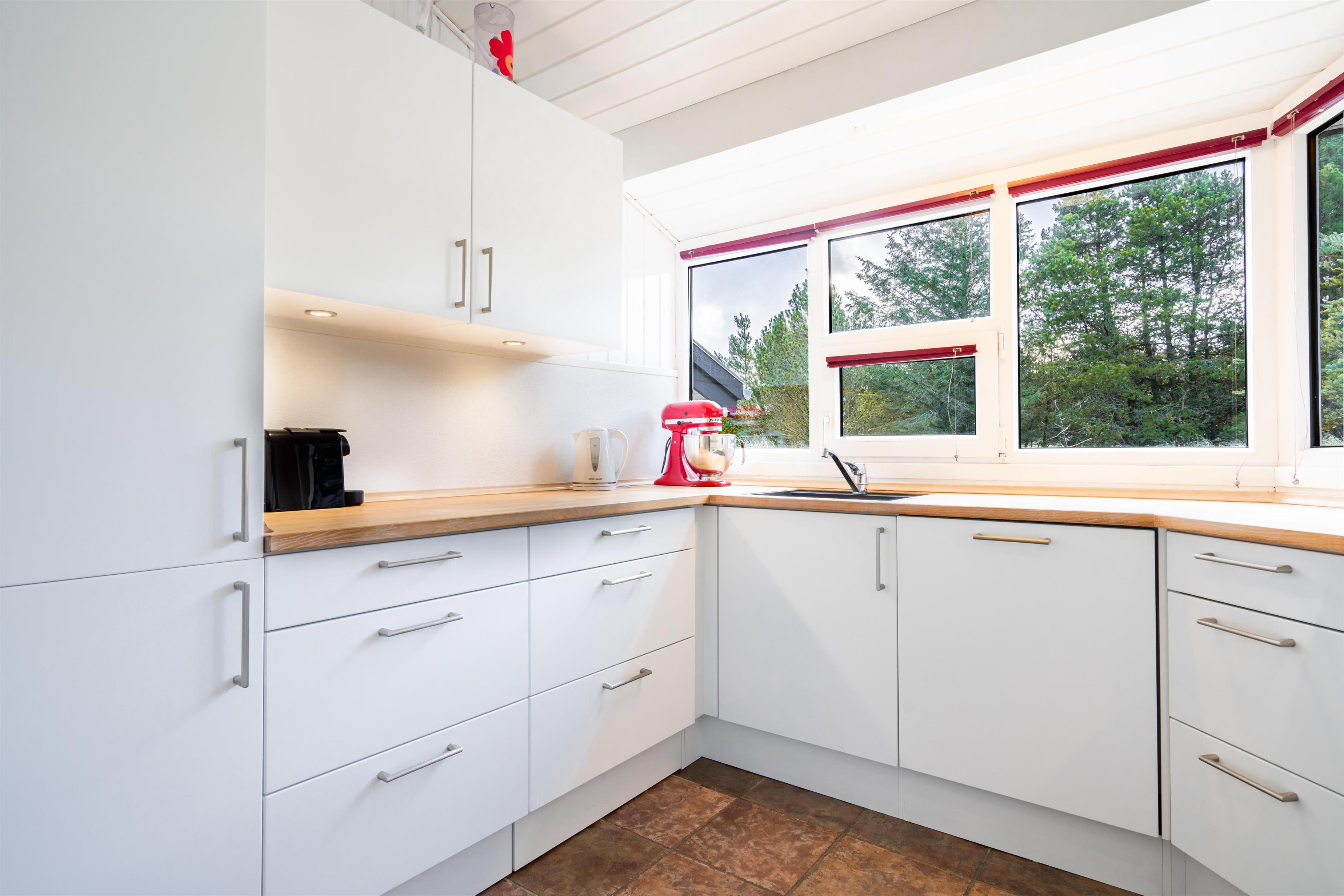 I rolige omgivelser og lige ud til stort fredet hedeområde ligger dette dejlige og velholdte feriehus. Grunden er velegnet til at børnene rigtig kan boltre sig. Huset er lyst og indrettet med gode møbler. Stort badeværelse med spabad og sauna. Der er flere skønne og læfulde terrasser, den ene er delvis overdækket.