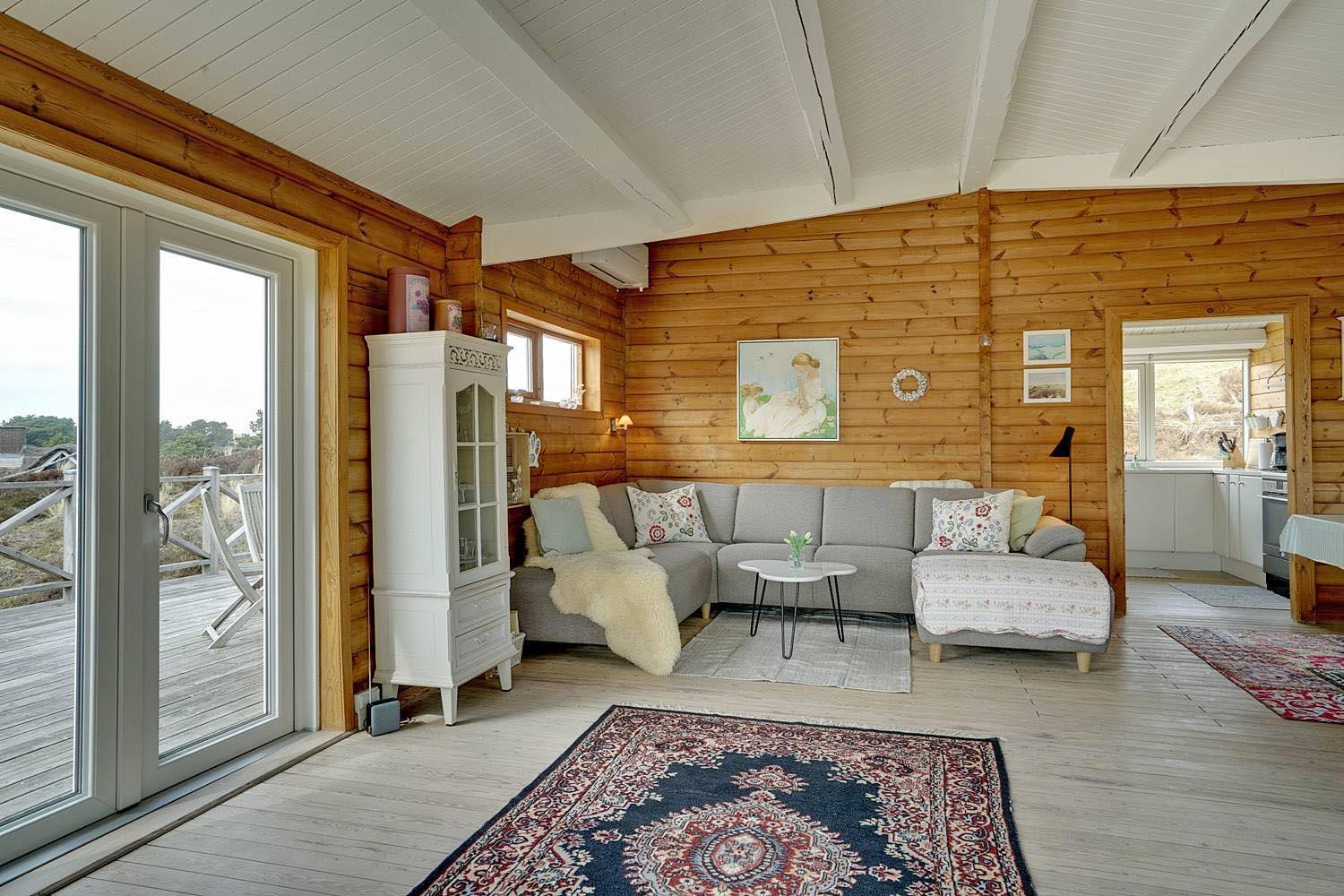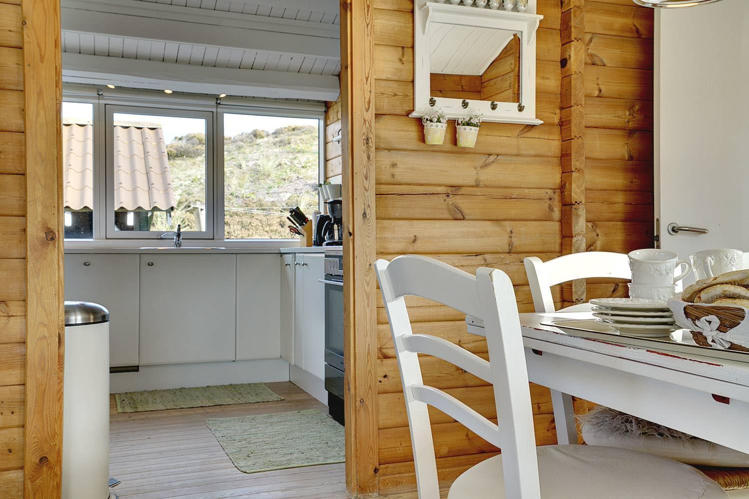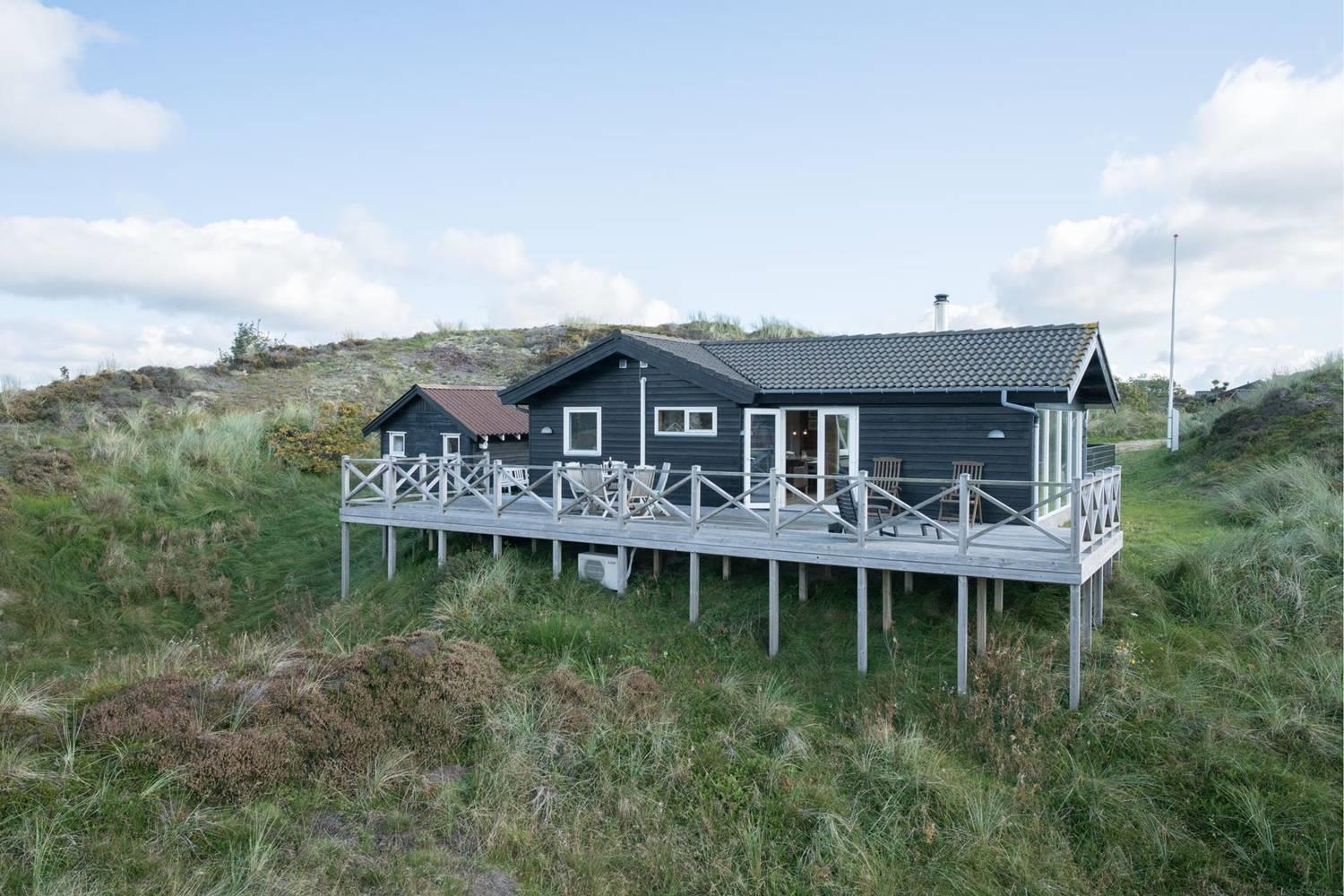 På en herlig og ugeneret klitgrund helt for sig selv ligger dette skønne feriehus. Huset er omgivet af klitter og man mærker en fantastisk atmosfære. Indendørs er der højt til loftet og en charmerende romantisk stil med personligt præg og en snært af bjælke hytte. Stuen er lys og venlig og har gode møbler og trægulve, samt spisekrog. Flot nyere køkken og nyere badeværelse med gulvvarme. En afdeling med 1 dobbelt sengs værelse samt et værelse med 2 senge. Fra køkken er der soverum med 2 senge. Der er fredfyldt og ugeneret træterrasse, der indbyder til afslapning.