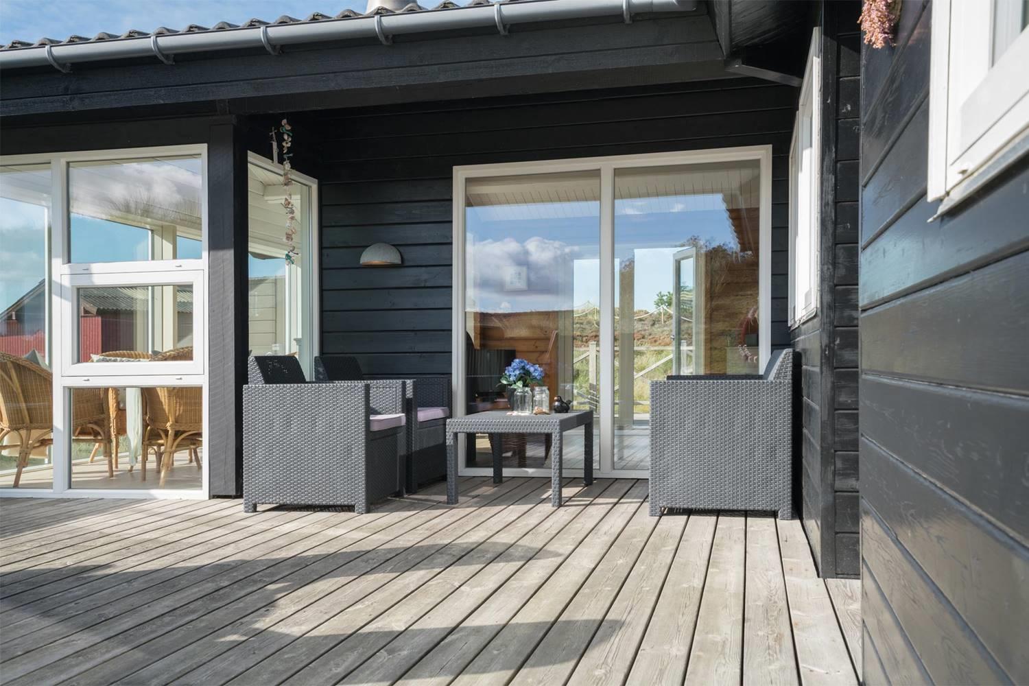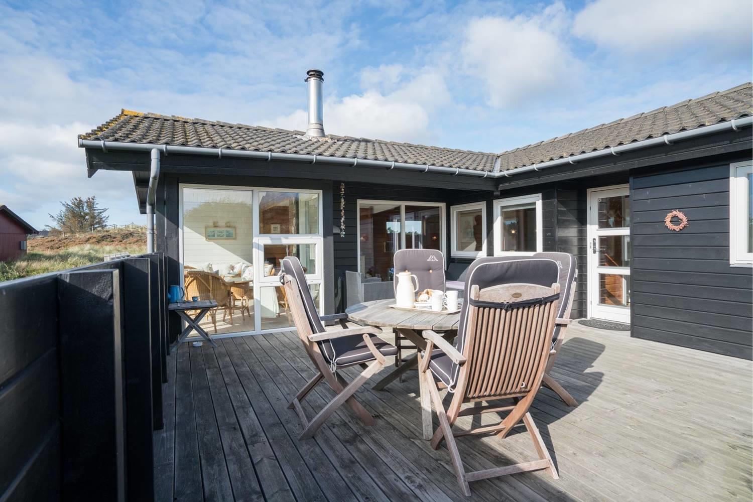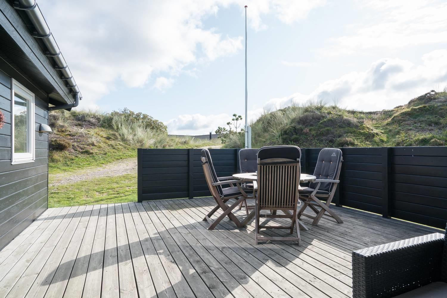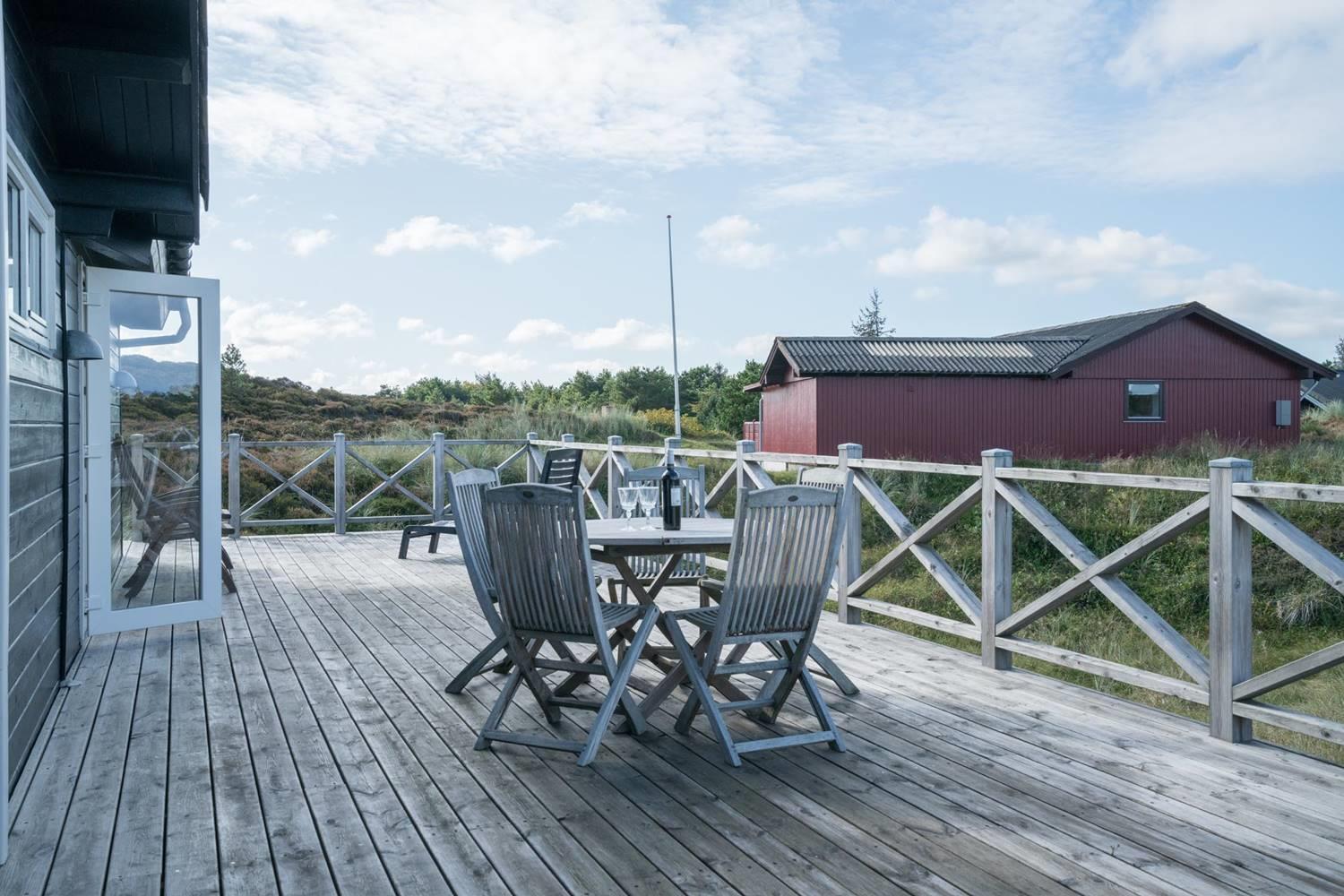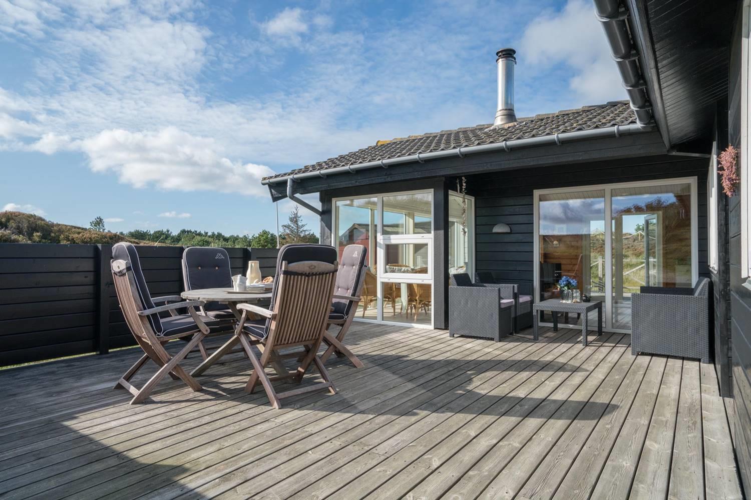 Charmerende feriehus på ugeneret klitgrund nær Henne Strand med moderne faciliteter og fredfyldt terrasse.