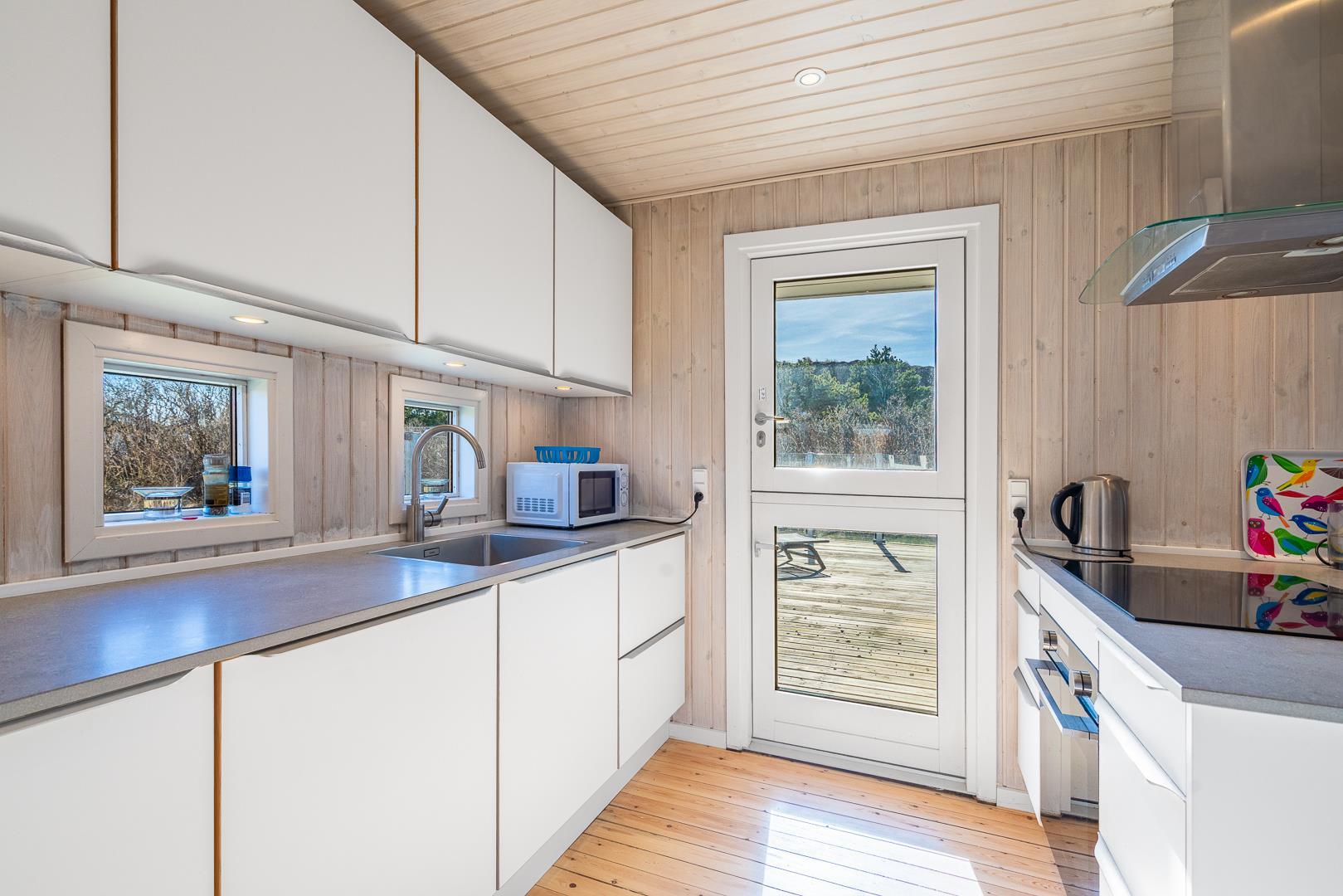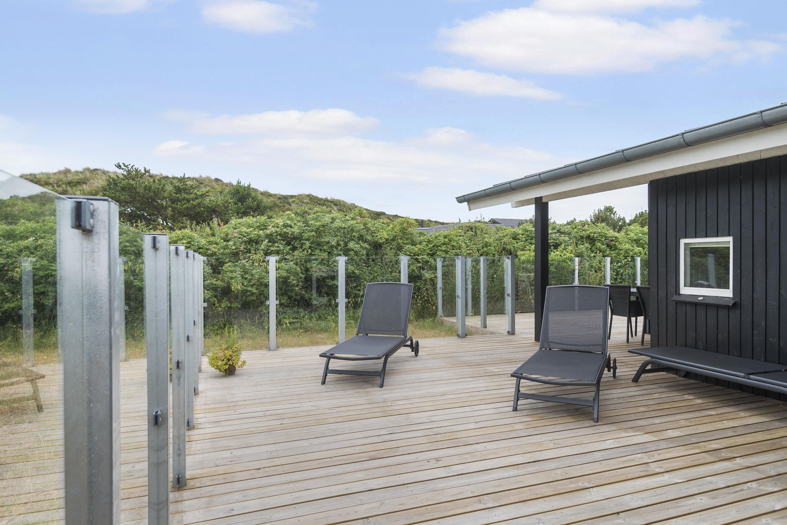 Sommerhuset har dejlig stor terrasse med havemøbler og liggestole. Huset ligger kun med få minutters gang til Henne Strand centrum med masser af butikker og stor dagligvarebutik.