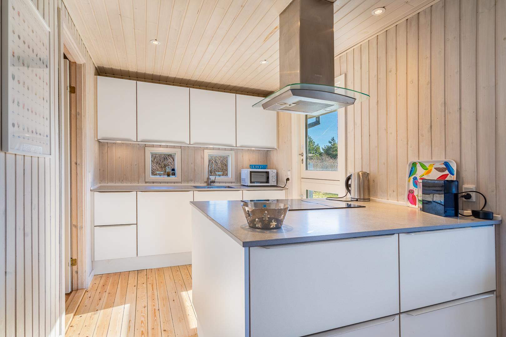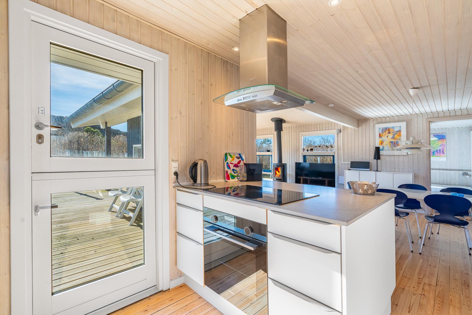 Huset er indrettet med et stort nyt moderne køkken/alrum (fra påske 2025) der er i åben forbindelse med stuen.