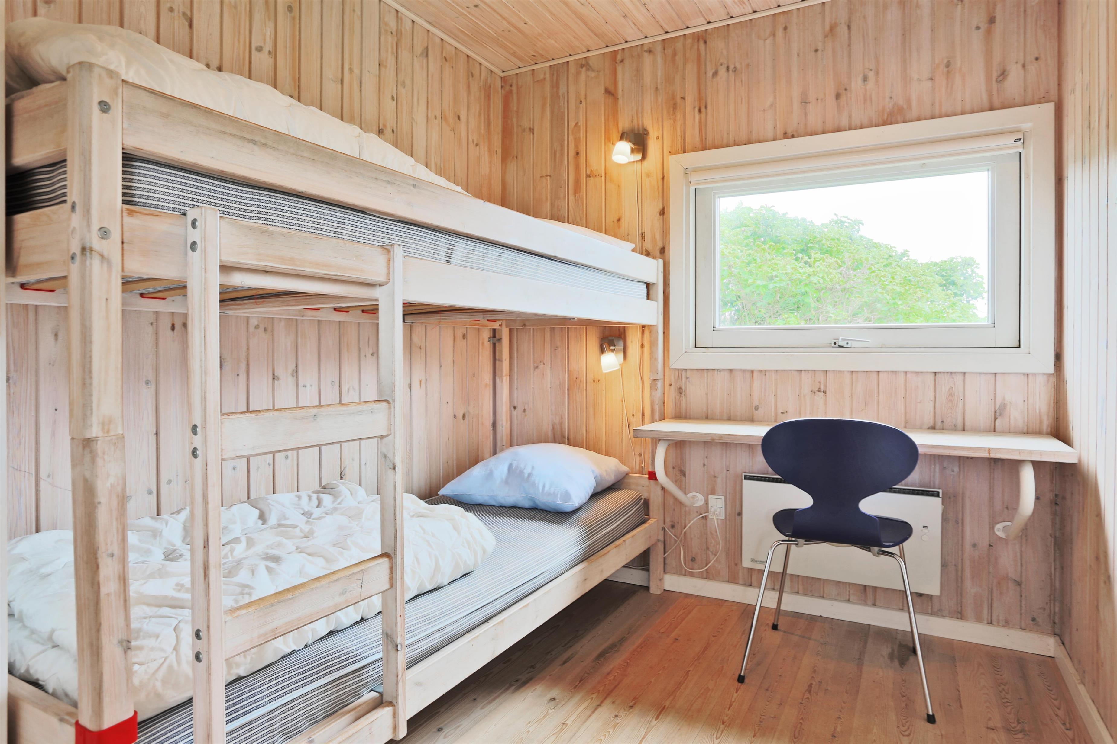Huset har 3 dejlige soverum, 1 med dobbeltseng, 1 med 2 enkeltsenge samt 1 med køjesenge.