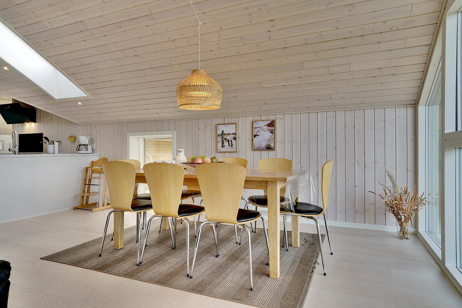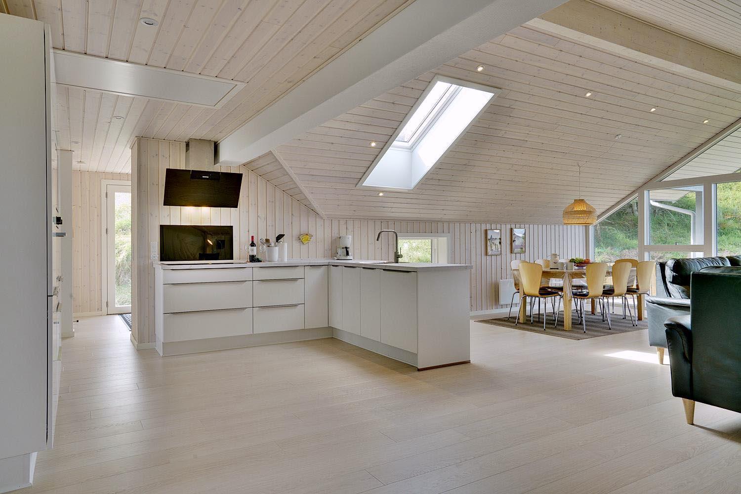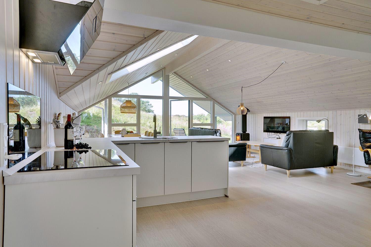Sommerhuset på Ligustervej 6 har en lys og hyggelig atmosfære med lyse vægge og stort vinduesparti. Huset har gennemgået en gennemgribende renovering i 2021 med et nyt badeværelse, nyt køkken alrum og stor entre med god plads til sko og tøj. Køkkenet er i åben forbindelse med den stuen, så hele familien kan være samlet når maden tilberedes. Der er ekstra badeværelse med spa og sauna.
