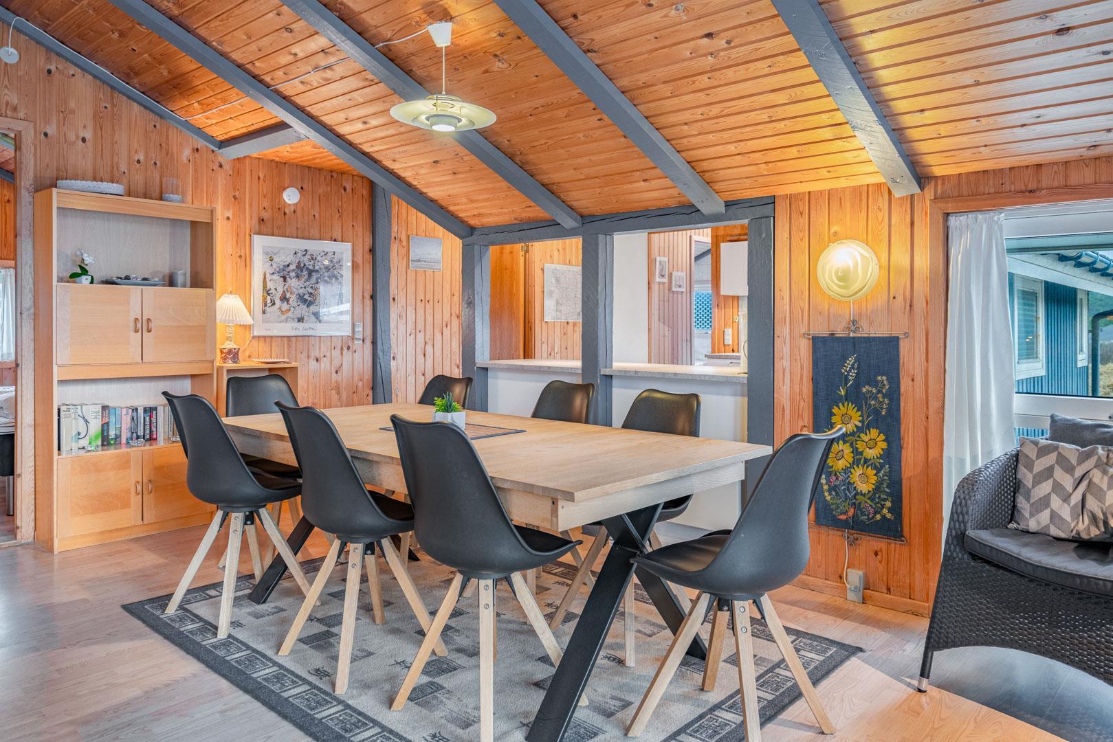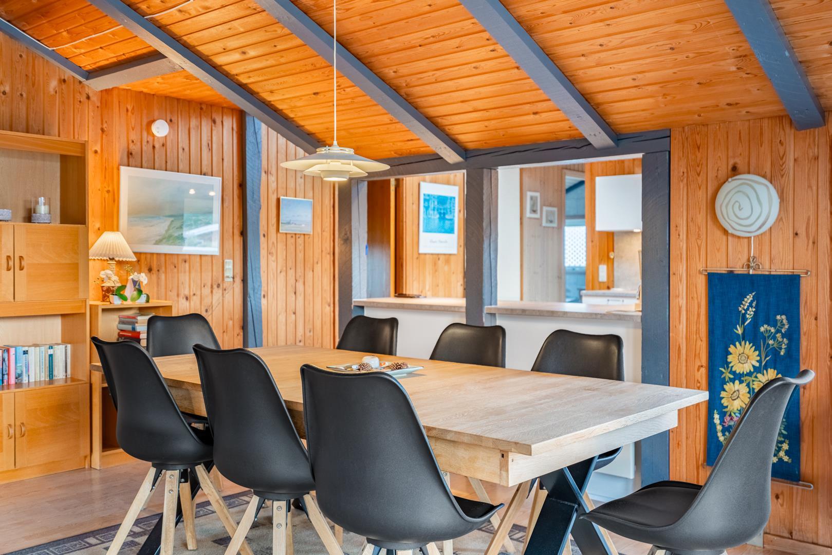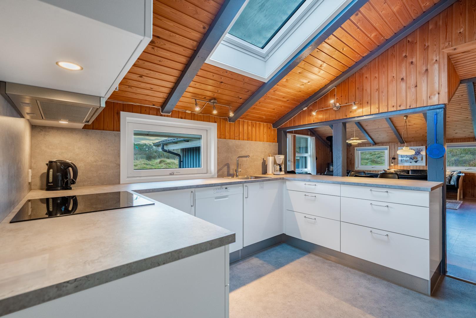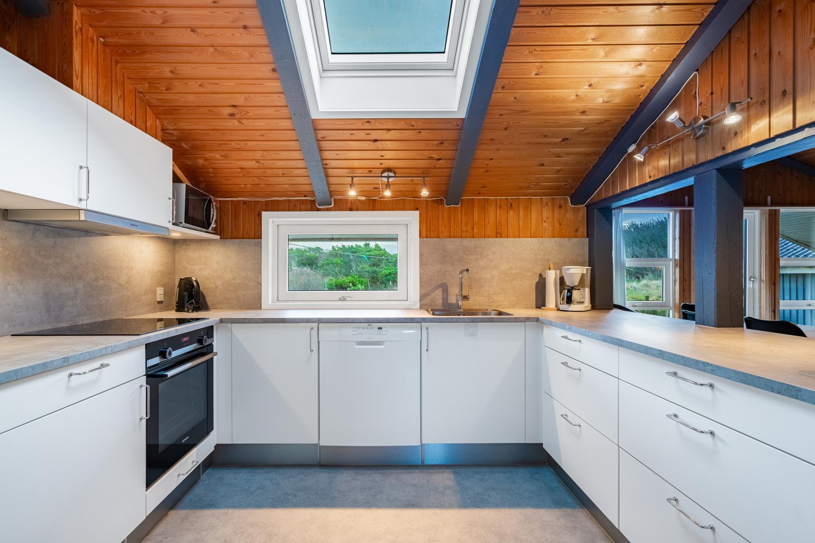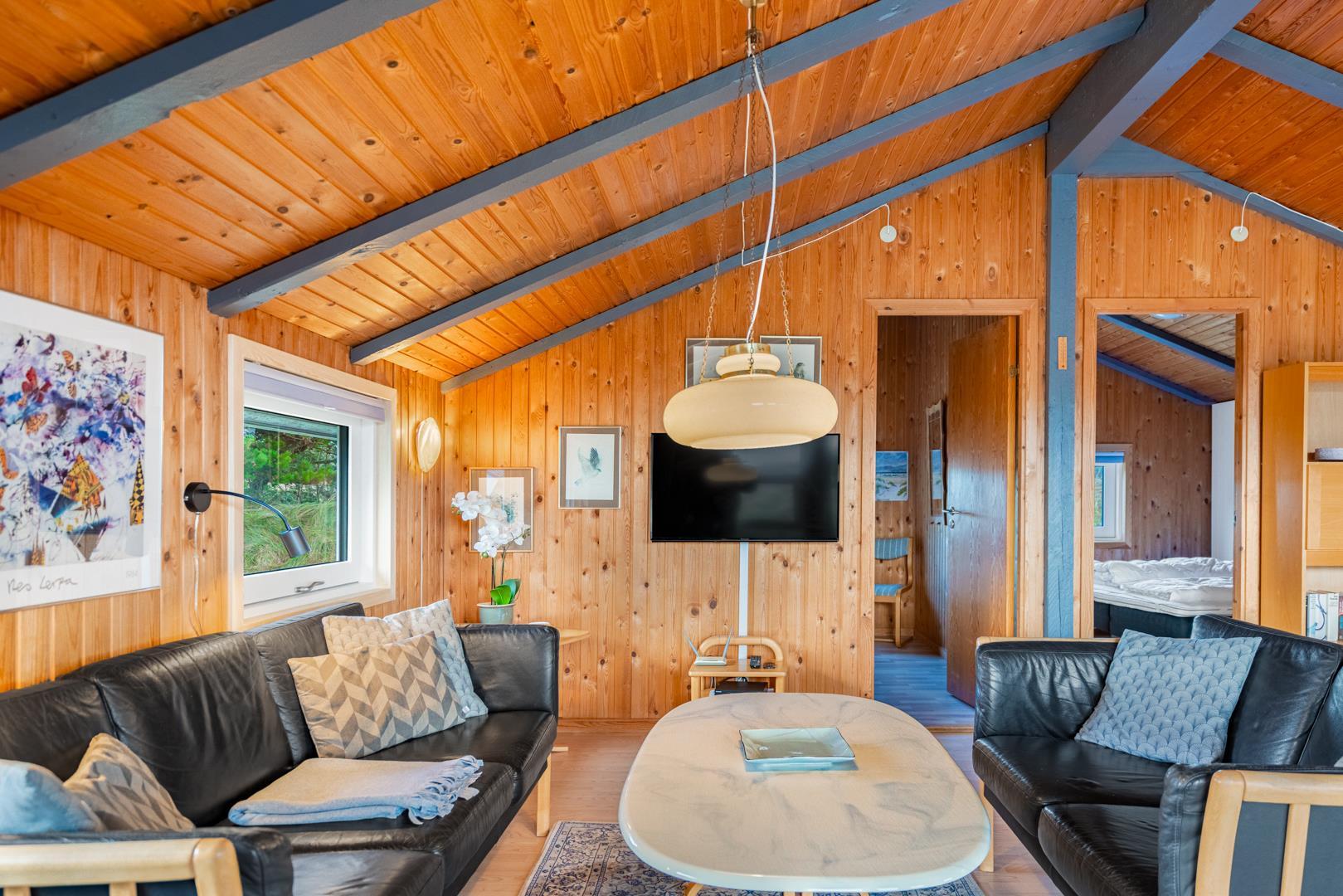 På en pragtfuld kuperet klitgrund tæt ved Henne Mølle Å og Vesterhavet ligger dette hyggelige og velholdte feriehus. Nyere badeværelser, hvoraf det ene er med spa og sauna. Stort køkken i åben forbindelse til rummelig stue. Herfra udgang til delvis overdækket, stor og ugenert terrasse hvorfra der er en flot udsigt over klitterne. Der forefindes en anneks/redskabsrum på grunden.