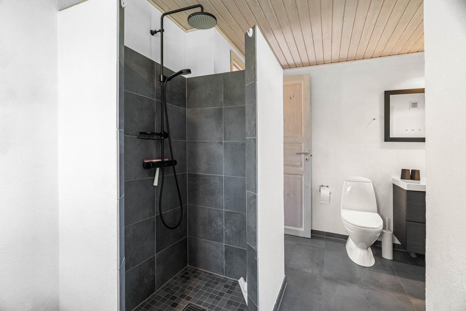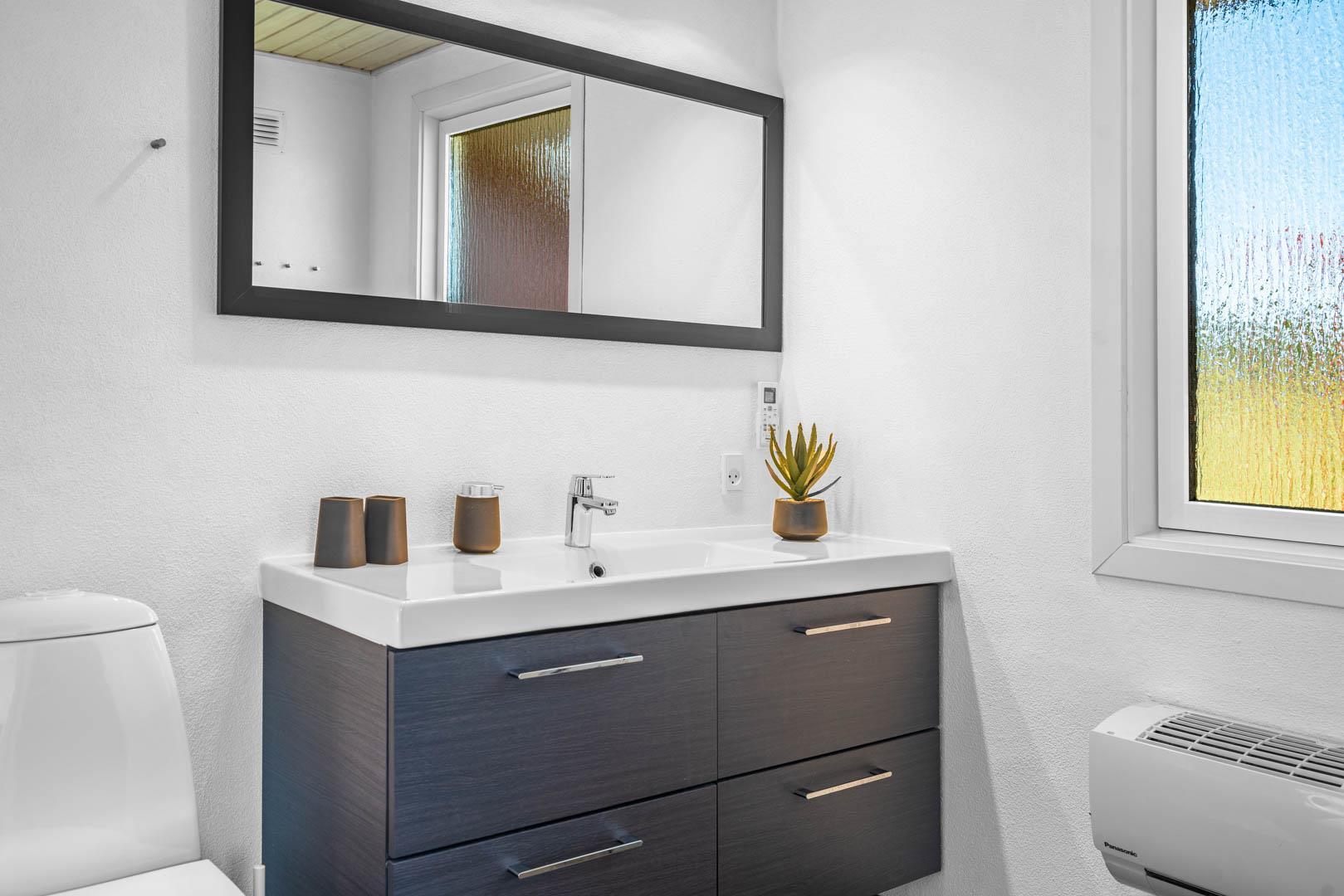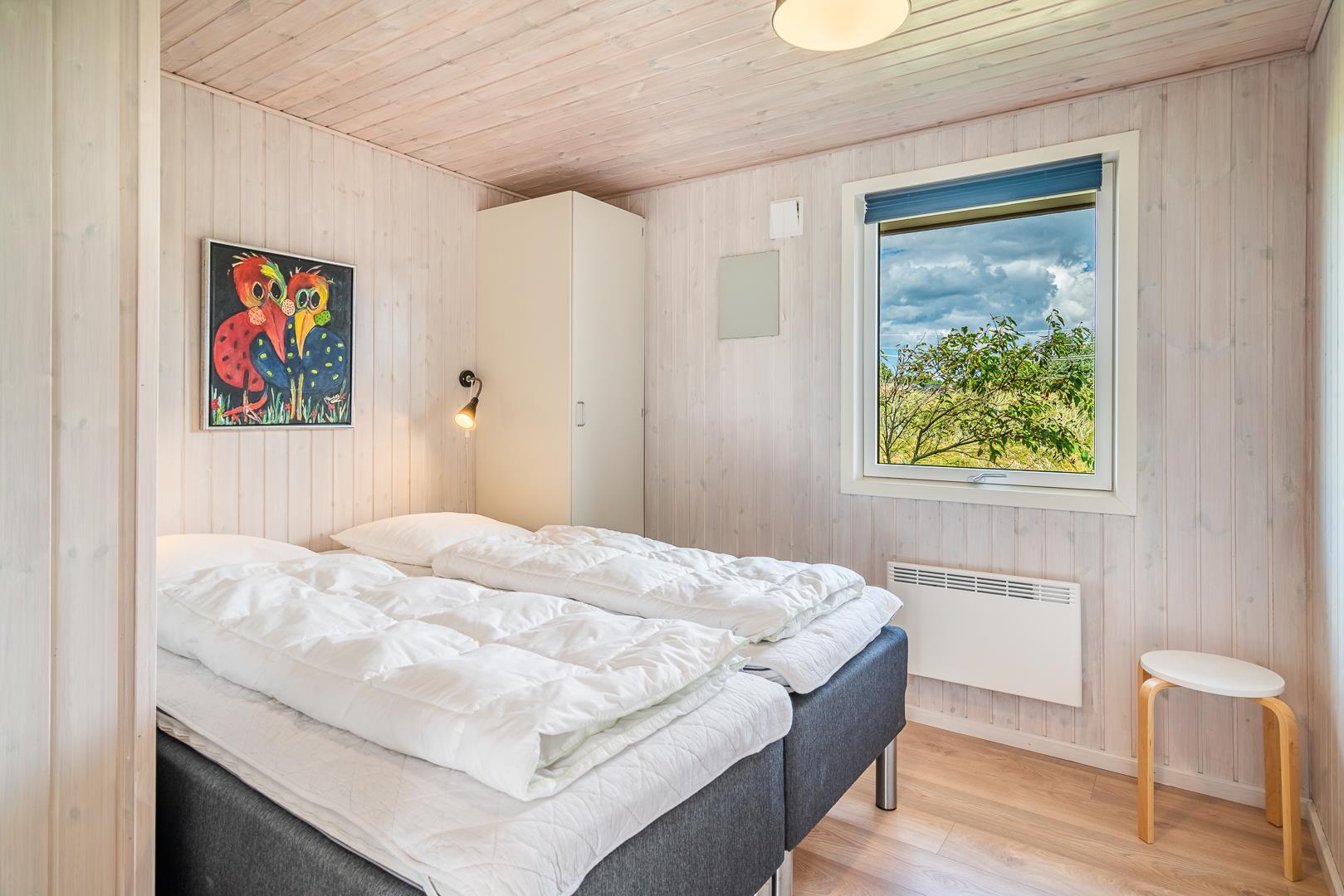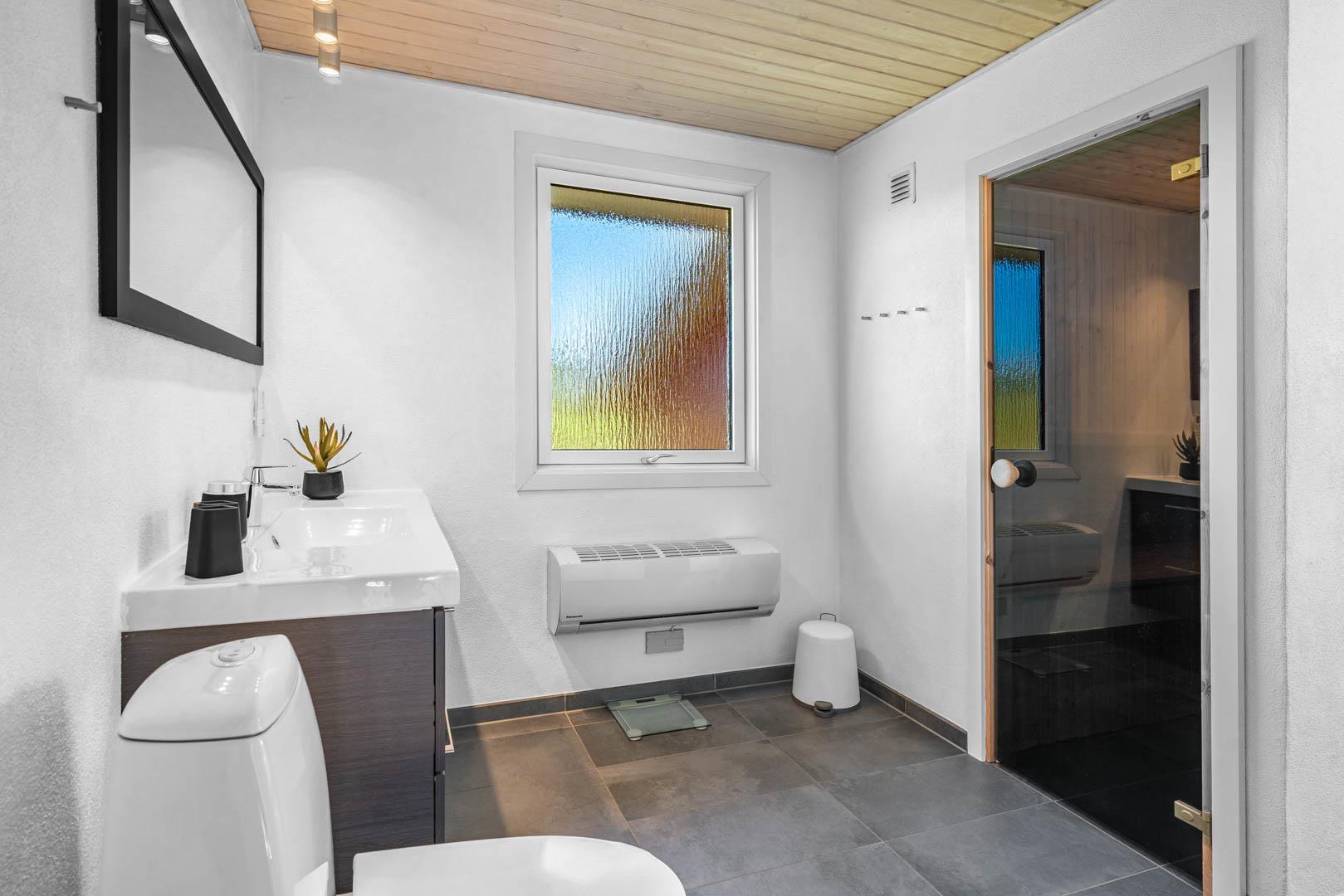 Yderligere faciliteter inkluderer en fin entré med vaskemaskine og en dejlig udestue, hvor du har rig mulighed for at nyde udsigten til den omkringliggende natur med en god kop kaffe. I udestuen er der også god plads til at konkurrere i familiespil eller fordybe sig i en god bog i rolige omgivelser. Men en terrasse der inviterer til afslapning under åben himmel tæt på naturen, skaber dette sommerhus den perfekte ramme for en mindeværdig ferie året rundt ved Henne Strand.Parkering med autocamper på grunden ikke tilladt.