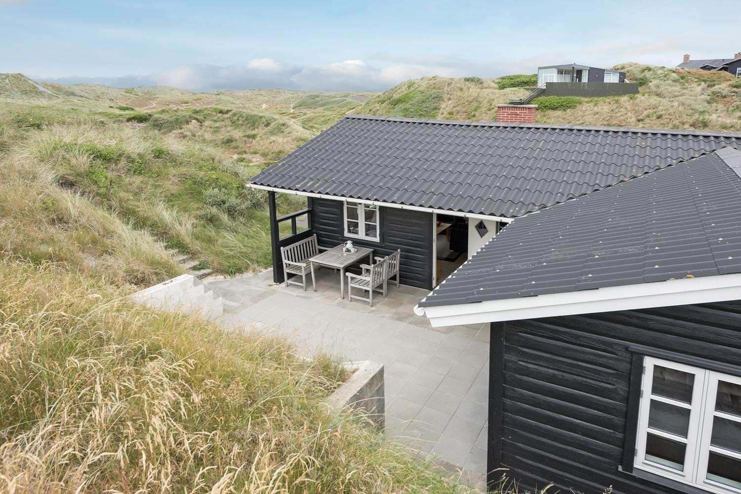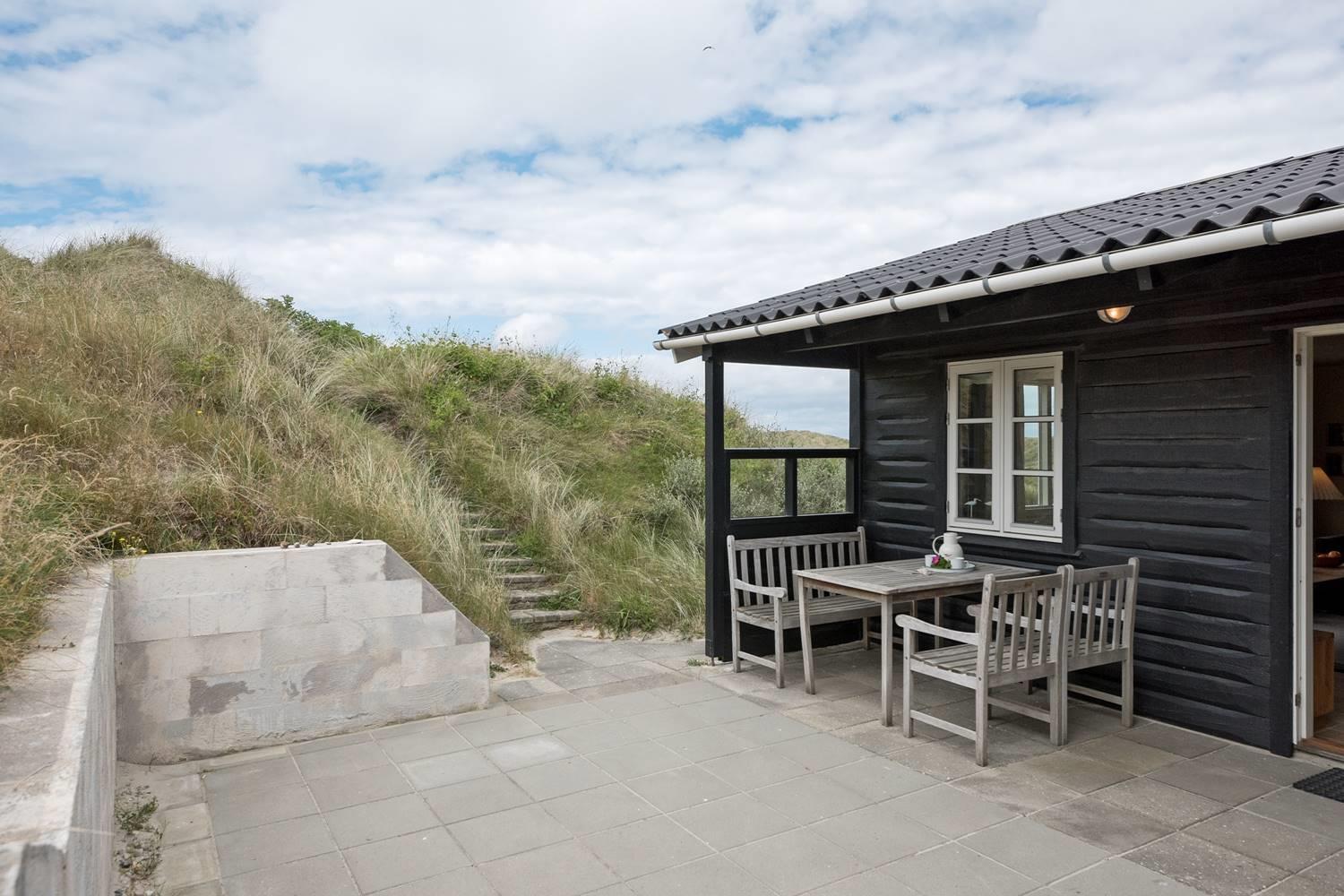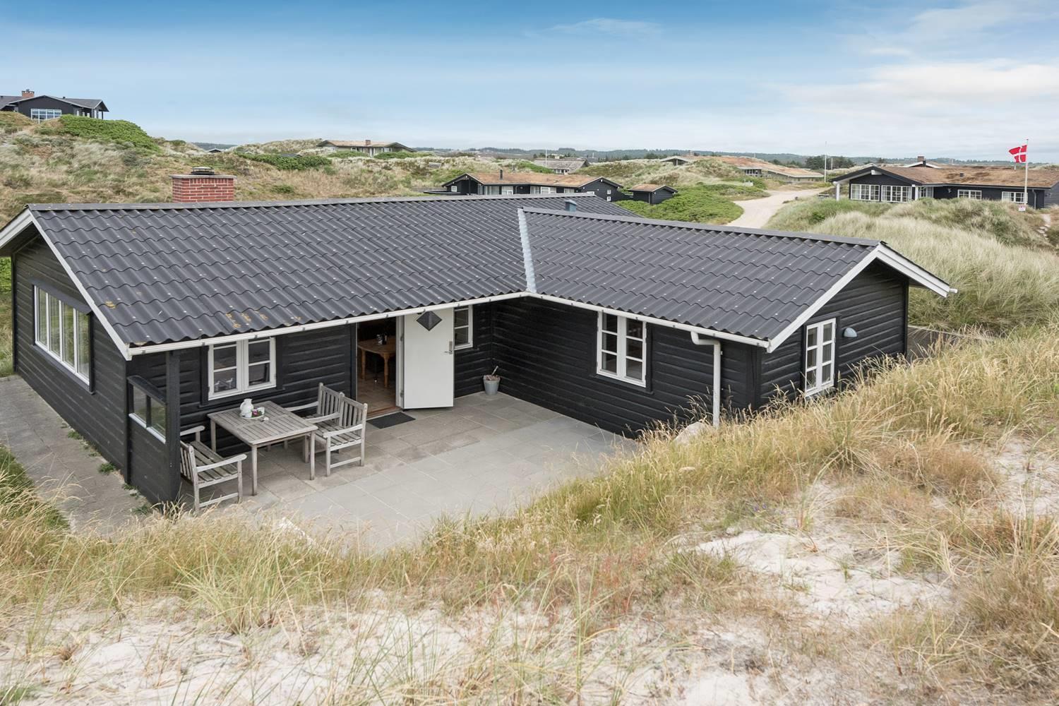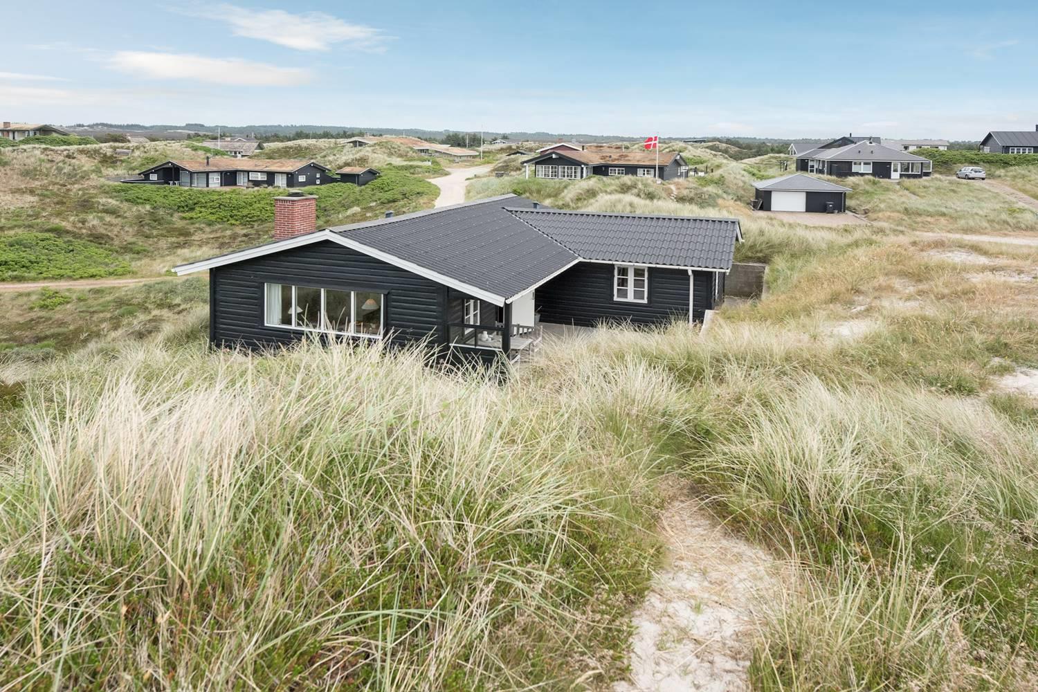 På en fantastisk højtliggende klitgrund med pragtfuld udsigt over stort klitområde og helt for sig selv ligger dette lyst og velindrettede feriehus. Feriehuset er flot møbleret og fremstår overalt lyst og venligt. Flot køkken som ligger i åben forbindelse med stuen med brændeovn. Dejligt badeværelse med adgang til sauna. Her er virkeligt et feriehus som emmer af hygge. På grunden er der trappe opgang til mindre udkigs post, hvor den unikke udsigt kan nydes.