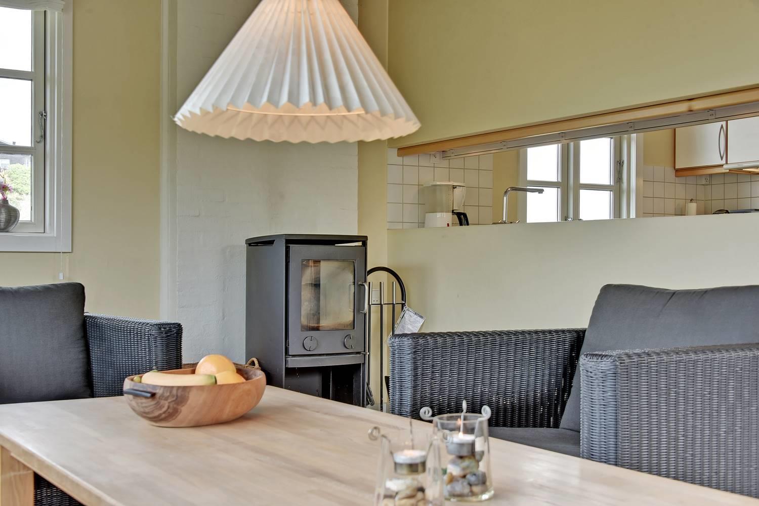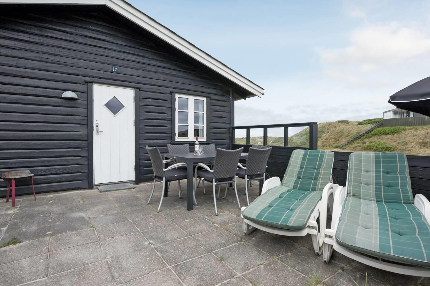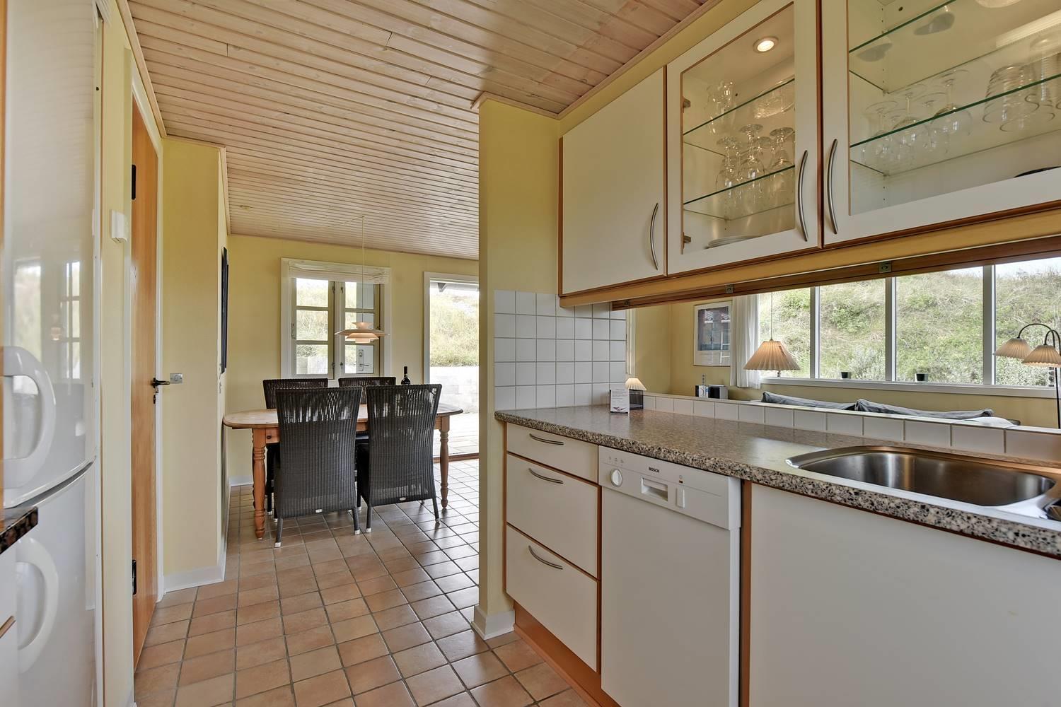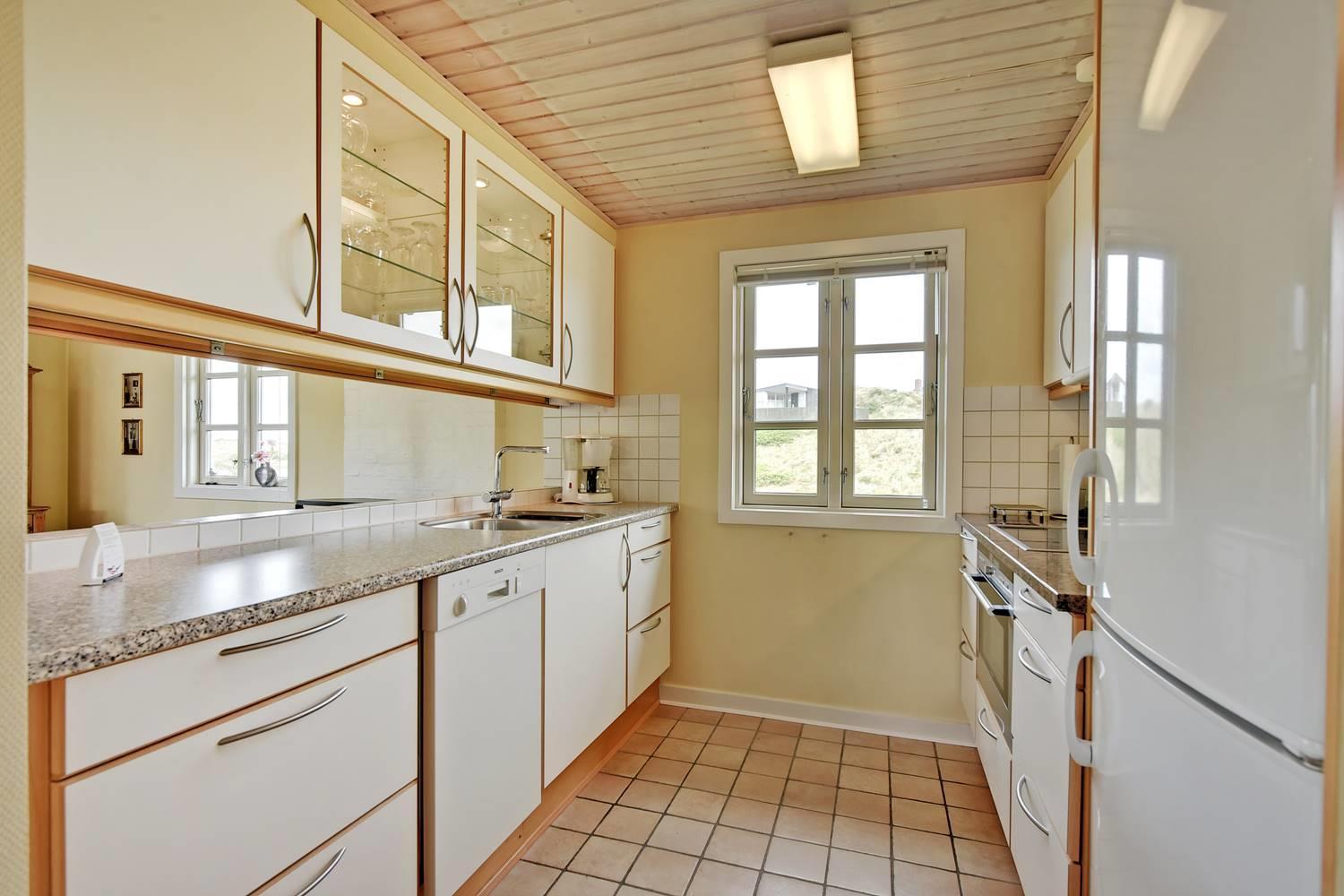 På en fantastisk højtliggende klitgrund med pragtfuld udsigt over stort klitområde og helt for sig selv ligger dette lyst og velindrettede feriehus. Feriehuset er flot møbleret og fremstår overalt lyst og venligt. Flot køkken som ligger i åben forbindelse med stuen med brændeovn. Dejligt badeværelse med adgang til sauna. Her er virkeligt et feriehus som emmer af hygge. På grunden er der trappe opgang til mindre udkigs post, hvor den unikke udsigt kan nydes.