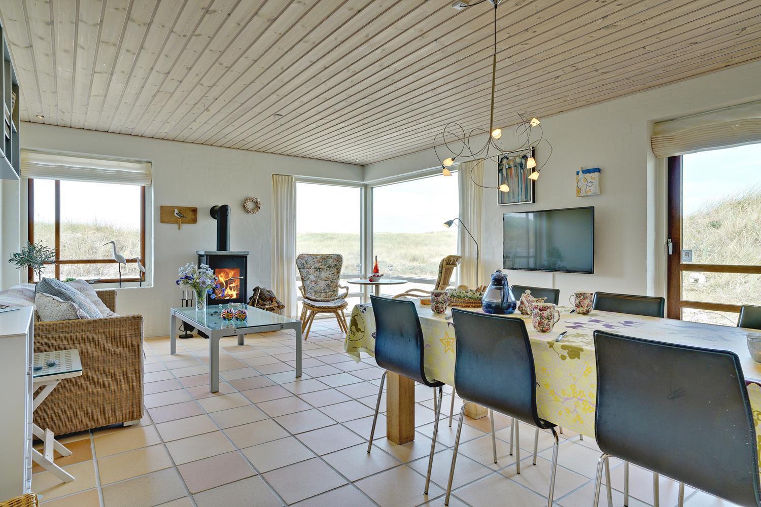 Midt i kuperet, ugeneret klitlandskab og i første klitrække find du dette skønne og meget velholdte feriehus. Huset er overalt renoveret i bedste materialer og fremstår indbydende og i yderst velholdt stand. Lækkert badeværelse med badekar. Stor stue hvorfra den gode udsigt over klitterne kan nydes. Det flotte køkken ligger i forlængelse af stuen. 2 gode soveværelse med god skabsplads. Fremhæves skal også den gode garderobeplads i husets bryggers og gangareal. Stor lukket og læfuld terrasse som er velegnet til familien med hund. Et pragtfuld feriehus med et stenkast til Vesterhavets bølger og få minutter til Henne Strands byliv.
