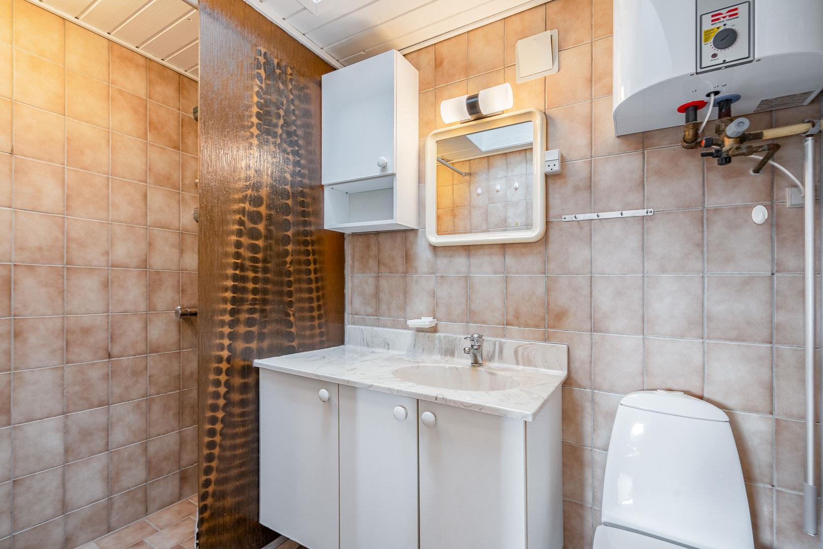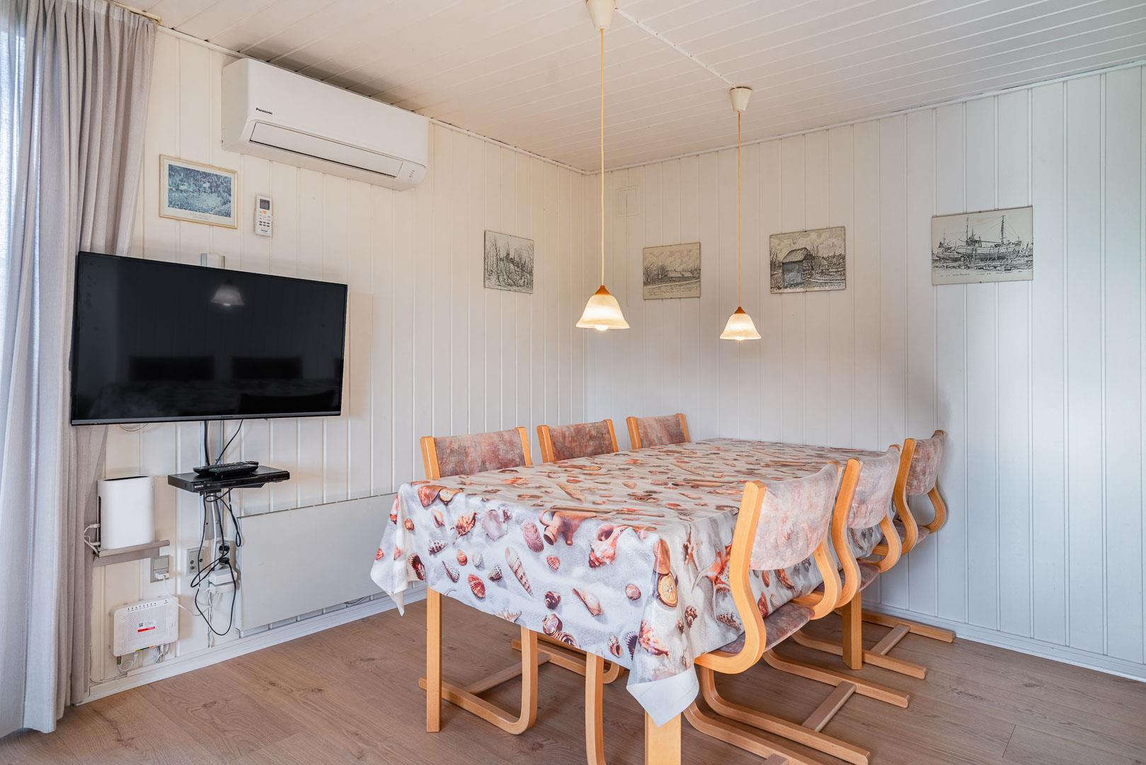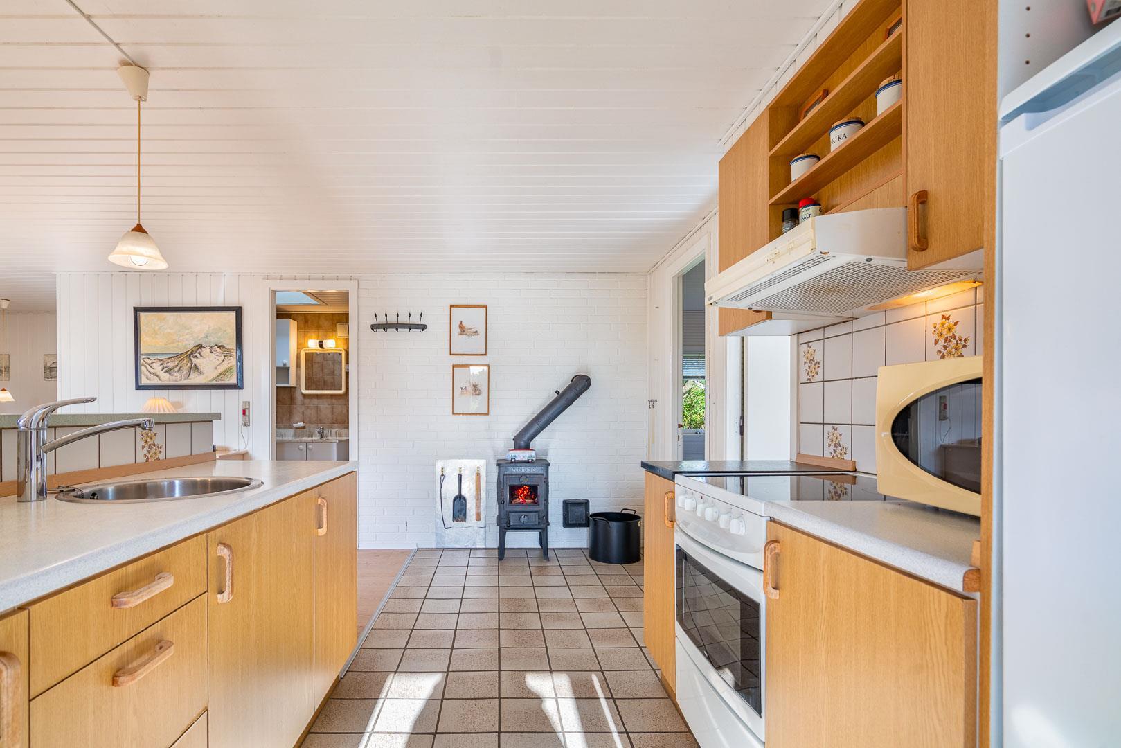 Meget velholdt, lyst og hyggeligt feriehus beliggende på en naturgrund tæt ved byen - men alligevel ugenert. Køkkenet er kombineret med stuen som er indrettet med gode møbler. Godt badeværelse med klinker og 2 gode soverum. Til huset hører dejlig lukket og læfuld terrasse.