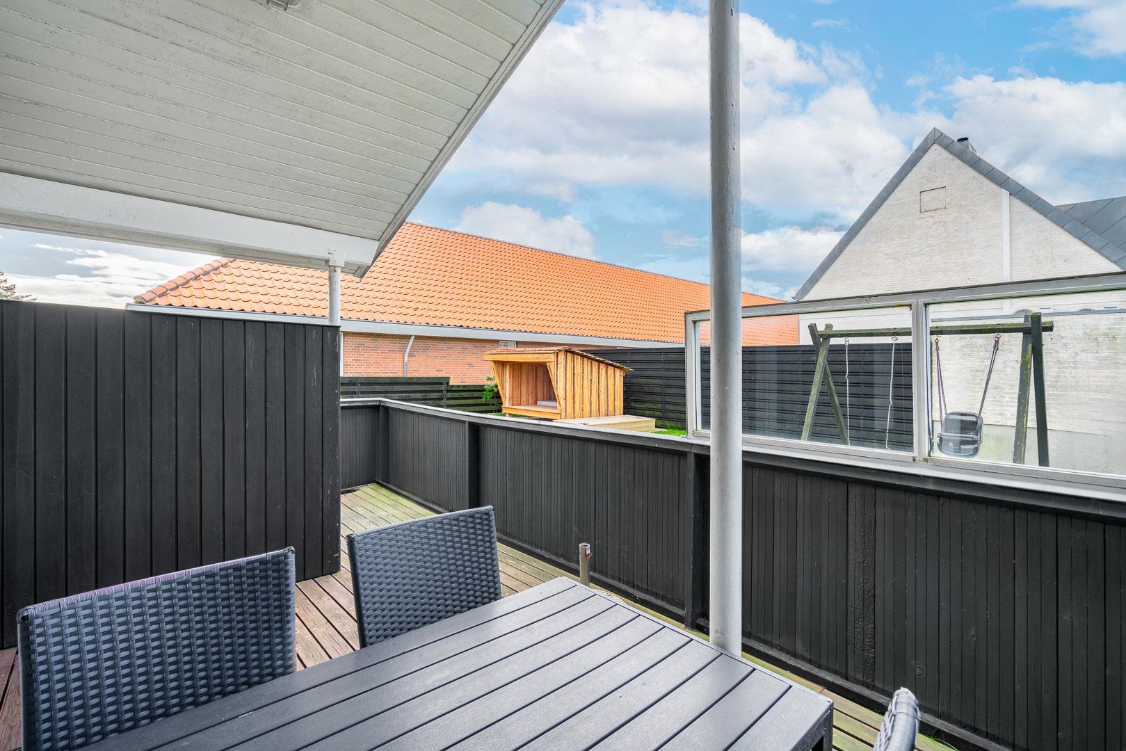 Hyggeligt og lyst feriehus tæt på Henne Strand med sauna og lækker terrasse, perfekt til en afslappende ferie i naturskønne omgivelser.