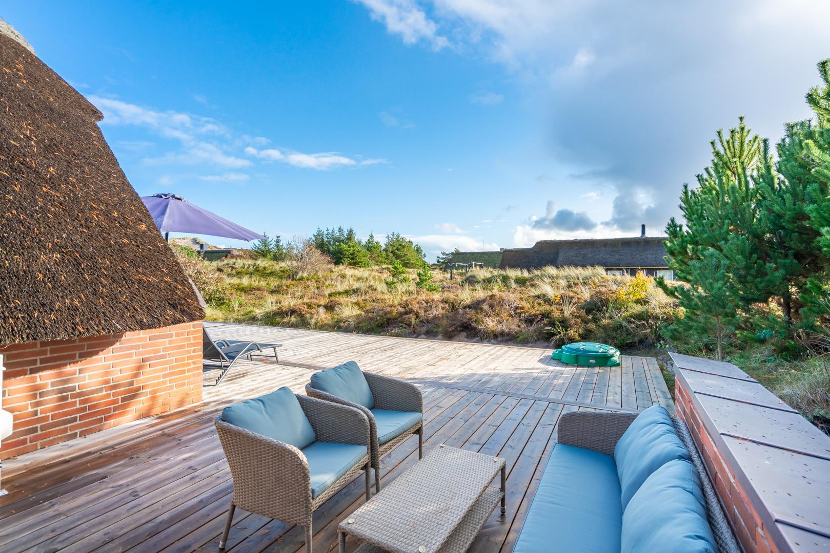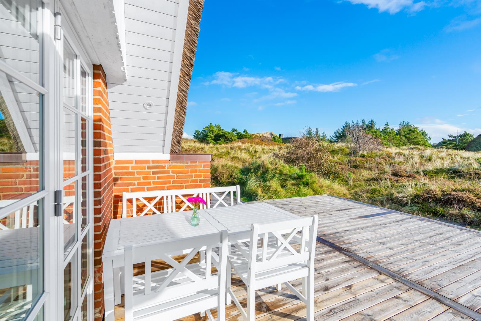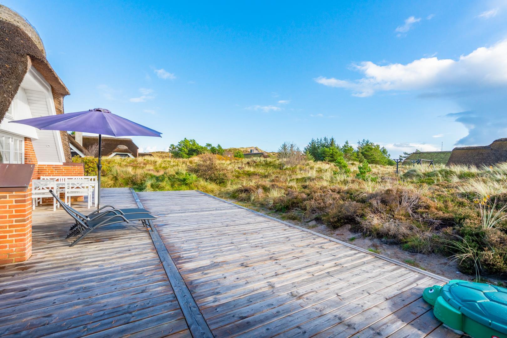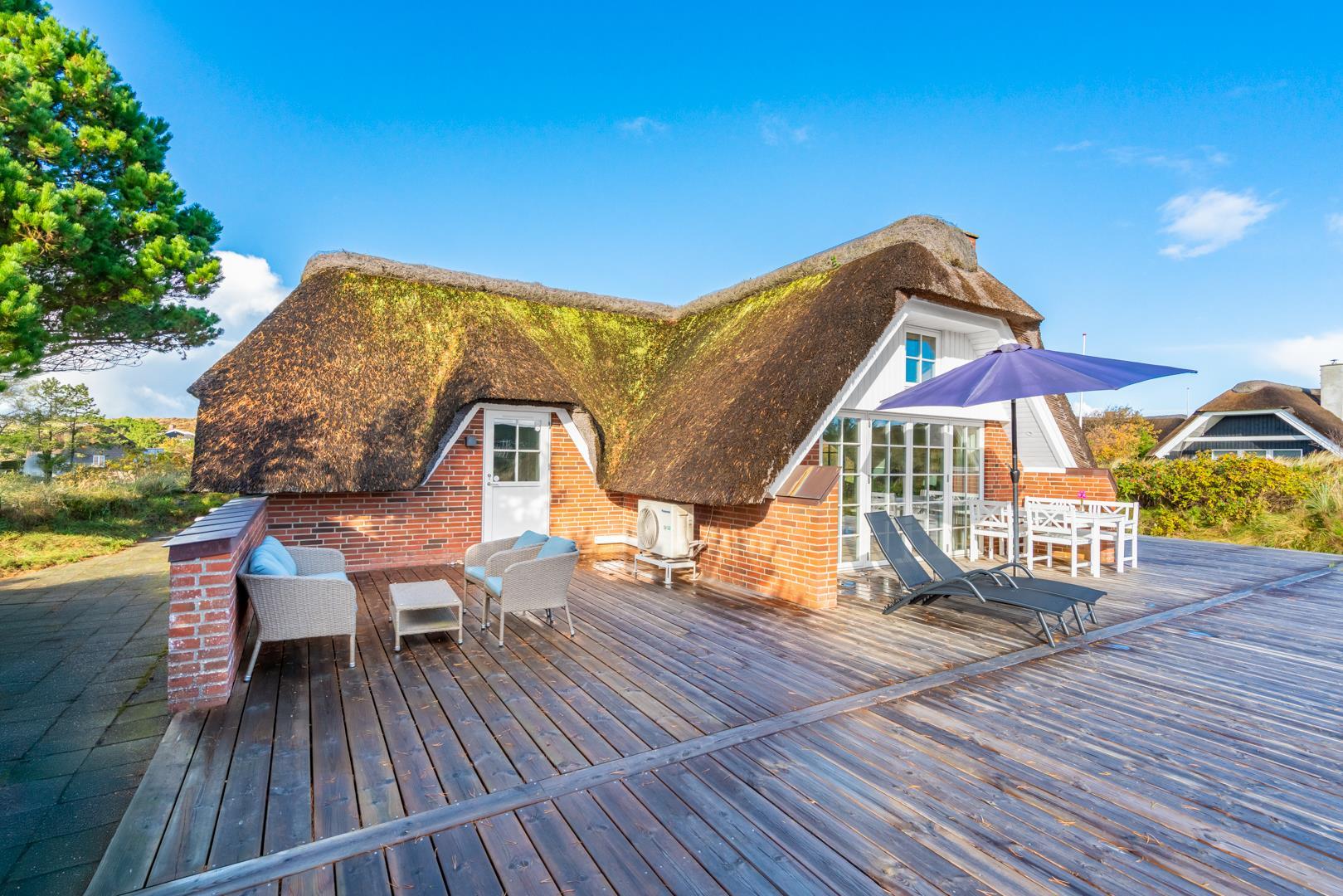 Fremhæves skal den skønne beliggenhed midt i Henne Strands kuperede klitlandskab, hvor man med en kort gåtur ikke er langt til Vesterhavets bølger eller Henne Strand livlige handelsliv. Er man til golf eller cykelture er der rig mulighed for dette i området. Her findes nogle af de bedste og udfordrende mountainbike ruter i Blåbjerg Plantage eller tag en tur på 18 hullers banen eller Par 3 banen på Henne Golfklubs skønne anlæg. Der er mange cykelstier som fører jeg rundt i naturskønne omgivelser, anbefales kan en cykeltur til Filsø. Huset er røgfrit og ungdomsgrupper ikke tilladt. Tøv ikke med at booke dette personligt indrettede feriehus ved Henne Strand.