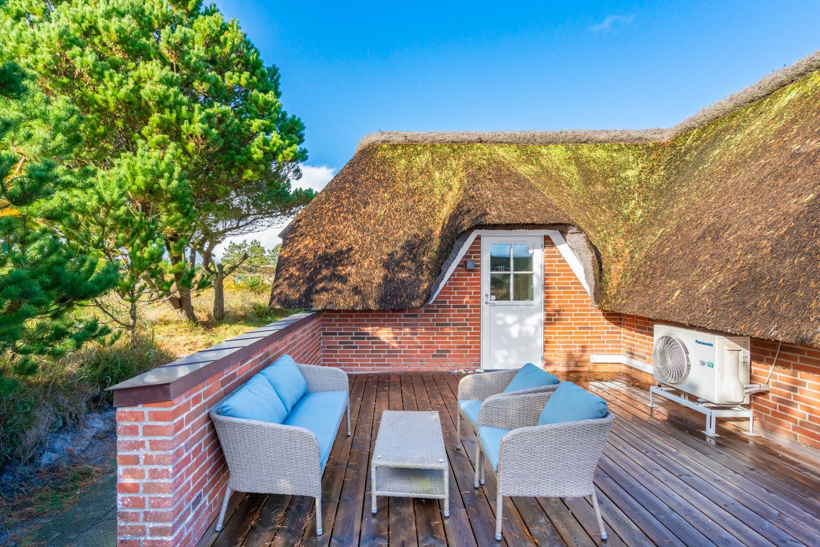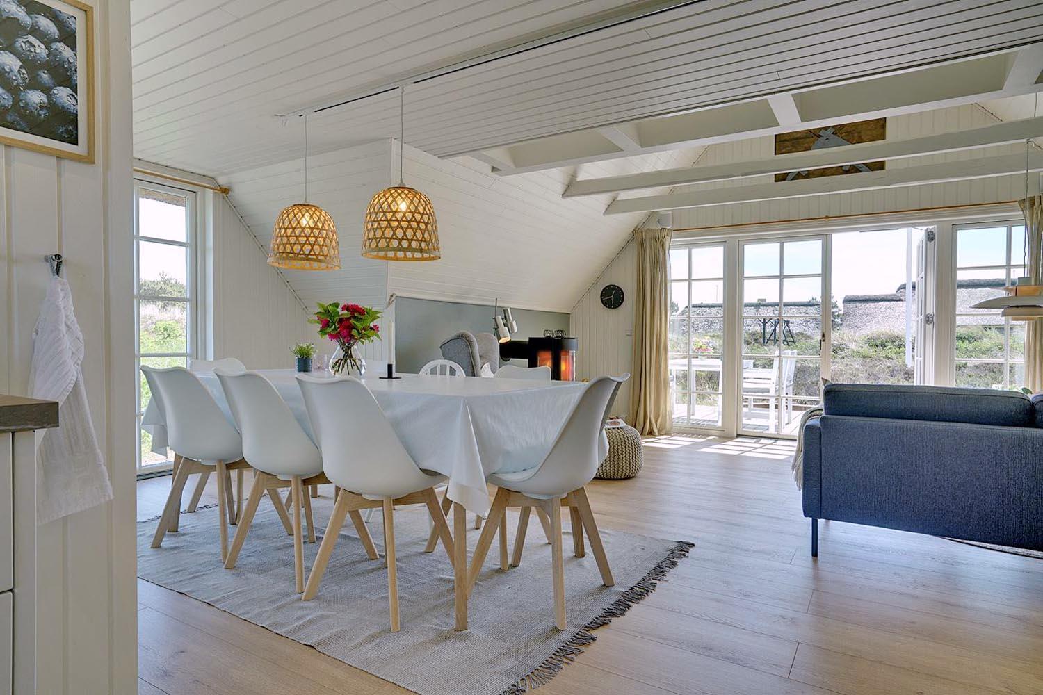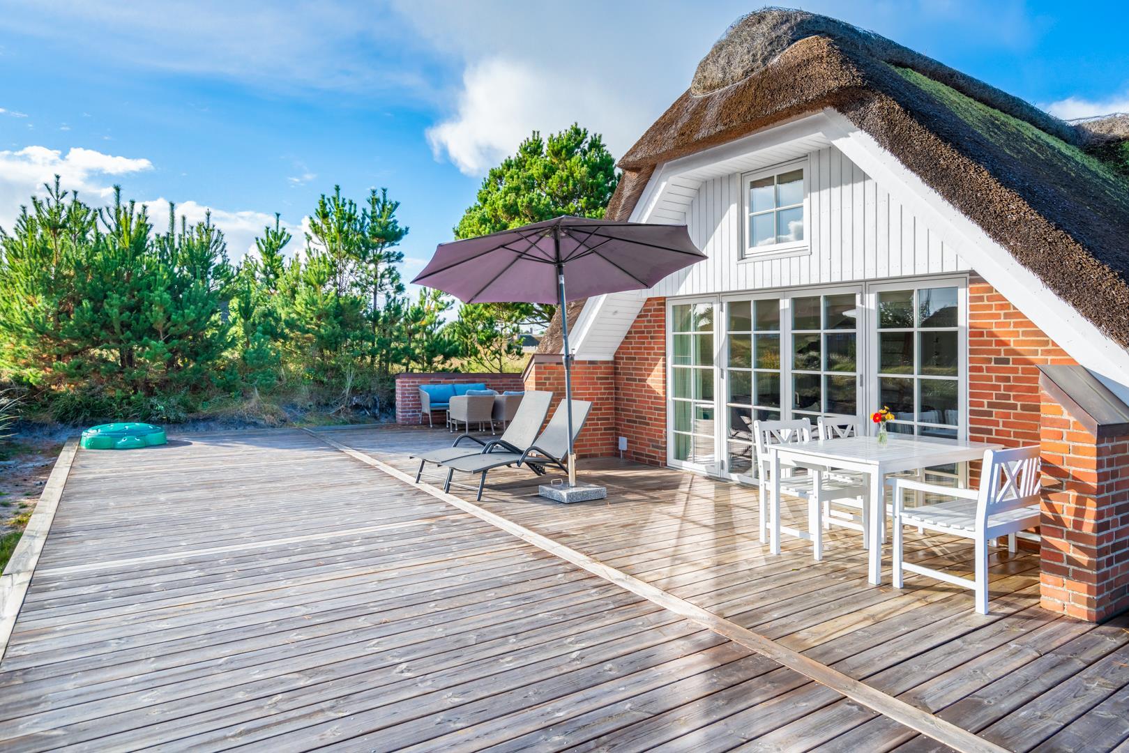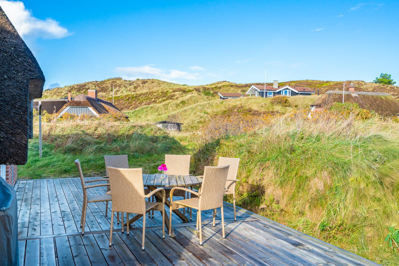 Fremhæves skal den skønne beliggenhed midt i Henne Strands kuperede klitlandskab, hvor man med en kort gåtur ikke er langt til Vesterhavets bølger eller Henne Strand livlige handelsliv. Er man til golf eller cykelture er der rig mulighed for dette i området. Her findes nogle af de bedste og udfordrende mountainbike ruter i Blåbjerg Plantage eller tag en tur på 18 hullers banen eller Par 3 banen på Henne Golfklubs skønne anlæg. Der er mange cykelstier som fører jeg rundt i naturskønne omgivelser, anbefales kan en cykeltur til Filsø. Huset er røgfrit og ungdomsgrupper ikke tilladt. Tøv ikke med at booke dette personligt indrettede feriehus ved Henne Strand.