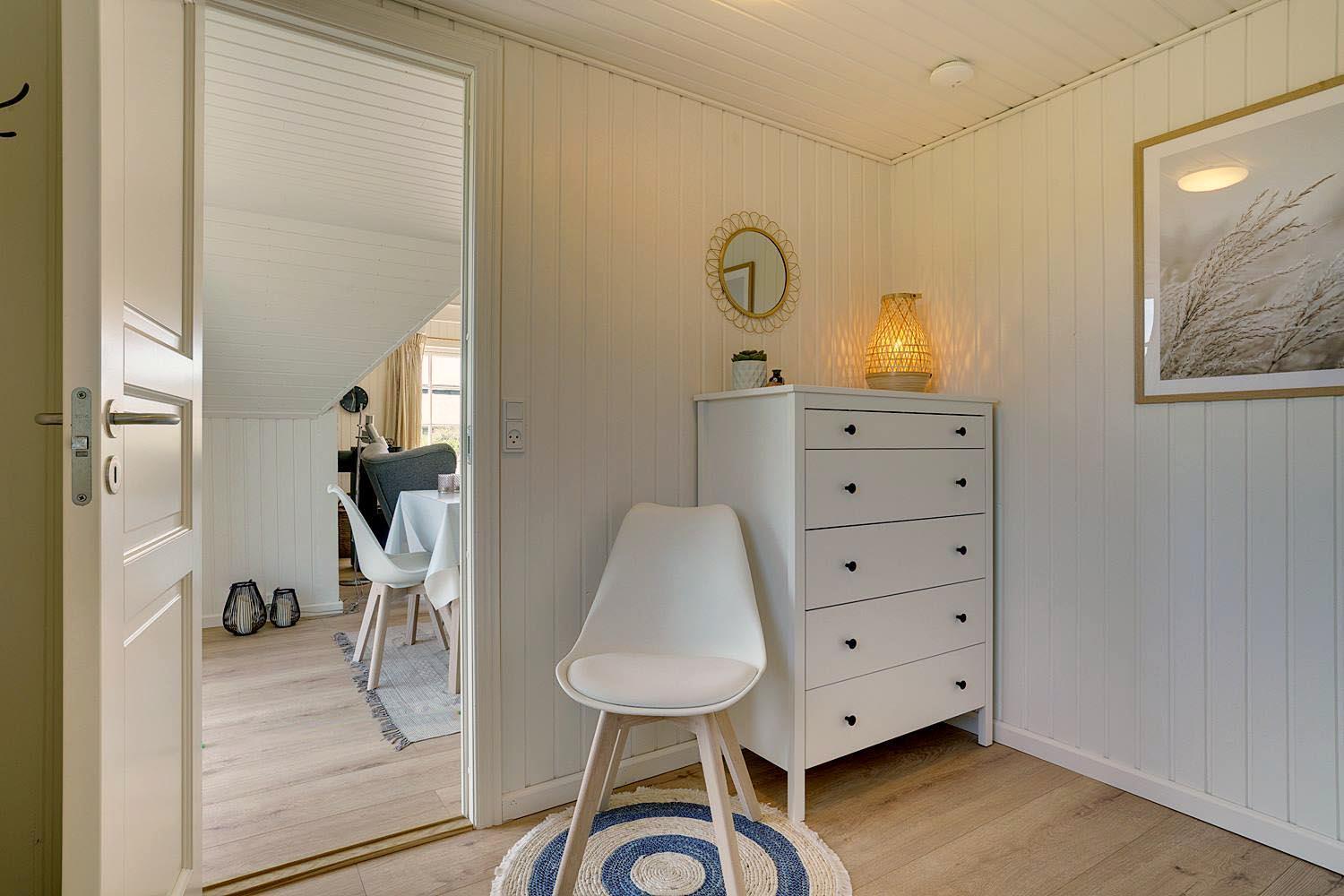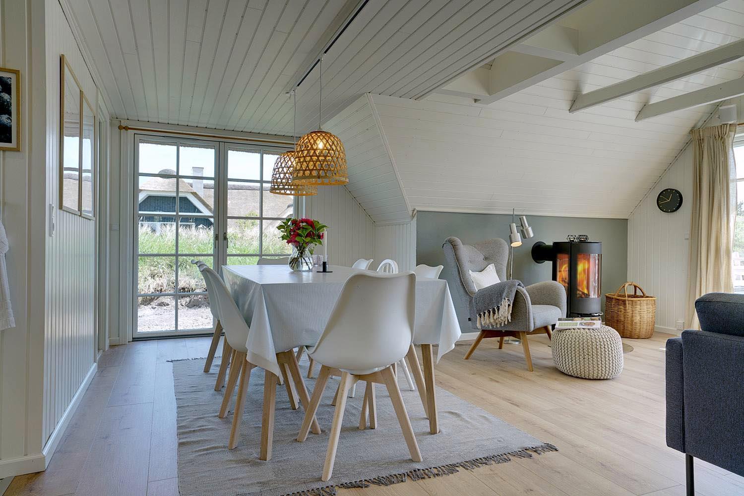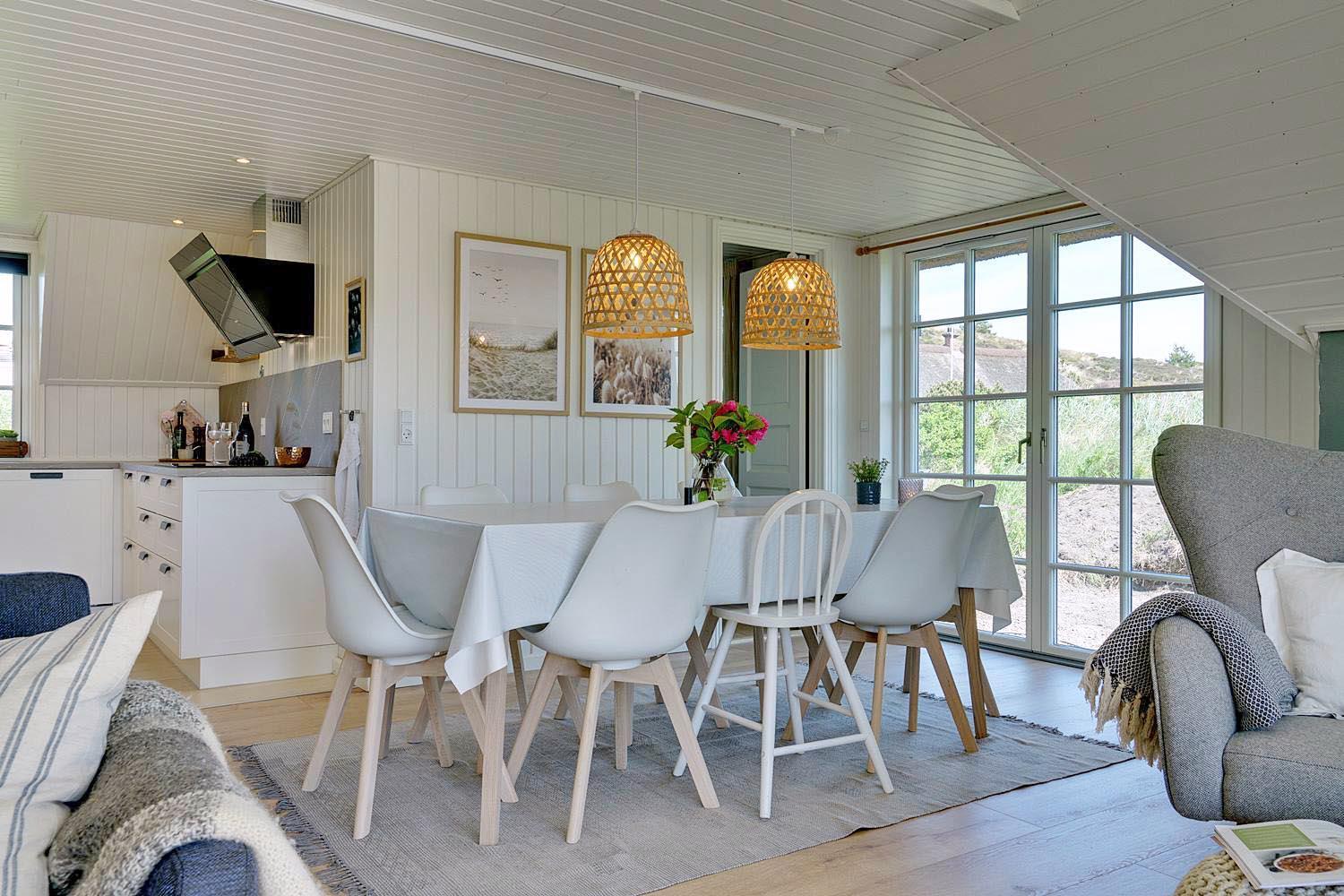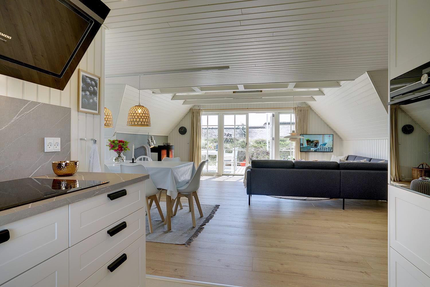 I 2021 blev dette feriehus på Multebærvej 1 Henne Strand total renoveret. Huset fremstår overalt hyggeligt og oser af afslapning og ferie. Det flotte køkken ligger i åben forbindelse med stuen som er indrettet med gode komfortable møbler. Stuen har stort vindues parti som giver et godt lys ind i stuen, herfra er der udgang til ugenerede og dejlig terrasser mod syd og øst. Huset byder på 3 gode soveværelser med 1 dobbelt seng, køje rum til børnene og en dobbelt sovesofa.