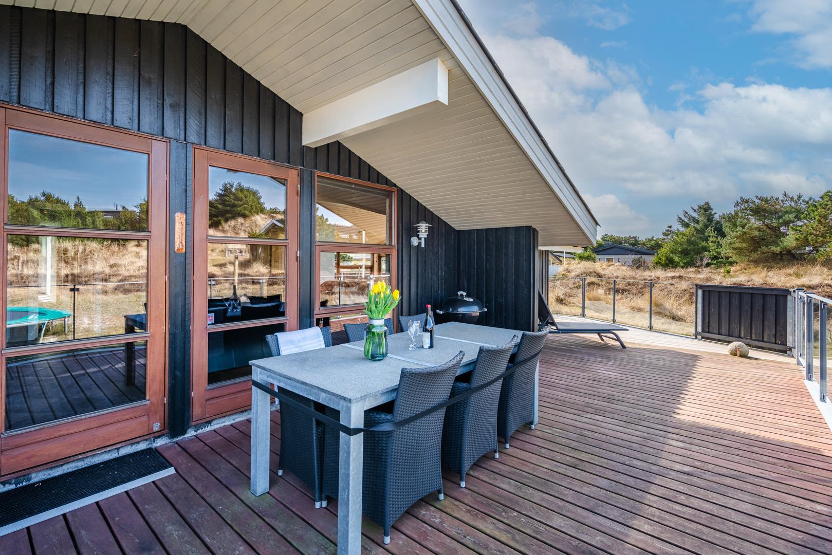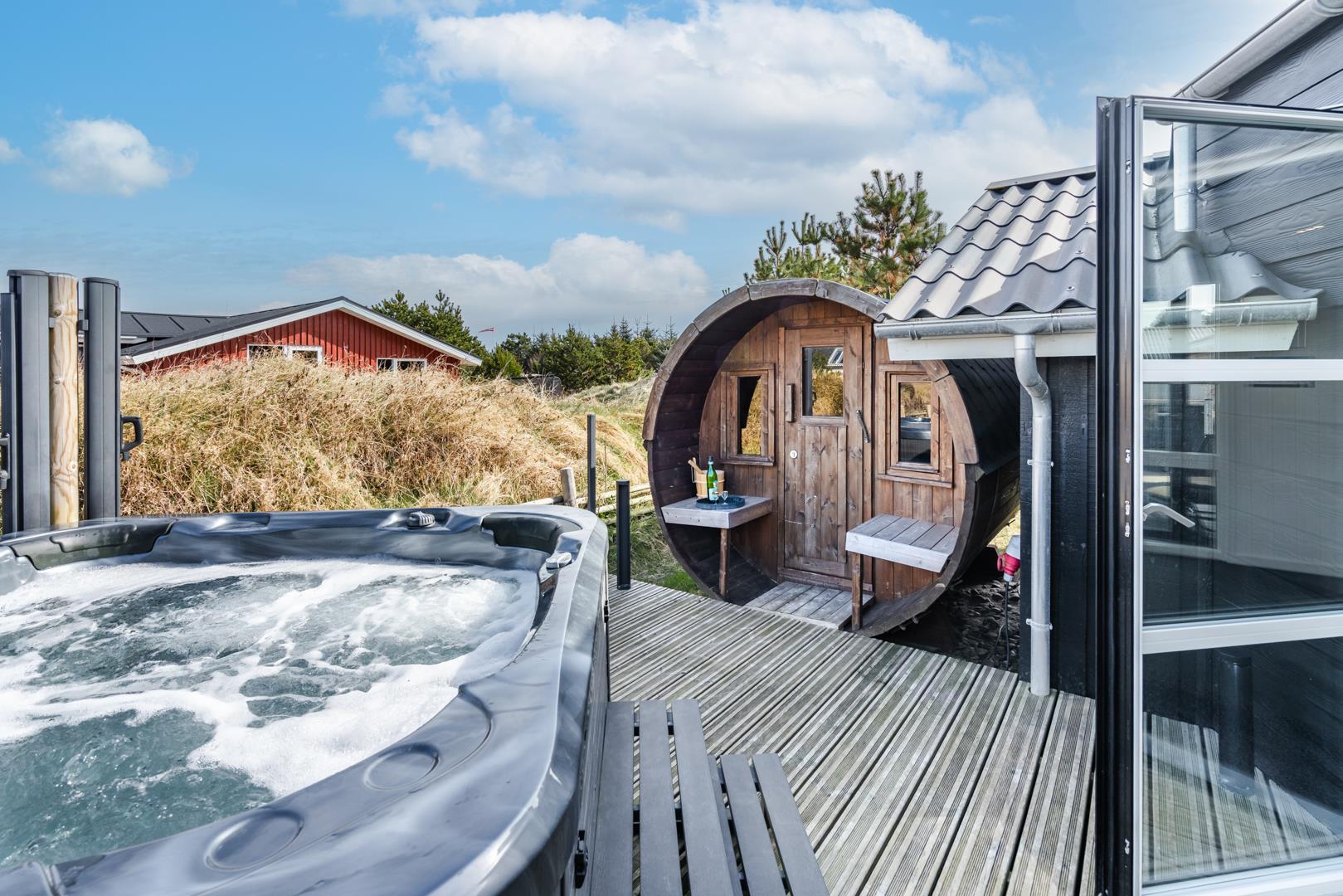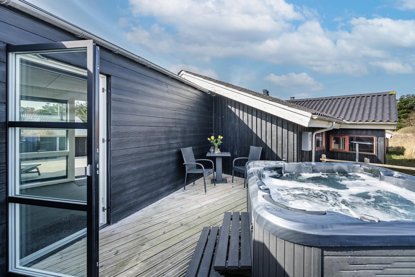 Rummeligt feriehus med spa, sauna og afskærmet terrasse tæt på Henne Strand.
