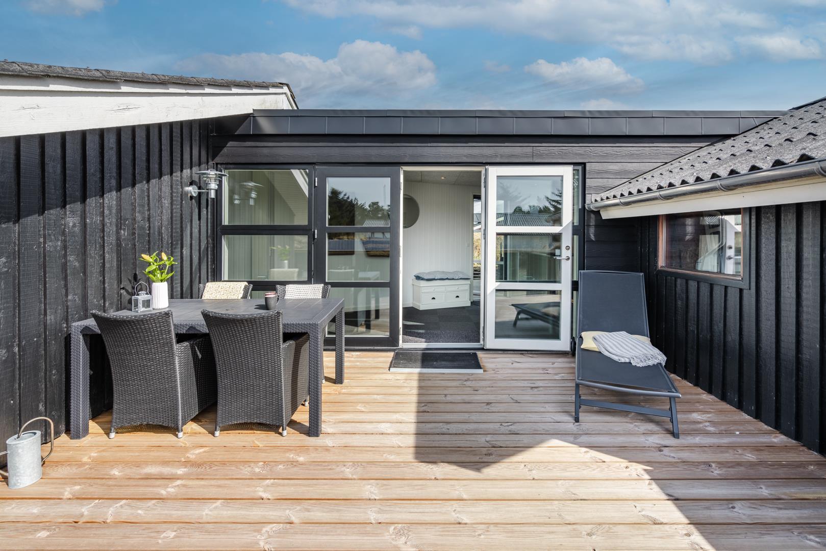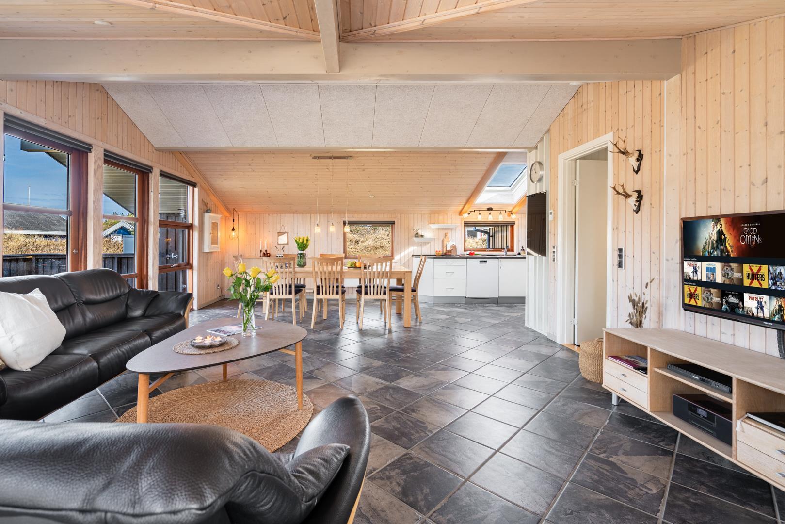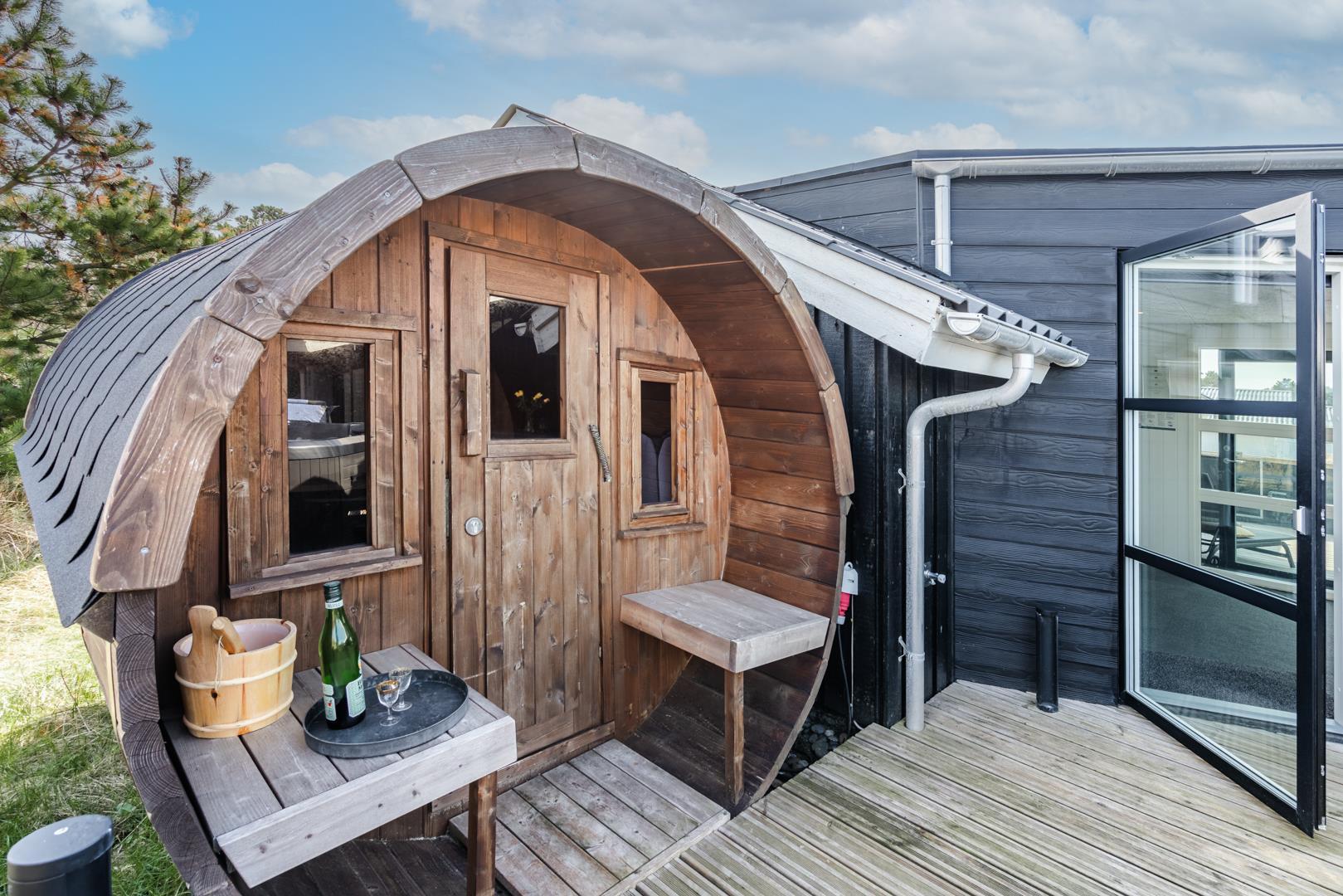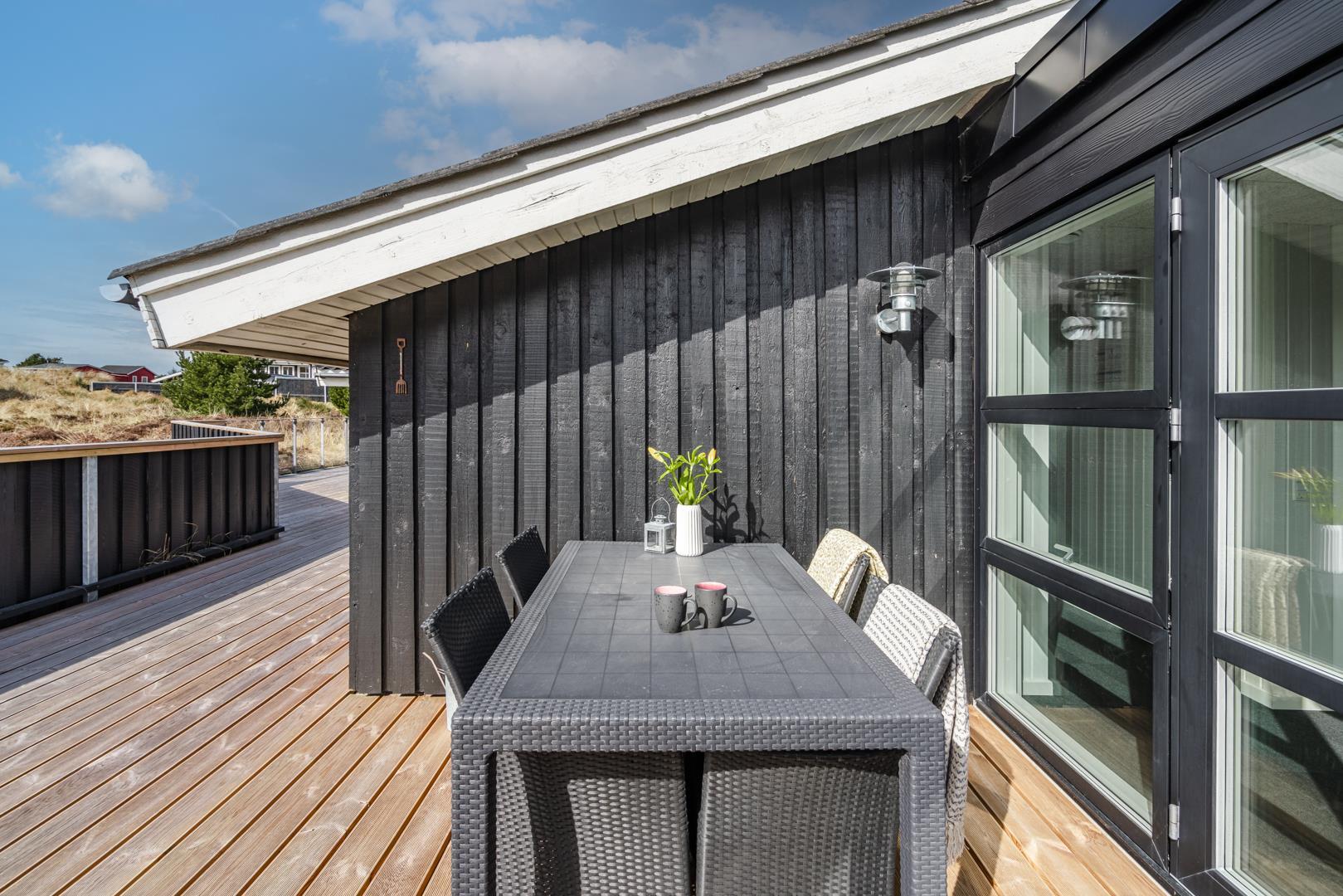 Rummeligt feriehus med spa, sauna og afskærmet terrasse tæt på Henne Strand.