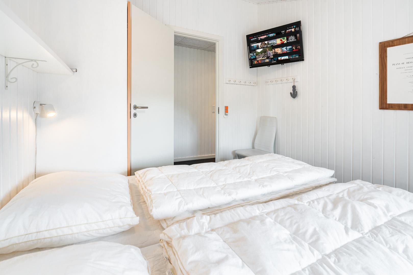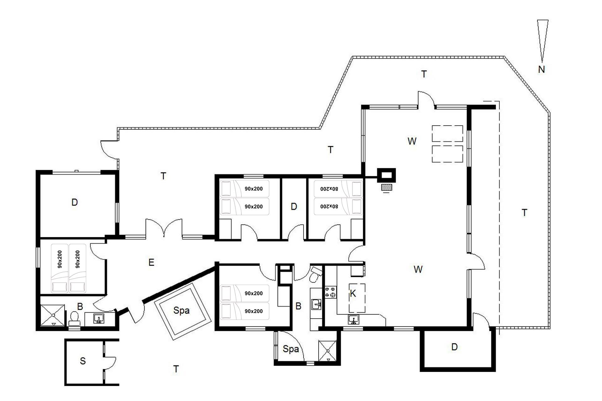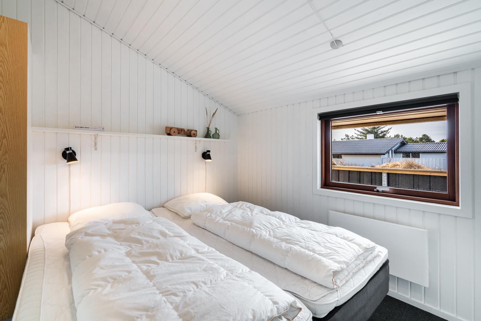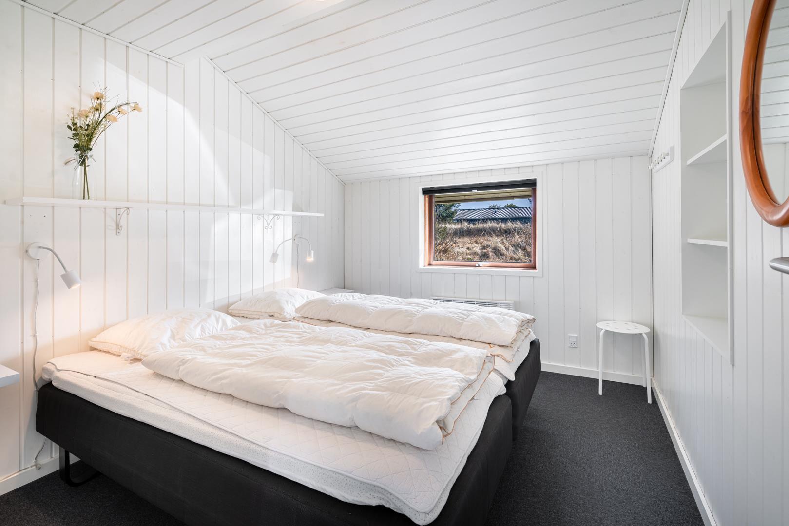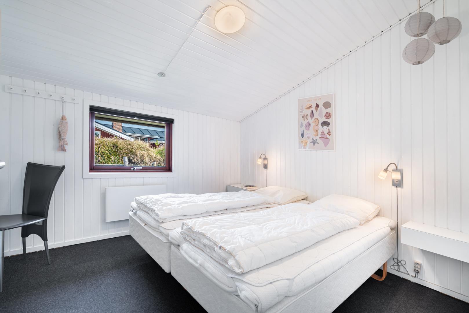 Sengestørrelse: 3 dobbeltsenge med 2 madrasser 90 x 200 cm + 1 dobbeltseng med 2 madrasser 80 x 200 cm.