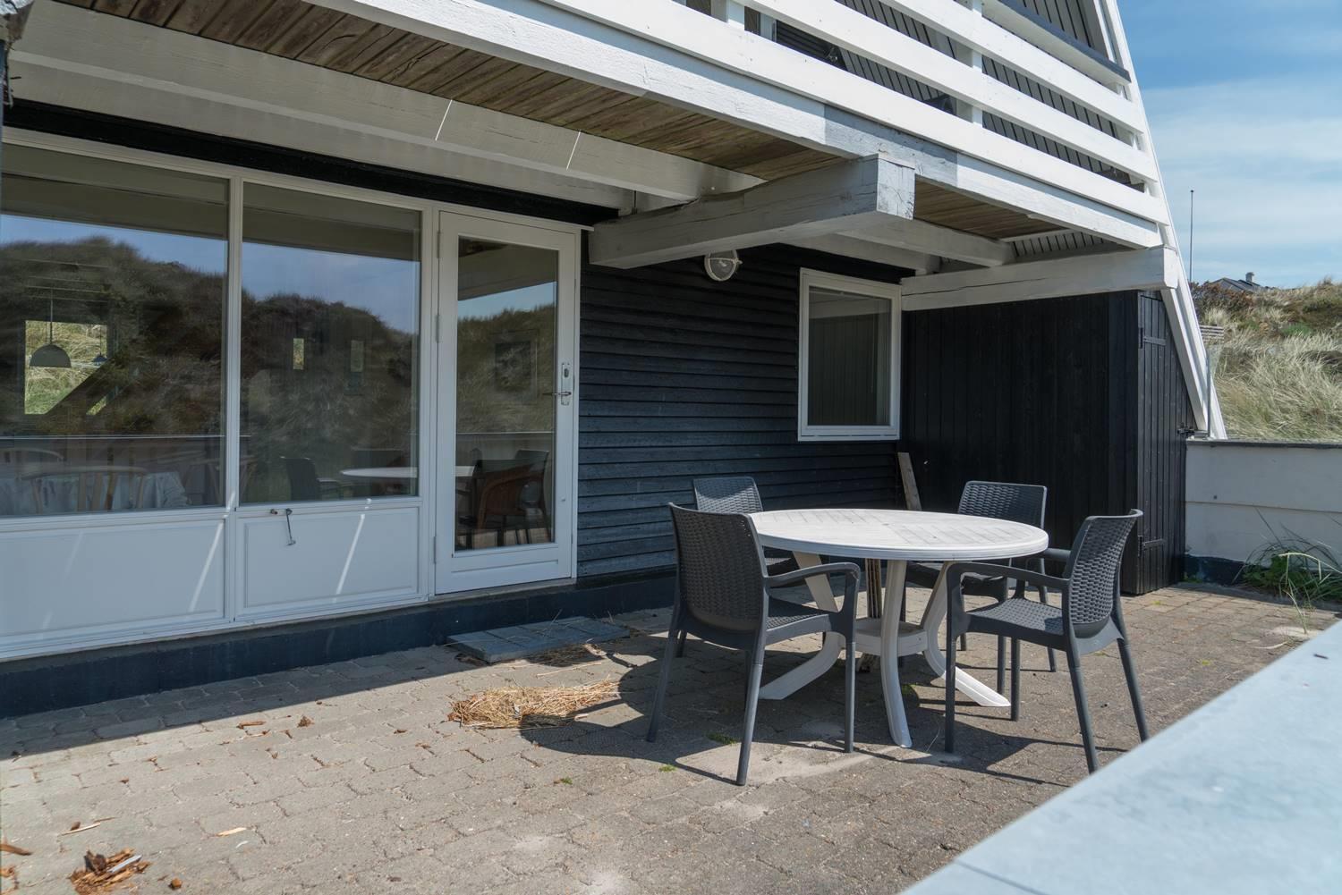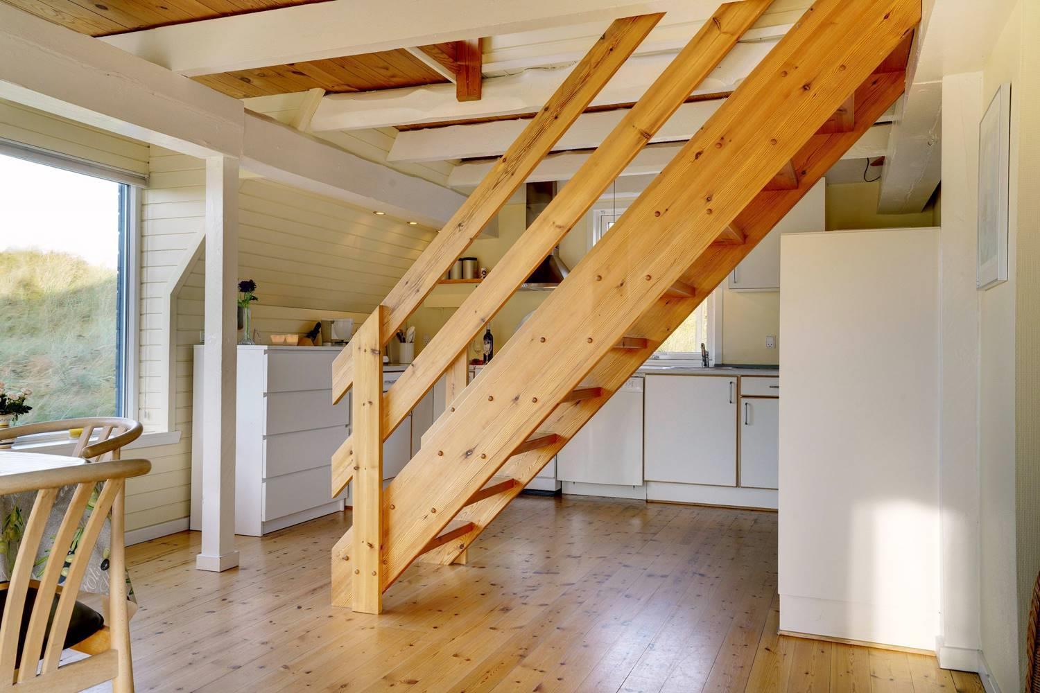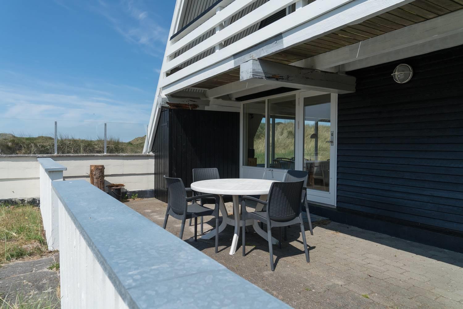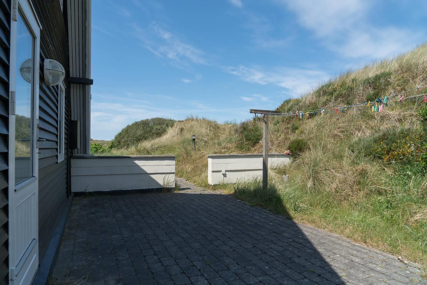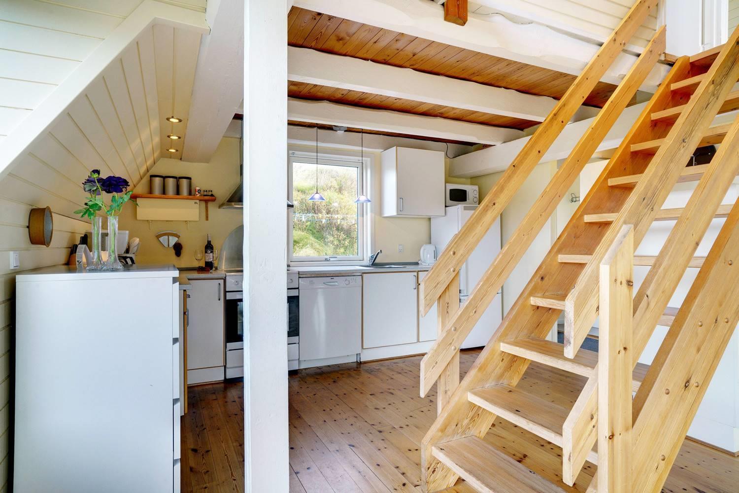 På en pragtfuld kuperet og ugeneret klitgrund fremme ved fredningslinien ligger dette feriehus med udnyttet 1. sal. Prøv at sidde i den hyggelige stue på 1. sal og nyd den pragtfulde udsigt udover klitterne. Køkkenet er i åben forbindelse med den lyse spiseafdeling hvorfra der også er skøn udsigt.