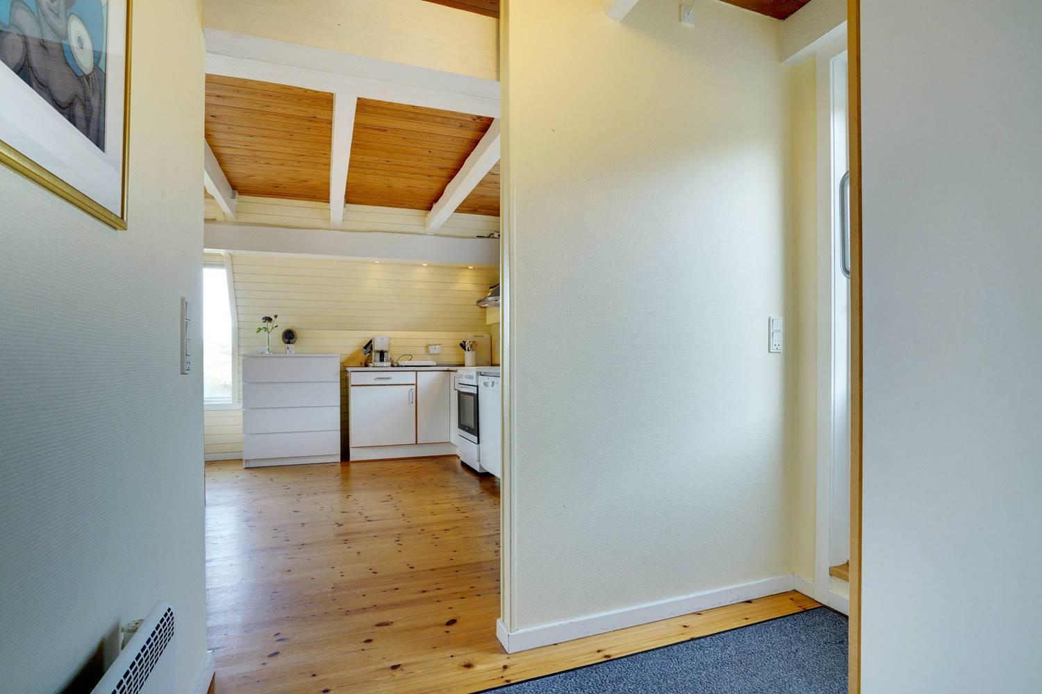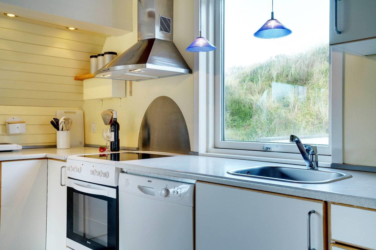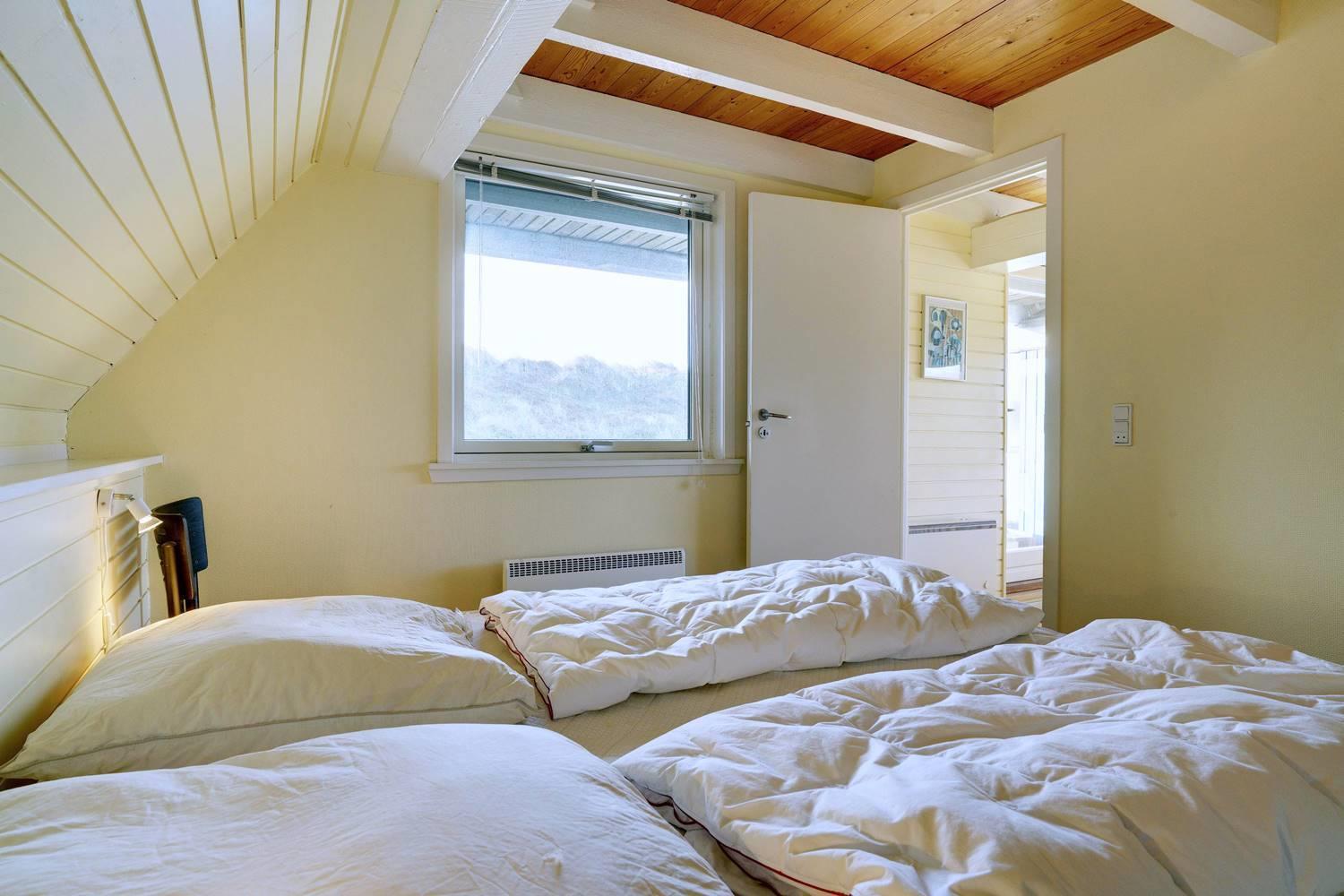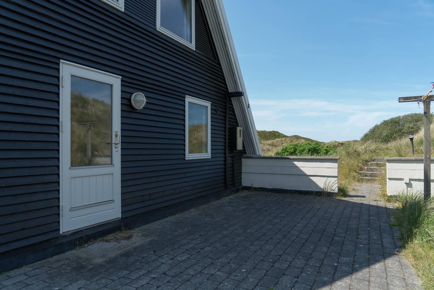 På en pragtfuld kuperet og ugeneret klitgrund fremme ved fredningslinien ligger dette feriehus med udnyttet 1. sal. Prøv at sidde i den hyggelige stue på 1. sal og nyd den pragtfulde udsigt udover klitterne. Køkkenet er i åben forbindelse med den lyse spiseafdeling hvorfra der også er skøn udsigt.