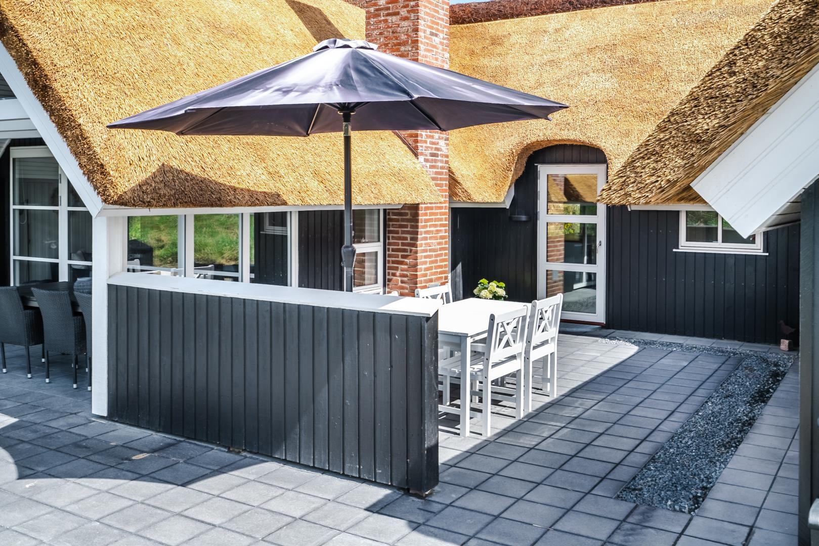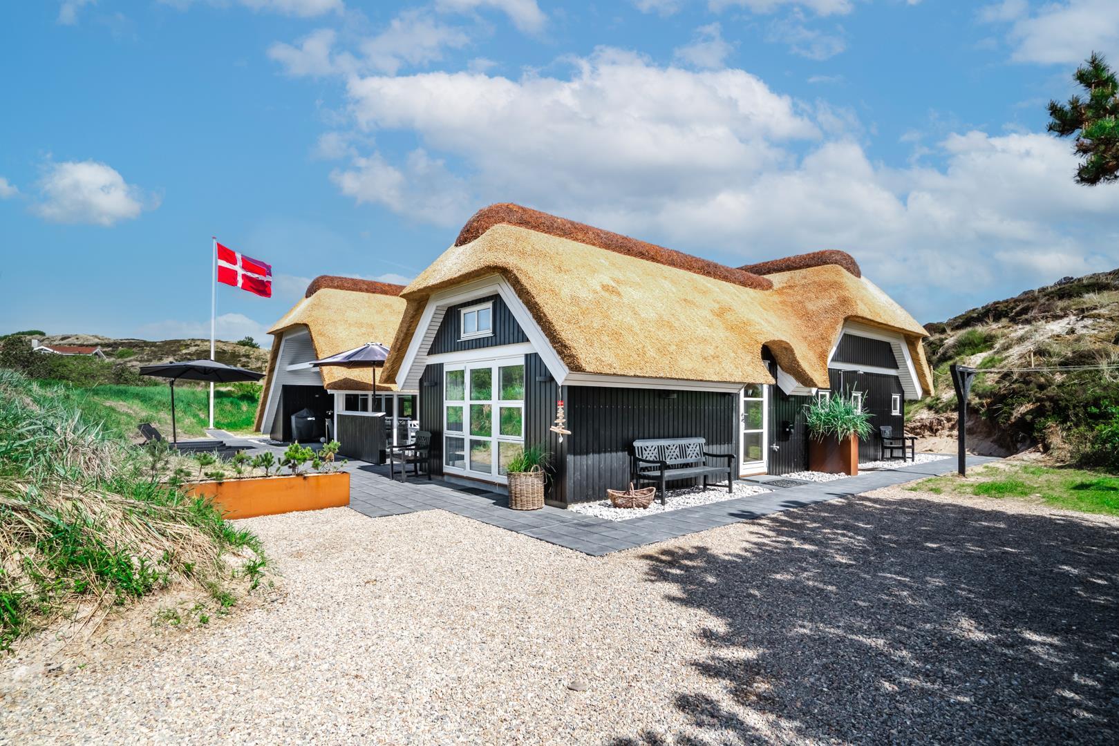 Ferien får fantastiske rammer, hvis I booker dette stråtækte sommerhus, der ligger idyllisk placeret i Henne Strands klitlandskab.