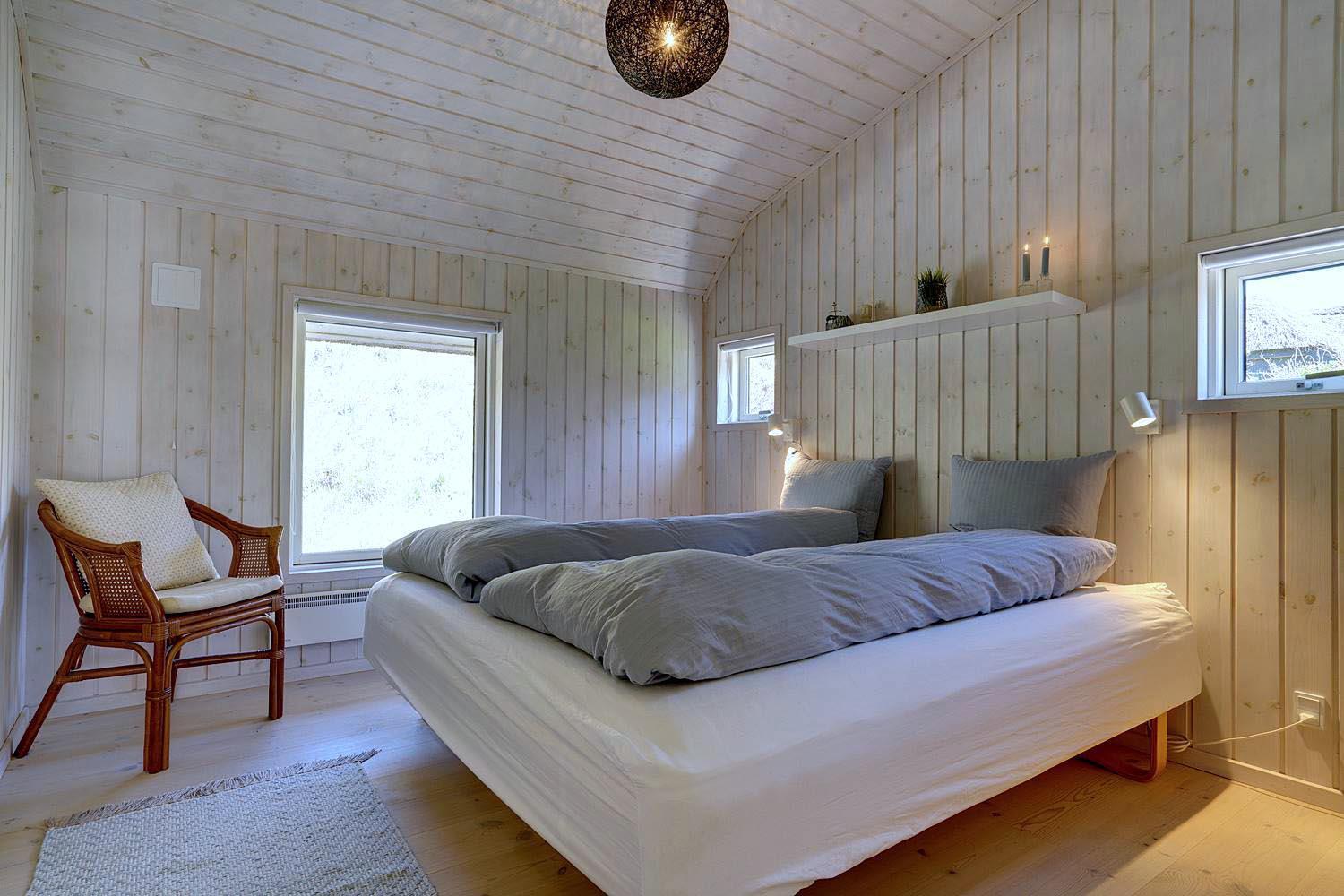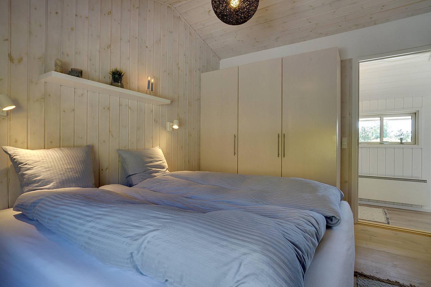 Her kan I nyde ferien i et helt lækkert sommerhus med blandt andet sauna, udendørsbruser og plads til seks personer, der alle kommer til at sove behageligt i nye (2023) dobbeltsenge - i det ene er der kontinentalseng.
