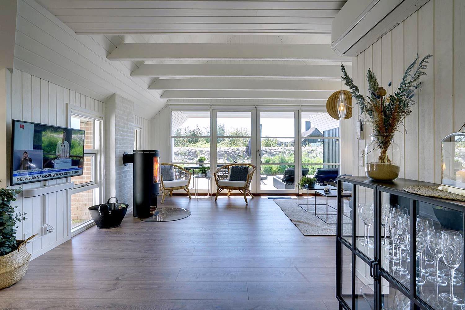 Sidstnævnte terrasse er ideel til alt fra kortspil og koldskål om eftermiddagen til grillmiddag og gin tonics om aftenen, og der er direkte adgang hertil fra husets store opholdsrum.