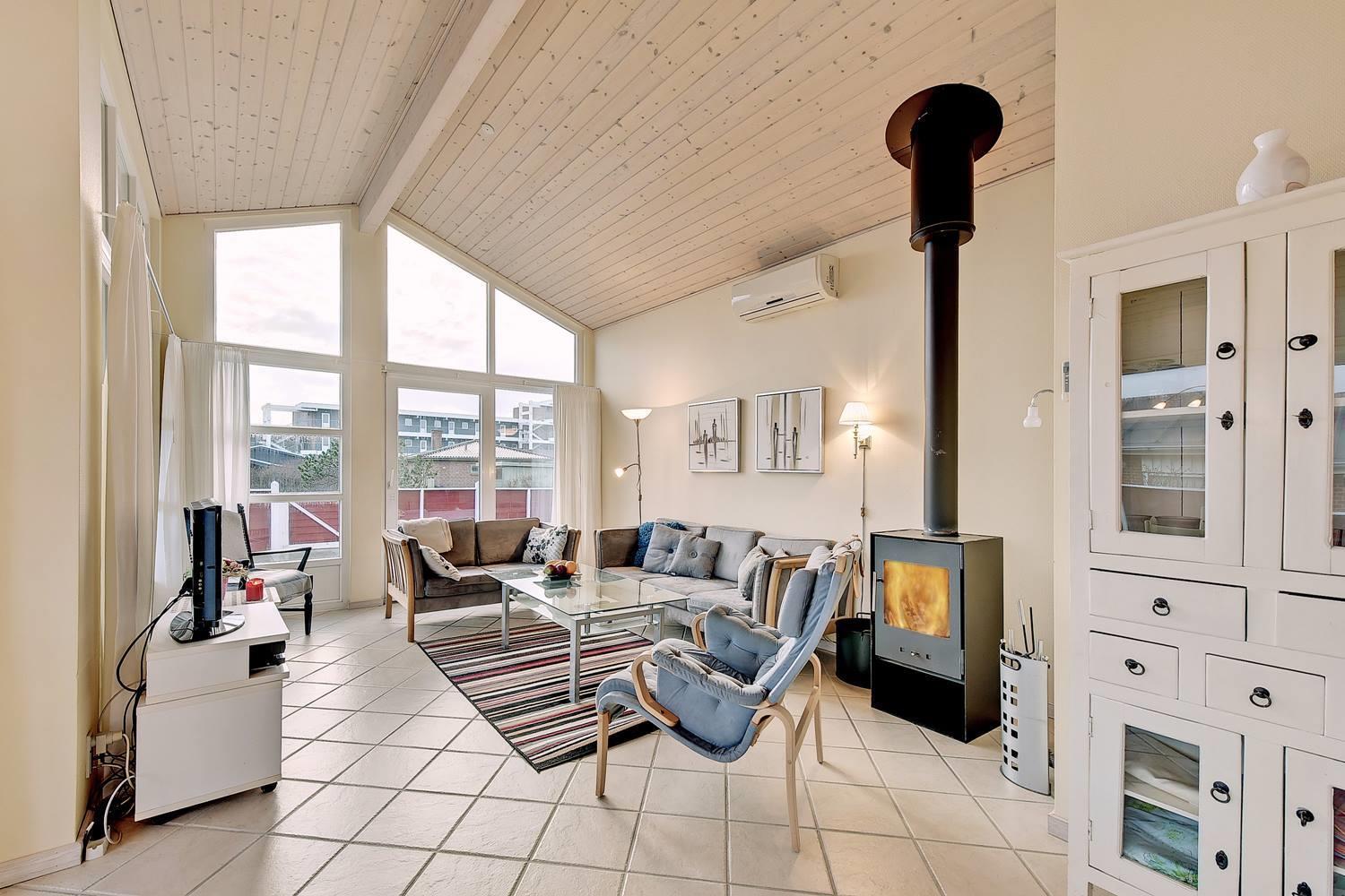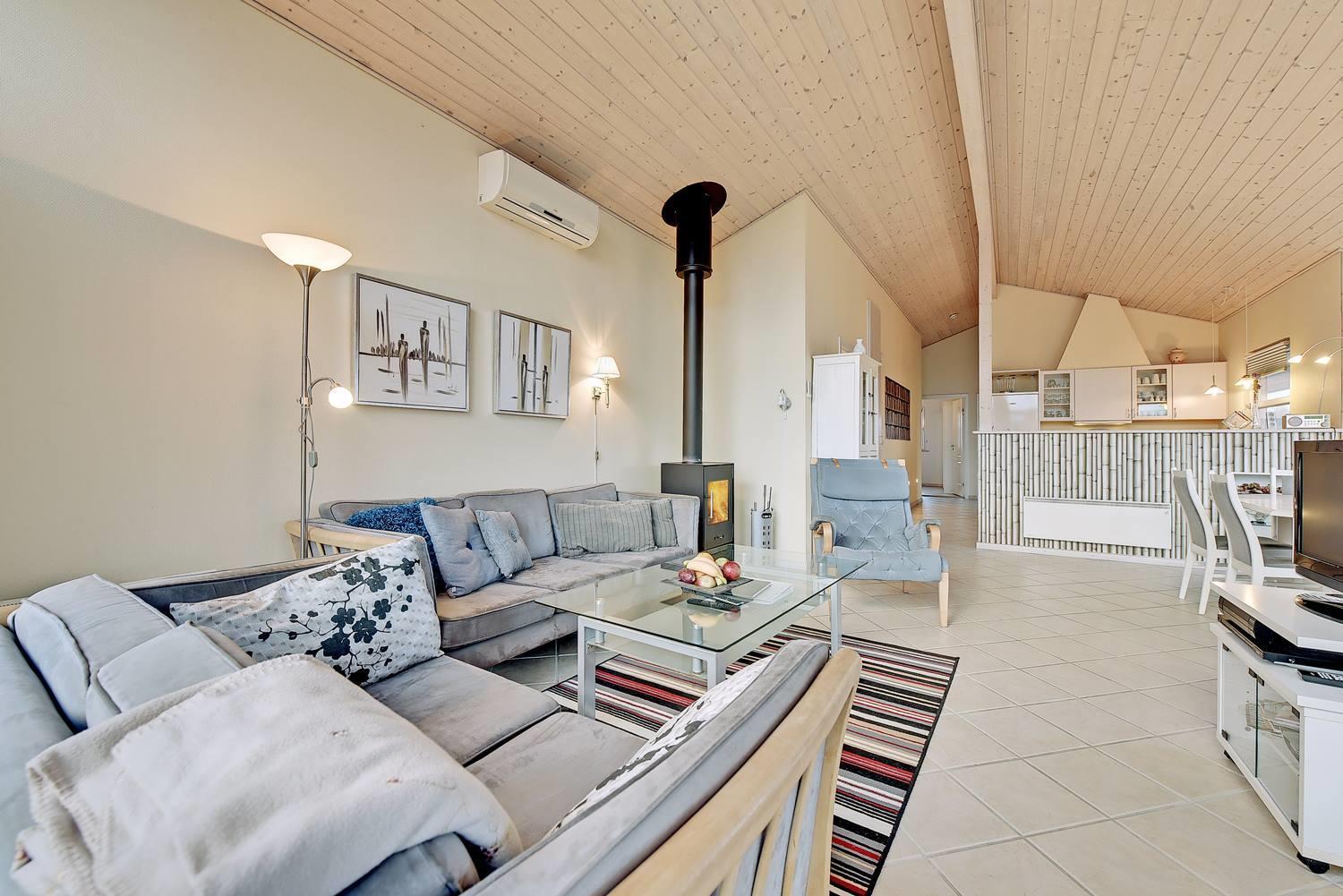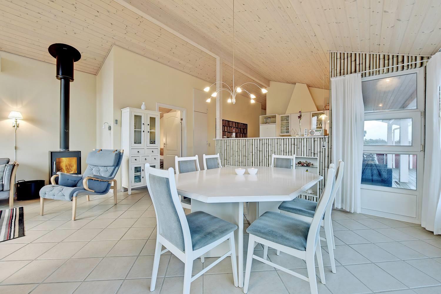 Husets veludstyrede køkken ligger i åben forbindelse med den lyse og velmøblerede stue. Her kan du nyde fælles måltider og slappe af i de komfortable møbler efter en dag fyldt med oplevelser. Den åbne planløsning skaber en indbydende atmosfære og gør huset til et naturligt samlingspunkt.