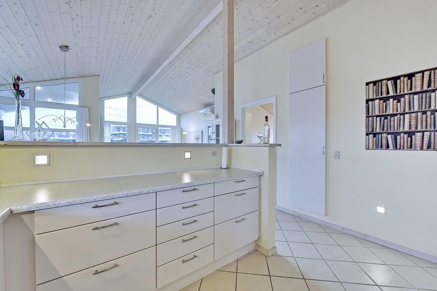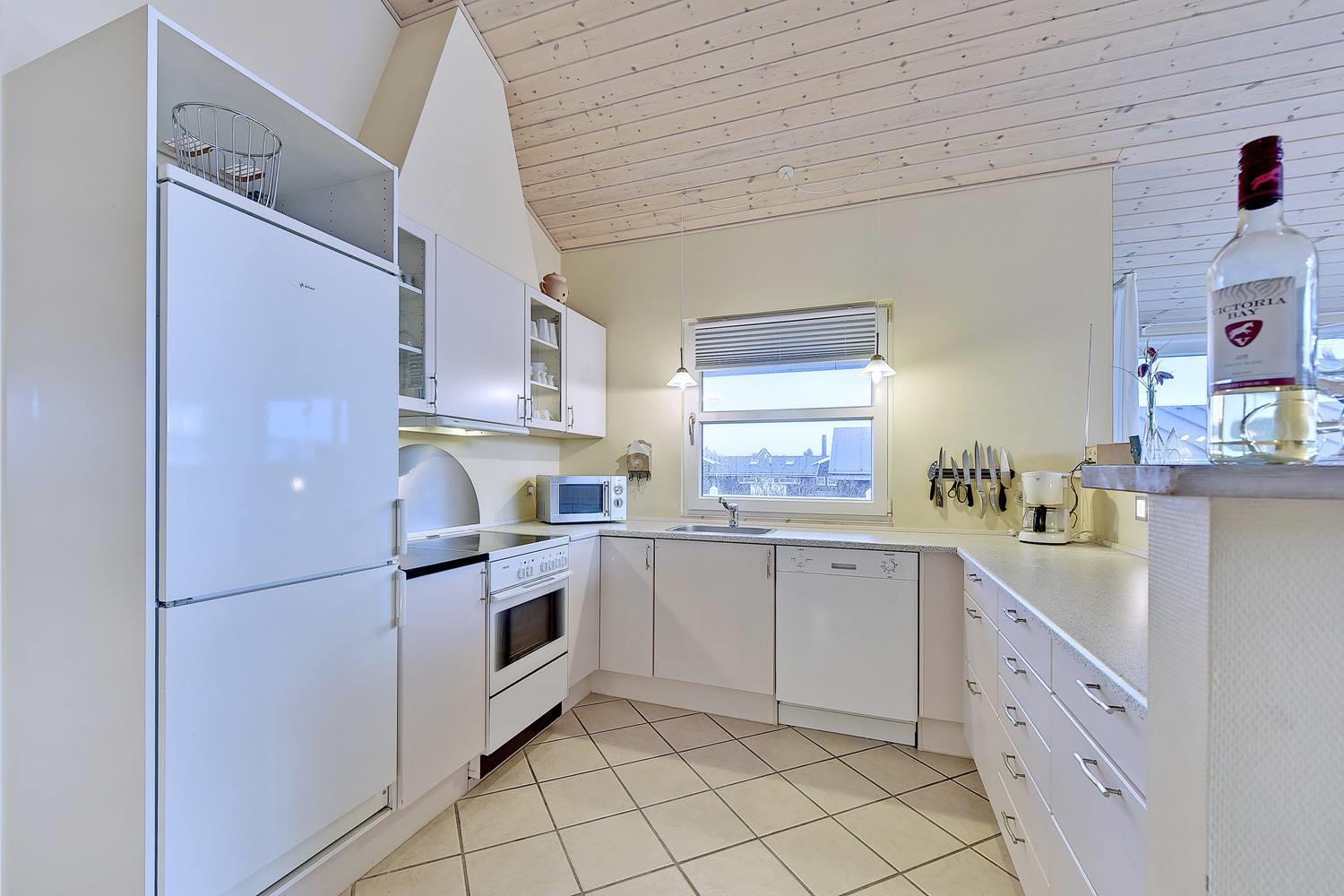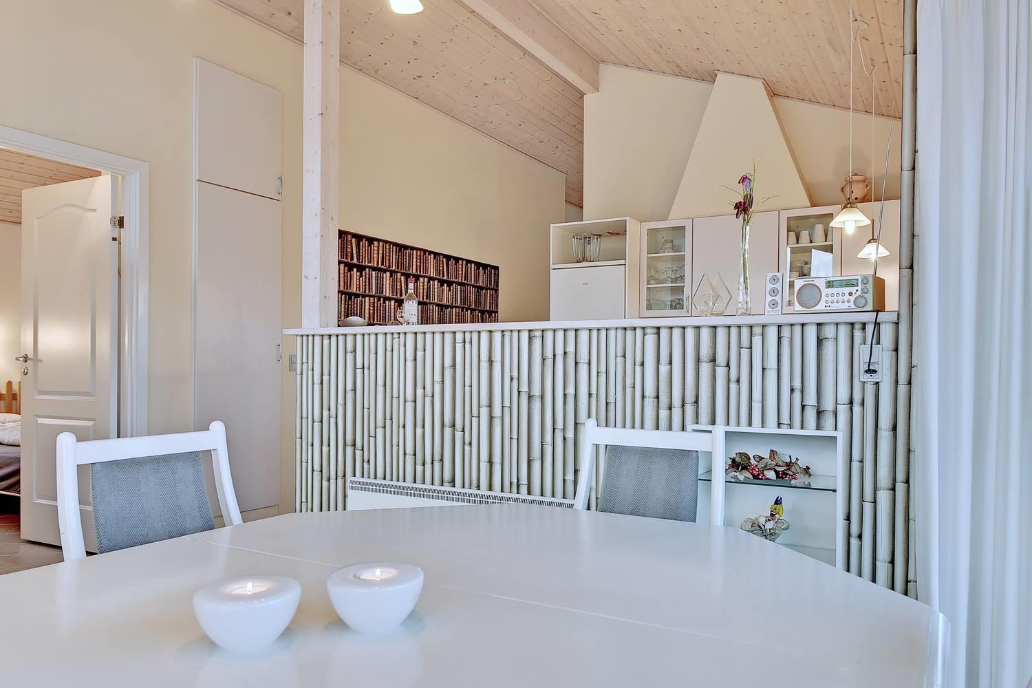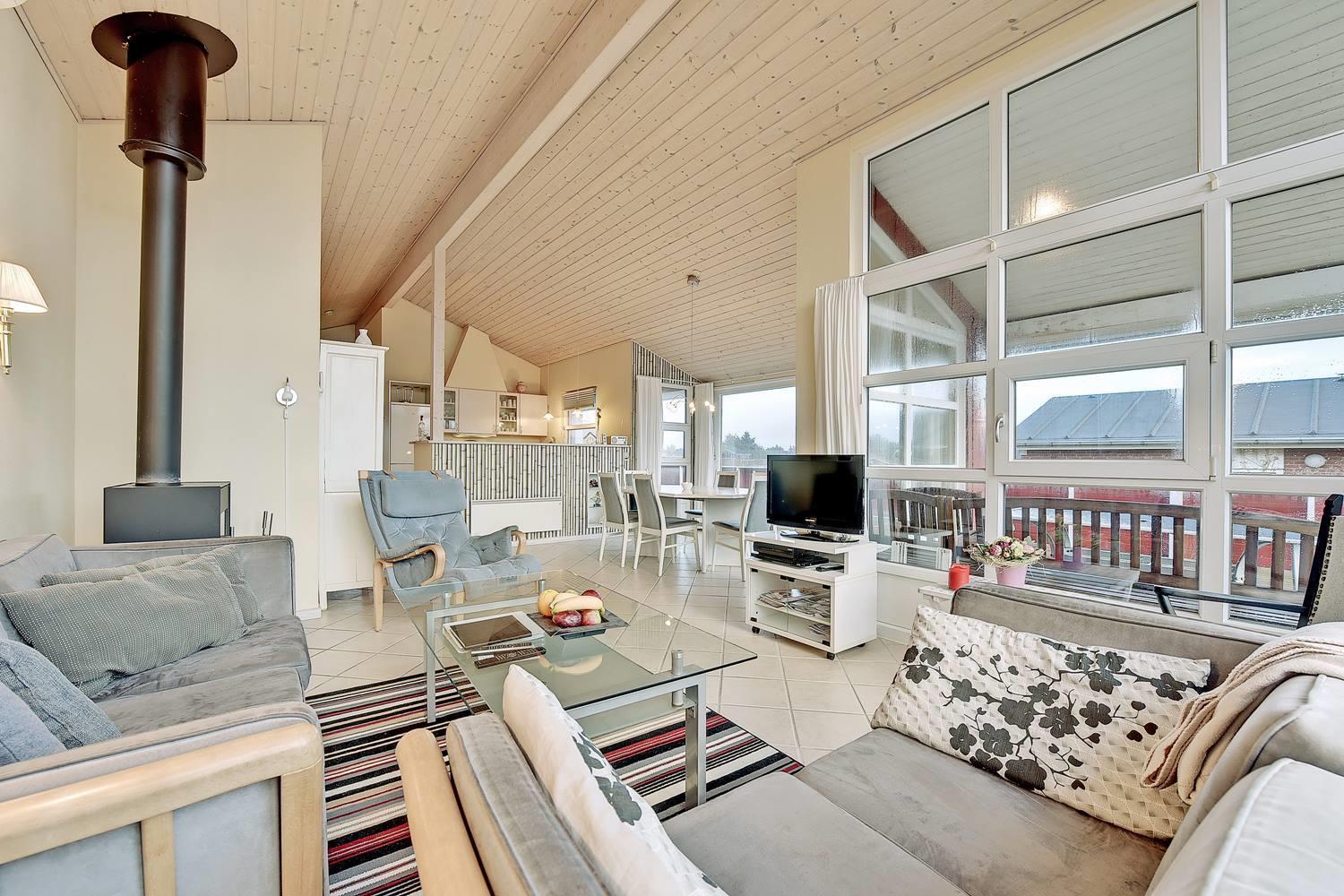 Husets veludstyrede køkken ligger i åben forbindelse med den lyse og velmøblerede stue. Her kan du nyde fælles måltider og slappe af i de komfortable møbler efter en dag fyldt med oplevelser. Den åbne planløsning skaber en indbydende atmosfære og gør huset til et naturligt samlingspunkt.