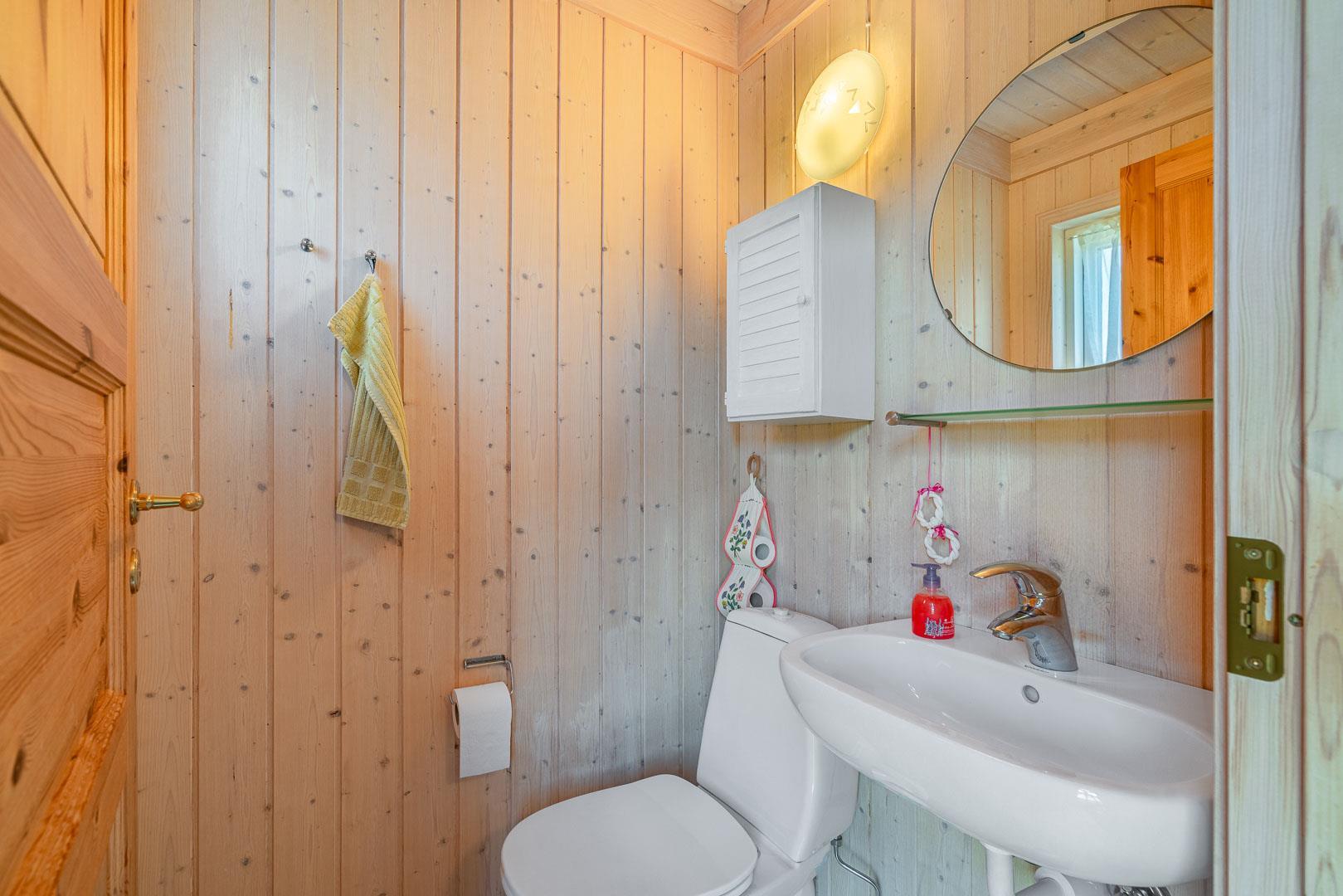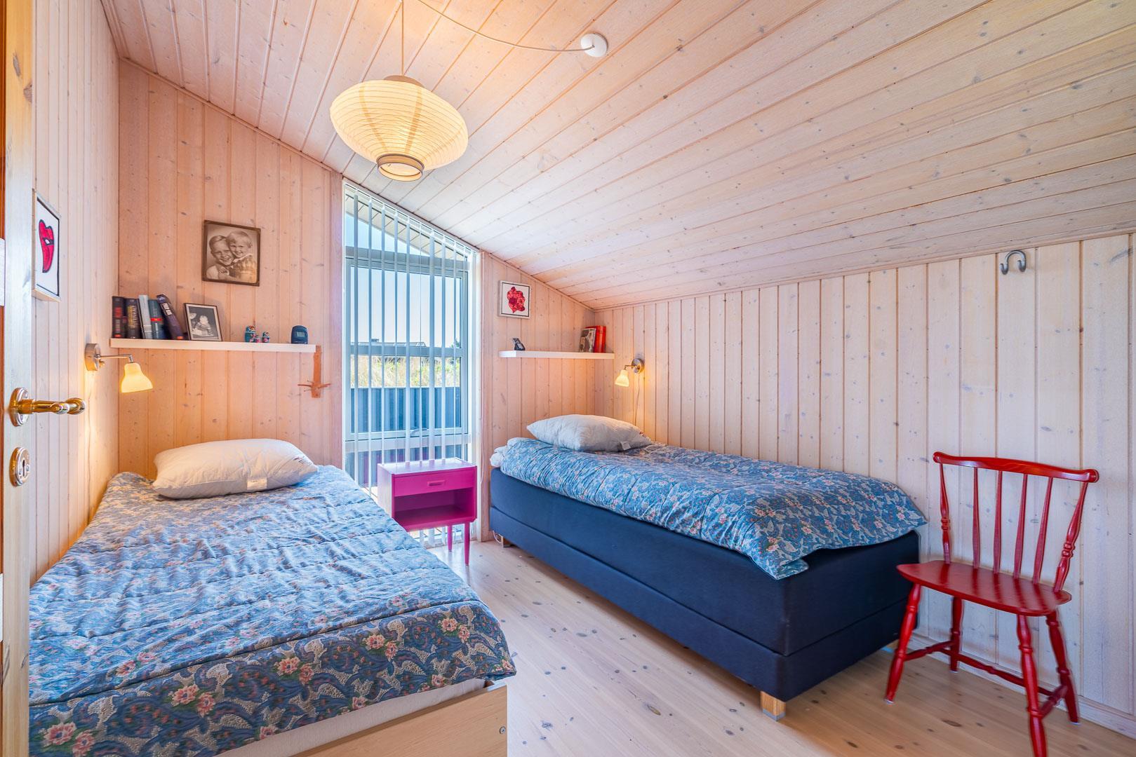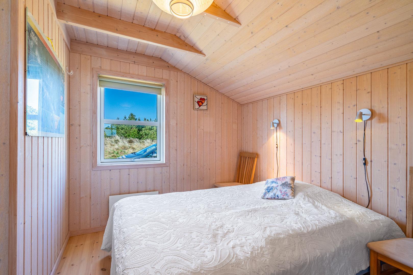 Her er plads til 5 personer med 3 gode soveværelser, hvoraf det ene forkæler dig med en dobbeltseng og de to andre tilbyder komfortable elevationsenge. Det store badeværelse og det ekstra toilet har begge med gulvvarme.