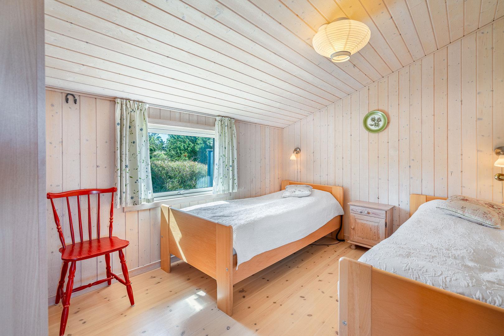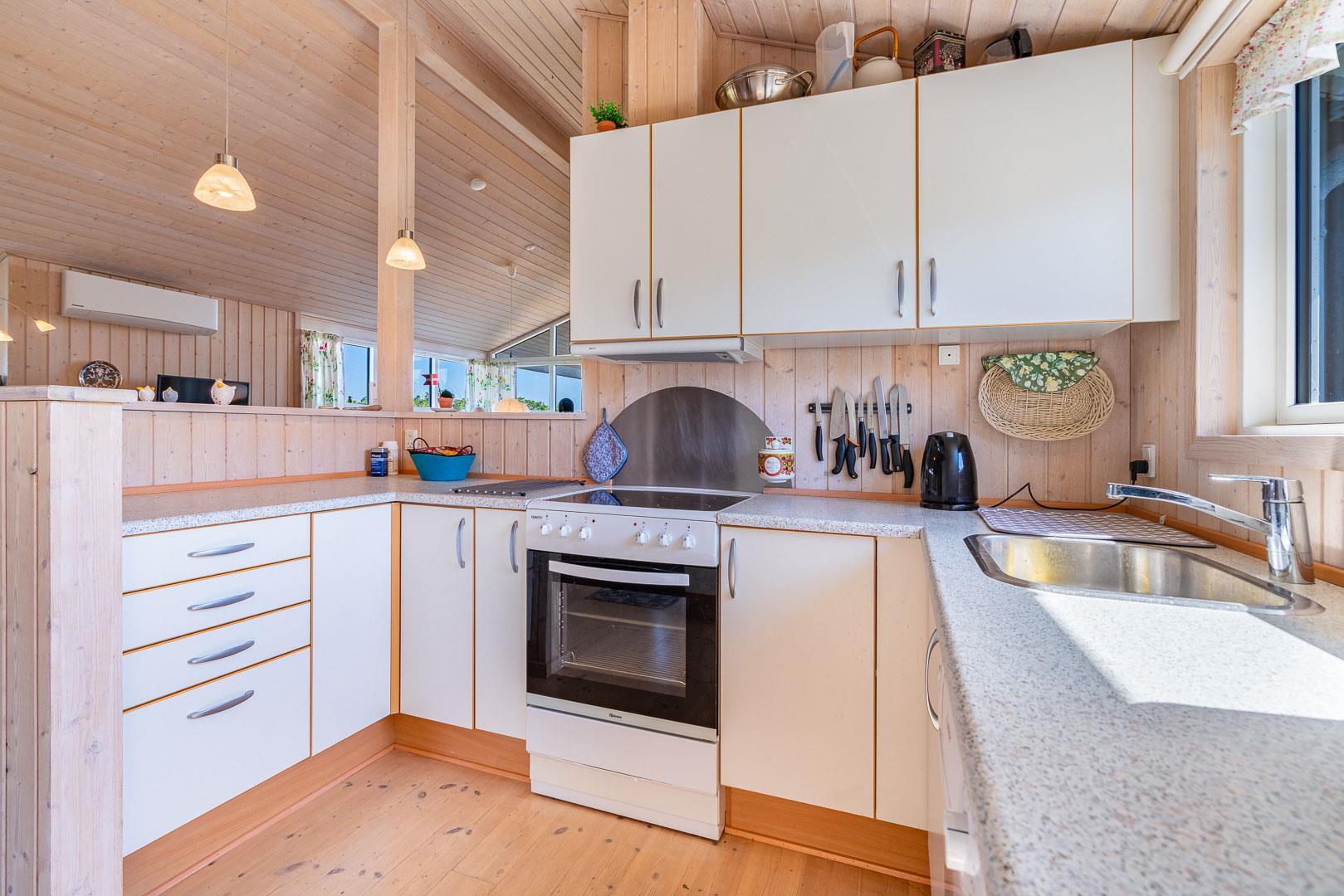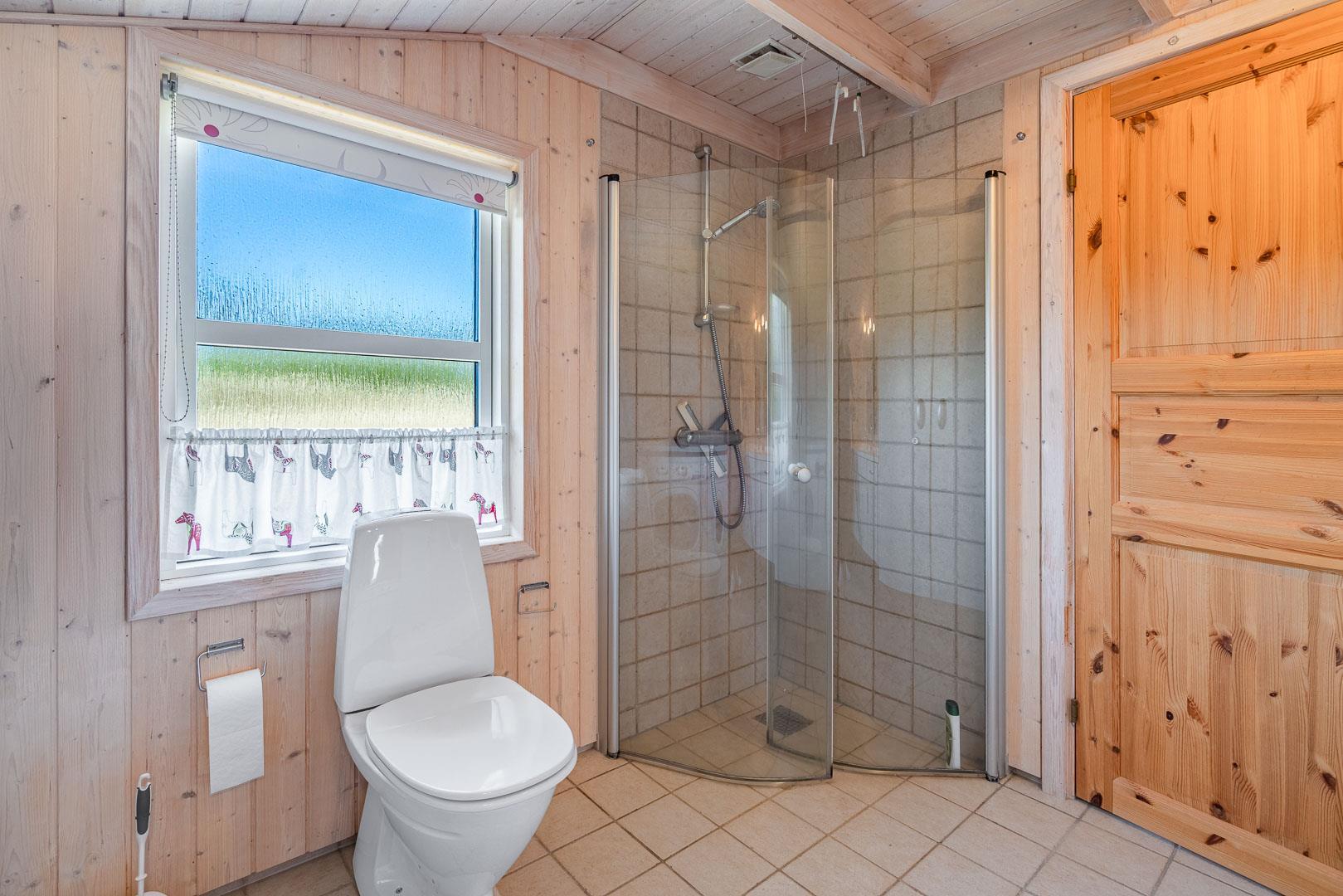Her er plads til 5 personer med 3 gode soveværelser, hvoraf det ene forkæler dig med en dobbeltseng og de to andre tilbyder komfortable elevationsenge. Det store badeværelse og det ekstra toilet har begge med gulvvarme.