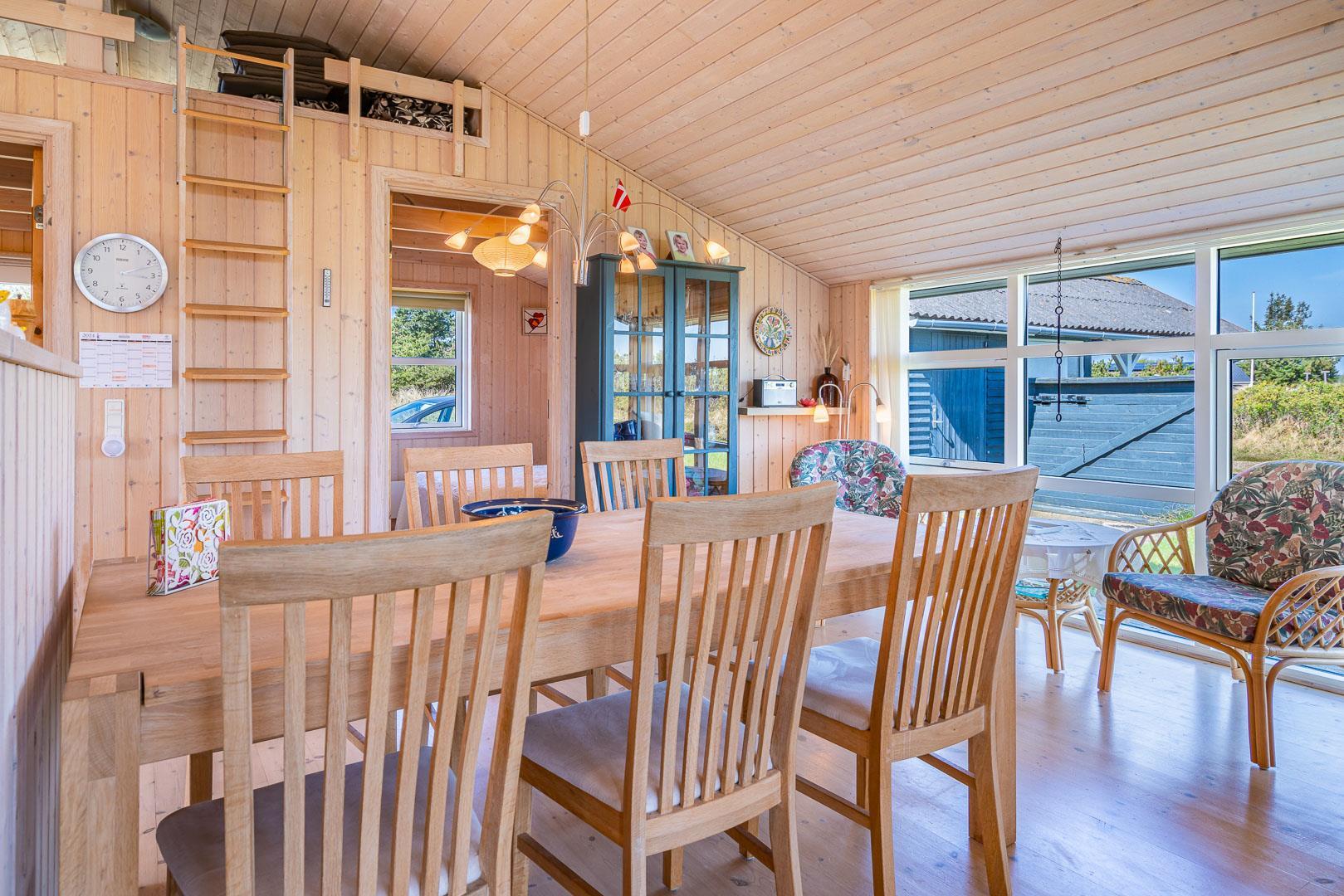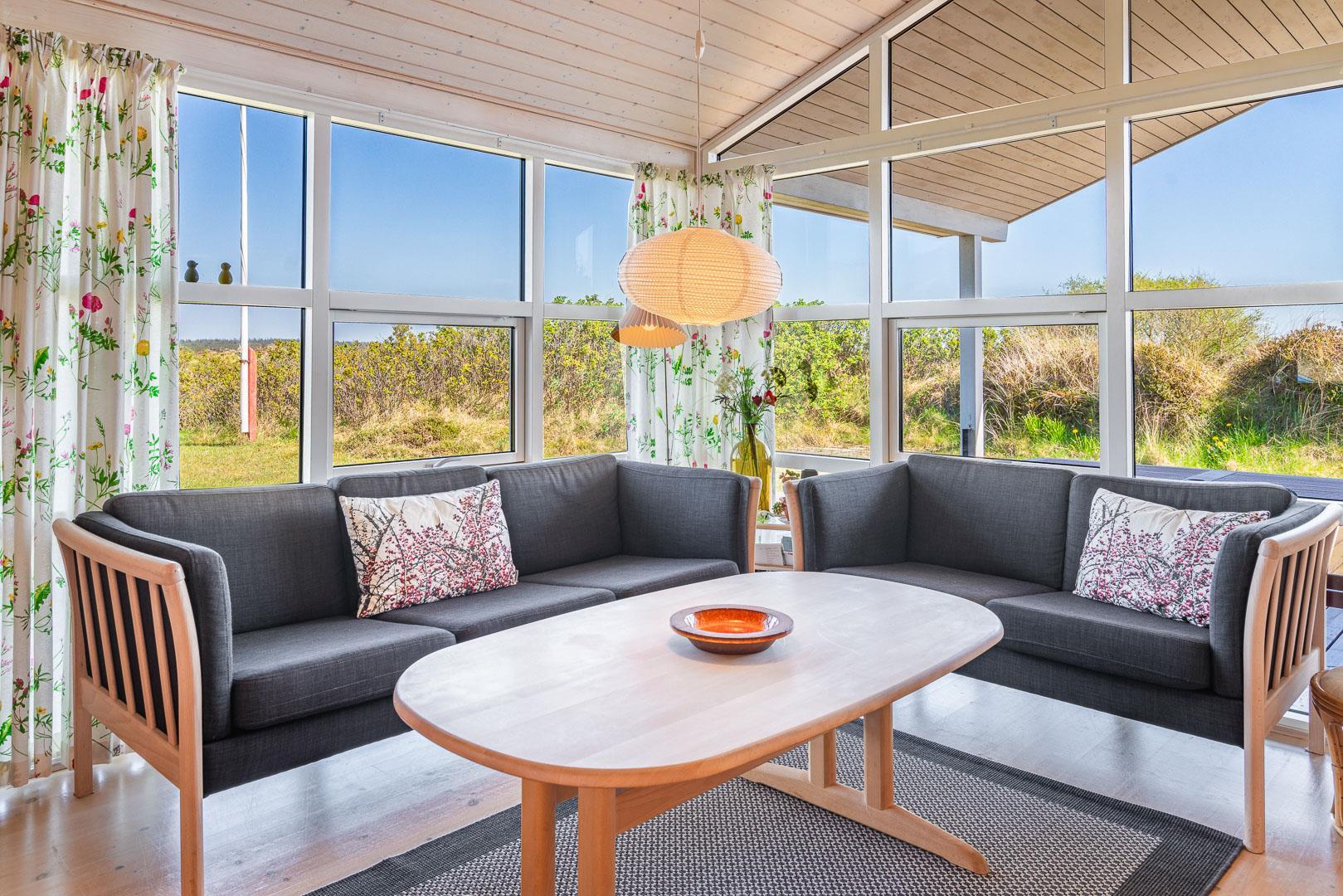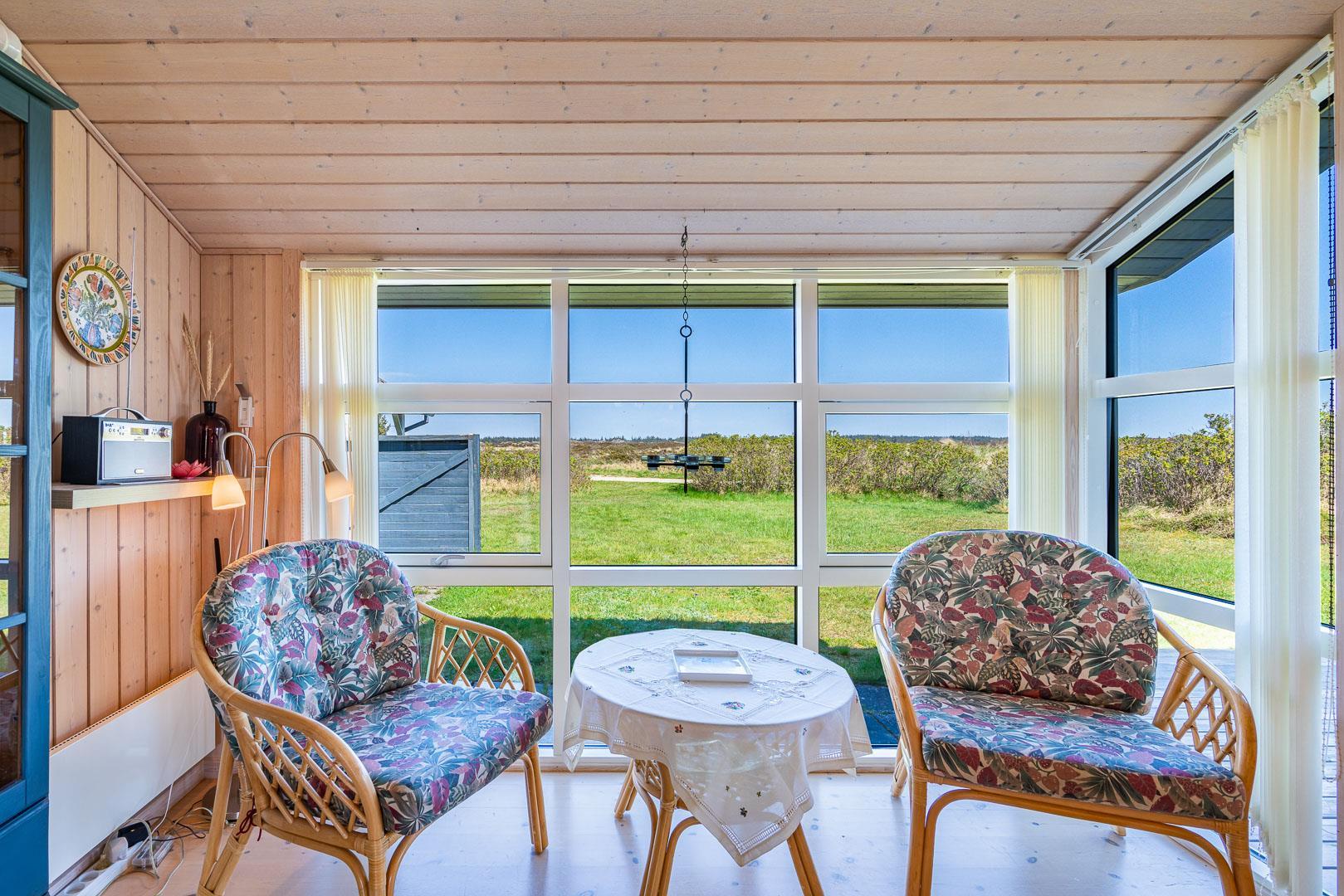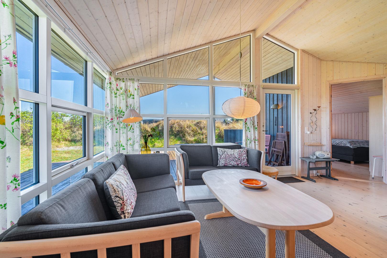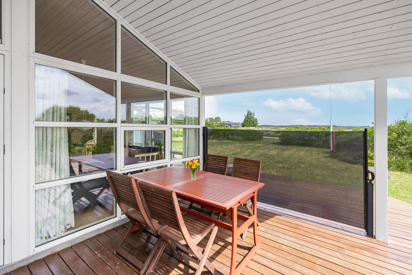 Udendørsarealerne omfavner den skønne natur omkring sommerhuset i Henne Strand. Flere terrasser giver mulighed for udendørs aktiviteter og afslapning, og den lille naturgrund foran huset tilføjer en ekstra dimension af charme og ro.