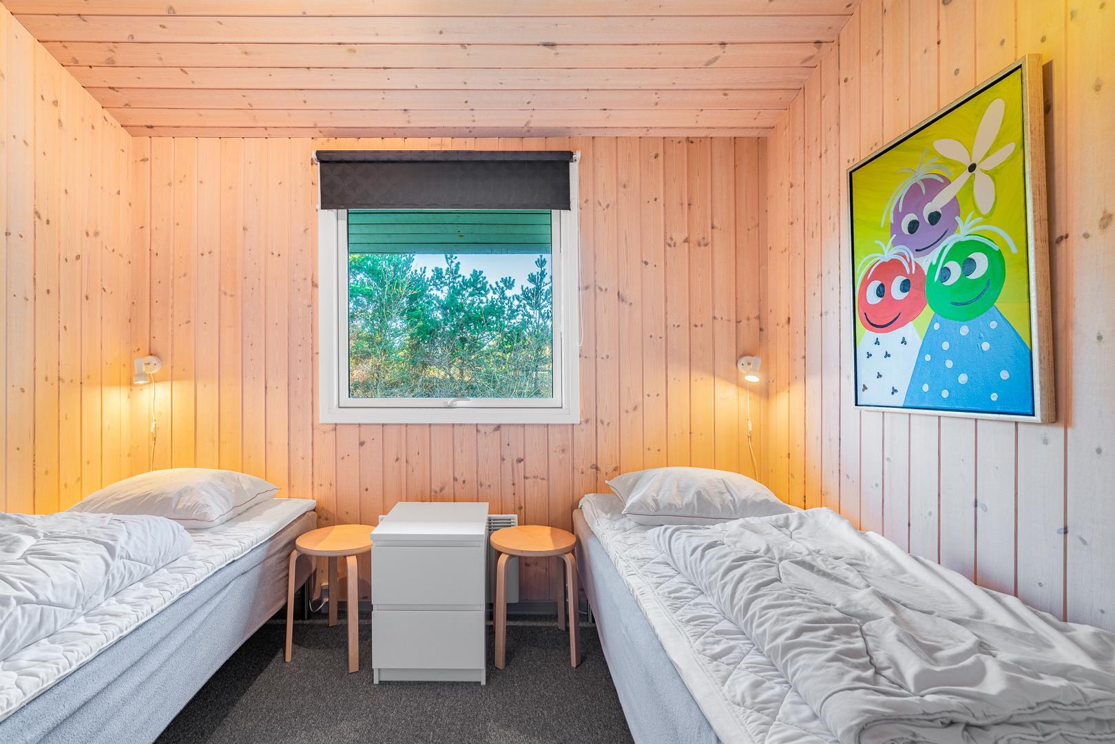 Sengestørrelse: Sengestørrelse: 2 dobbeltsenge 140 x 200 cm + 2 enkeltsenge 90 x 200 cm + 1 tremmeseng 60 x 120 cm.