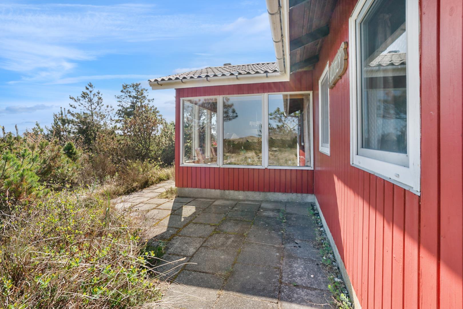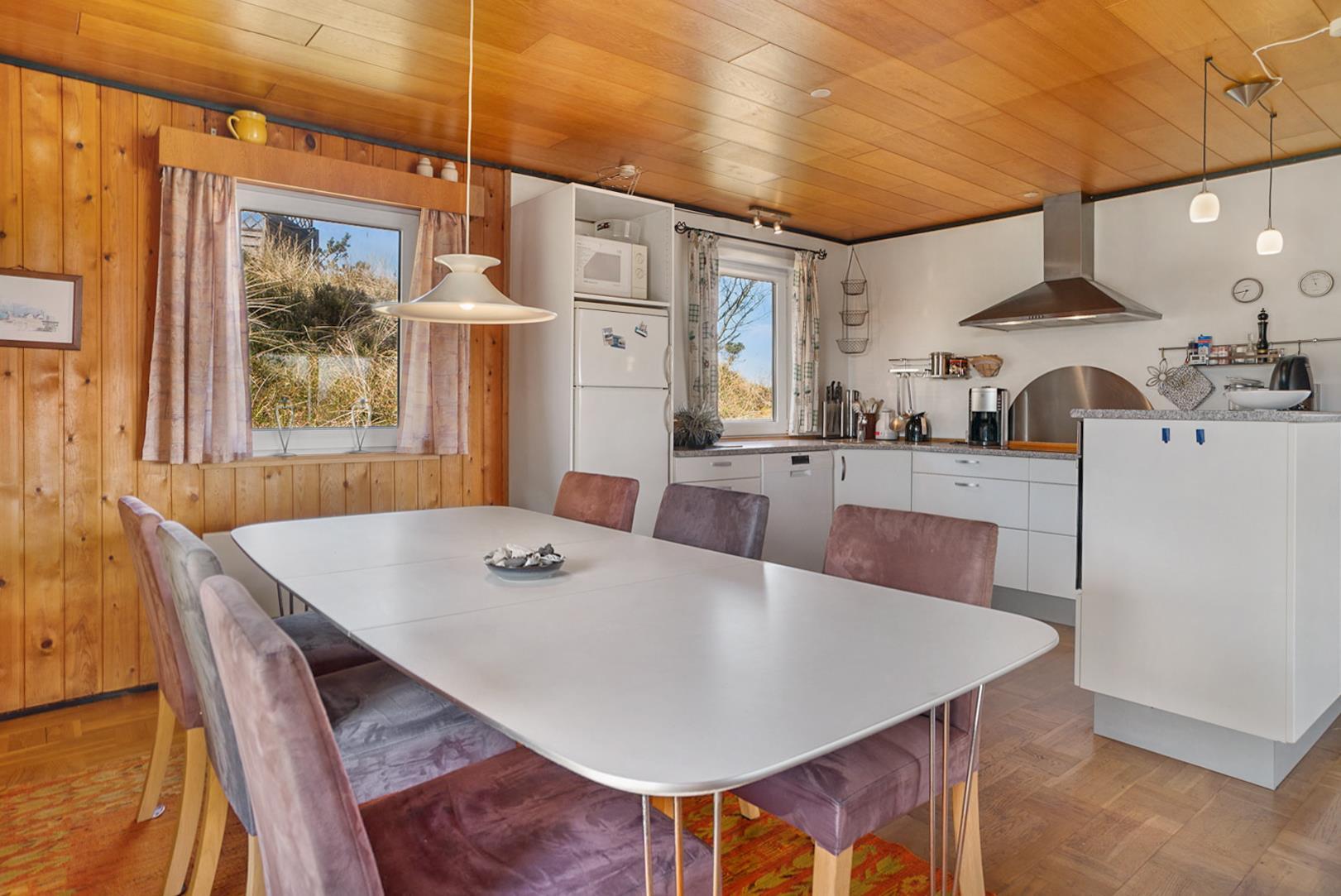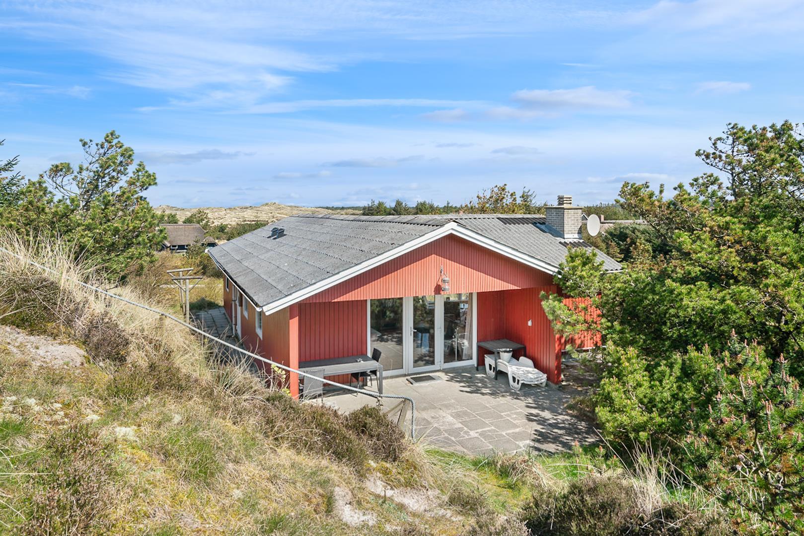 Nyd din ferie i dette hyggelige sommerhus i Henne Strand, hvor der er plads til 5 personer. Beliggende højt på en naturskøn grund, tæt på både stranden og byen, tilbyder dette sommerhus en dejlig kombination af natur og bekvemmelighed. Her finder du et fint køkken der ligger i åben forbindelse med stuen. Fra stuen kan man nyde en betagende udsigt, der skaber en atmosfære af ro og velvære. Sommerhusets delvist overdækkede terrasse indbyder til lange aftener under åben himmel, hvor man kan nyde den friske havluft og lyden af bølgerne. Med skiftedag fredag har man mulighed for at starte weekenden på bedste vis og få mest muligt ud af sin ferieoplevelse. Få en masse skønne naturoplevelser i Henne Strand og skab minder for livet i dette hyggelige feriehus ved Vestkysten.