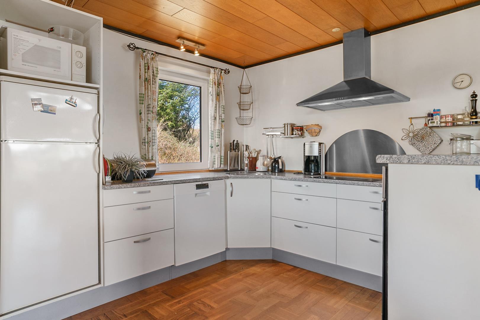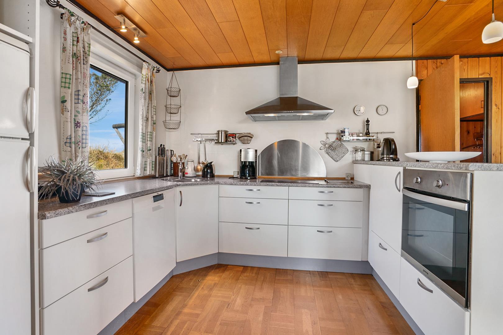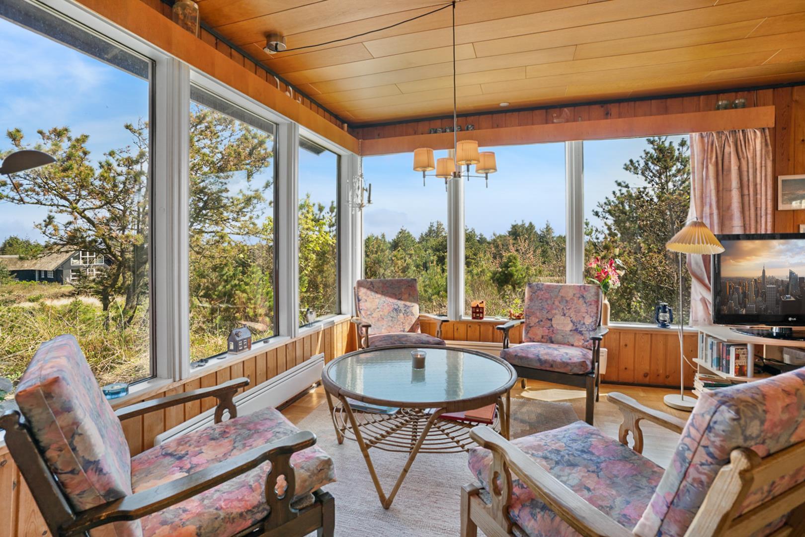 Nyd din ferie i dette hyggelige sommerhus i Henne Strand, hvor der er plads til 5 personer. Beliggende højt på en naturskøn grund, tæt på både stranden og byen, tilbyder dette sommerhus en dejlig kombination af natur og bekvemmelighed. Her finder du et fint køkken der ligger i åben forbindelse med stuen. Fra stuen kan man nyde en betagende udsigt, der skaber en atmosfære af ro og velvære. Sommerhusets delvist overdækkede terrasse indbyder til lange aftener under åben himmel, hvor man kan nyde den friske havluft og lyden af bølgerne. Med skiftedag fredag har man mulighed for at starte weekenden på bedste vis og få mest muligt ud af sin ferieoplevelse. Få en masse skønne naturoplevelser i Henne Strand og skab minder for livet i dette hyggelige feriehus ved Vestkysten.