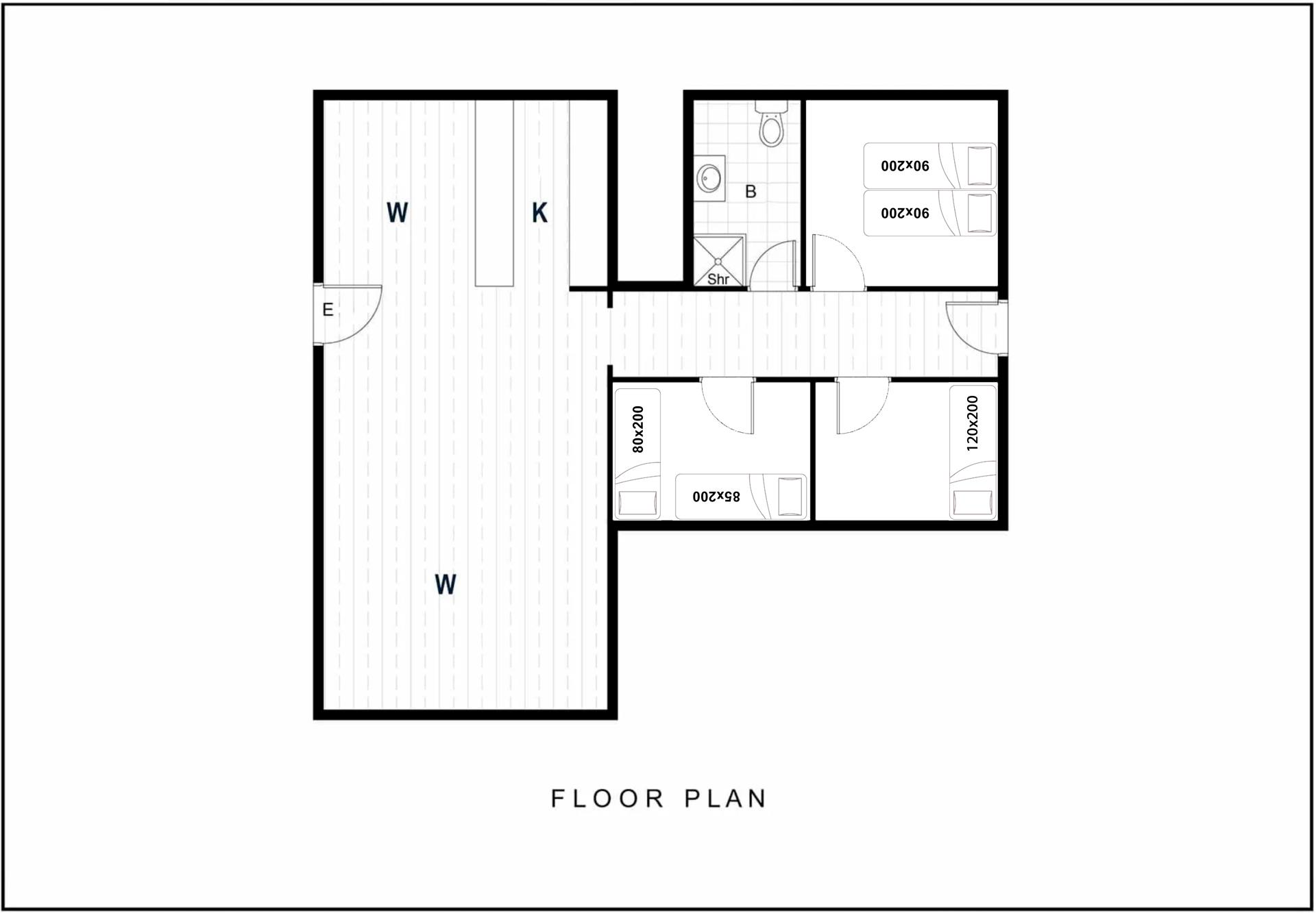 Sengestørrelse: 1 dobbeltseng med 2 madrasser 90 x 200 cm + 1 enkeltseng 120 x 200 cm + 1 enkeltseng 85 x 200 cm + 1 enkeltseng 80 x 200 cm.